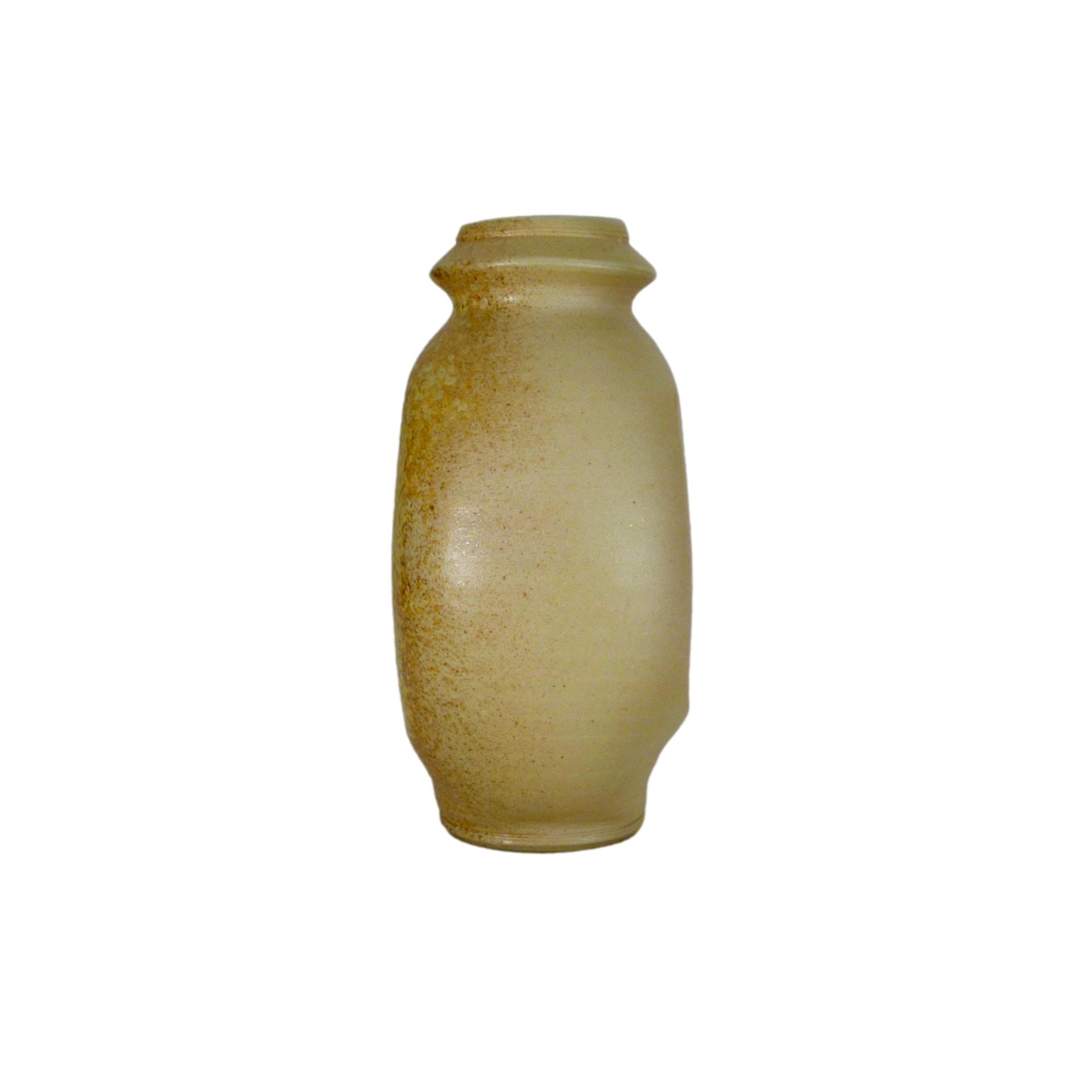 Signed Michael Brostko salt glaze porcelain vase, wheel thrown and altered, c.1978