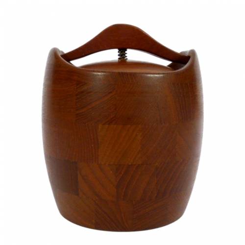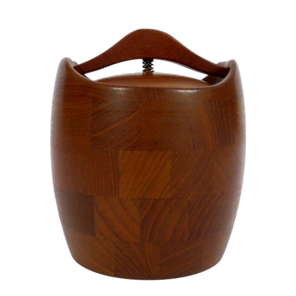 1960s staved teak tobacco box with spring loaded lid latch from Denmark by ESA.