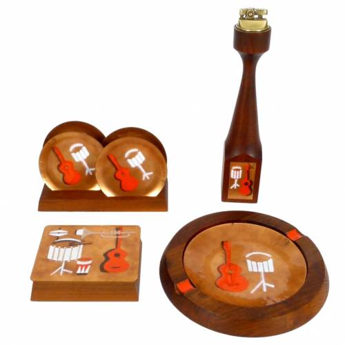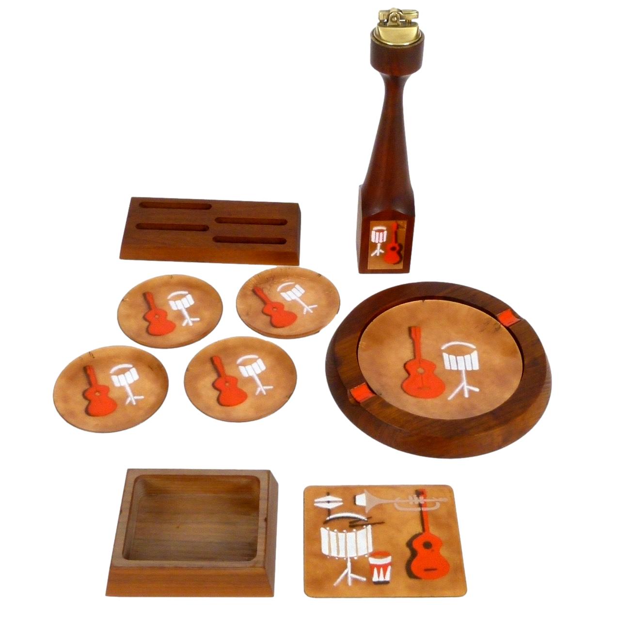 Walnut and Enamel Ernest Sohn 10 Piece Smoke Set