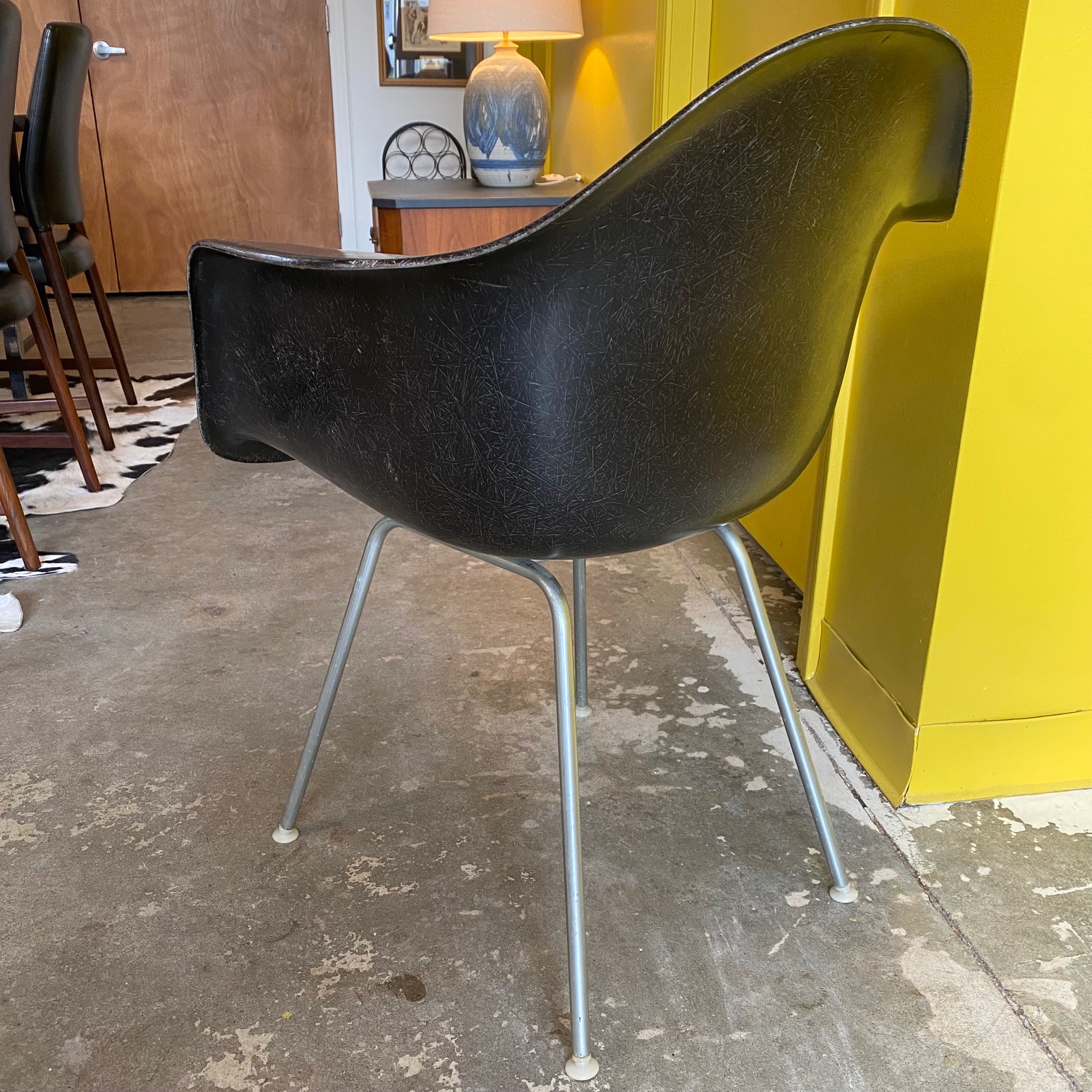 Eames fiberglass shell chair for Herman Miller. Has original "three dot" markings as well as embossed HM logo dating this shell to the mid 1950s.