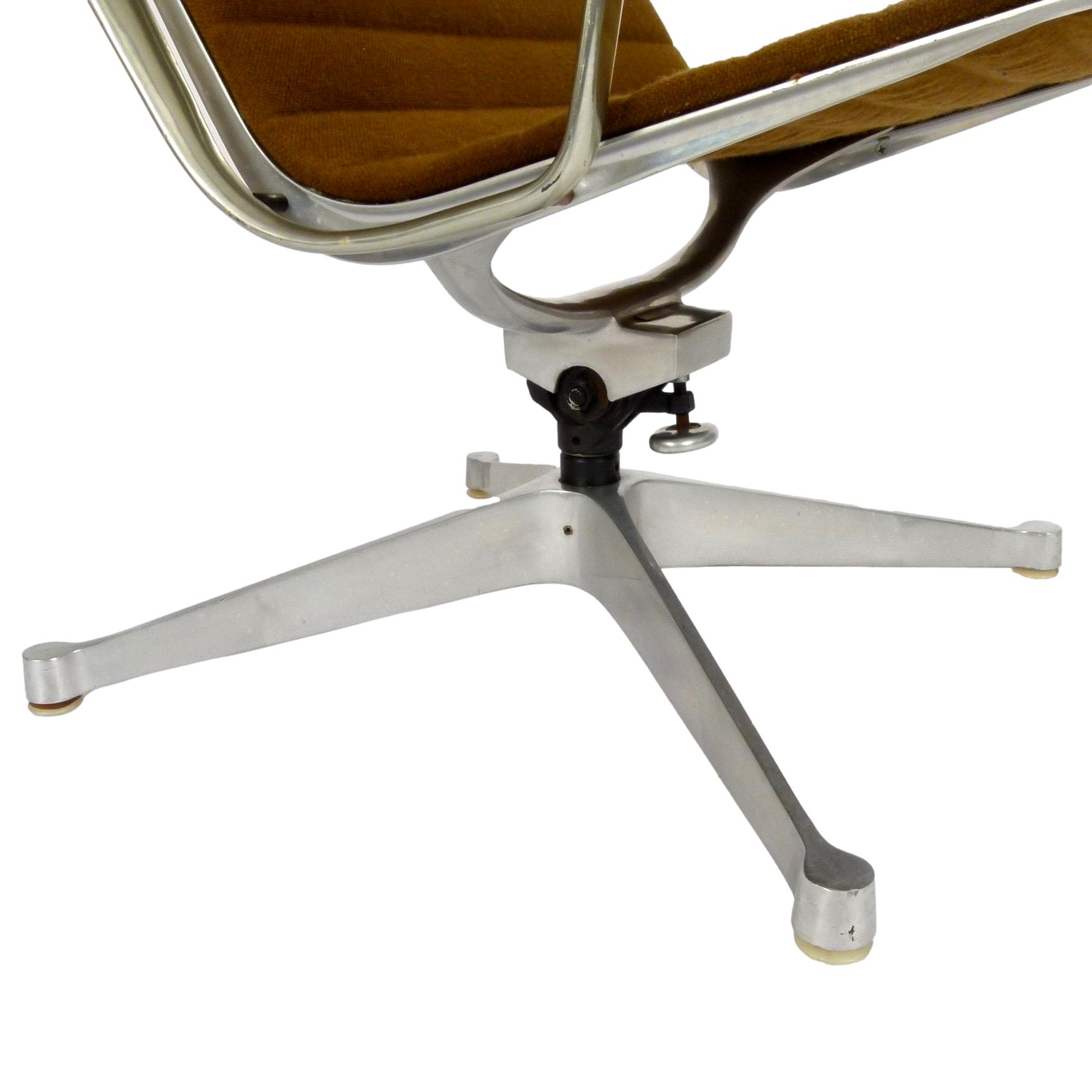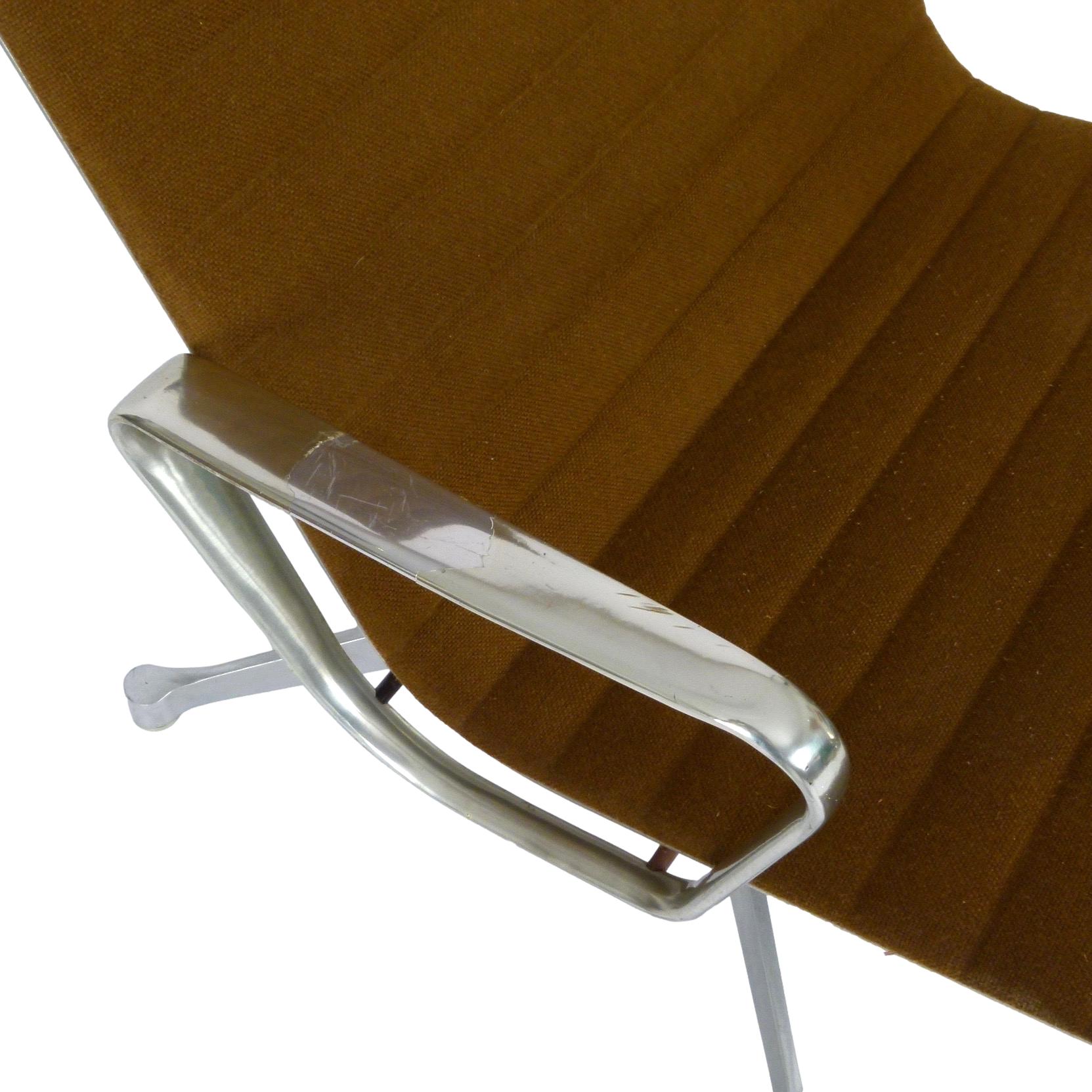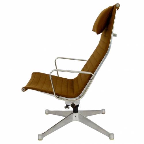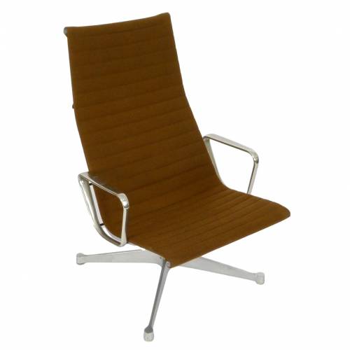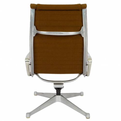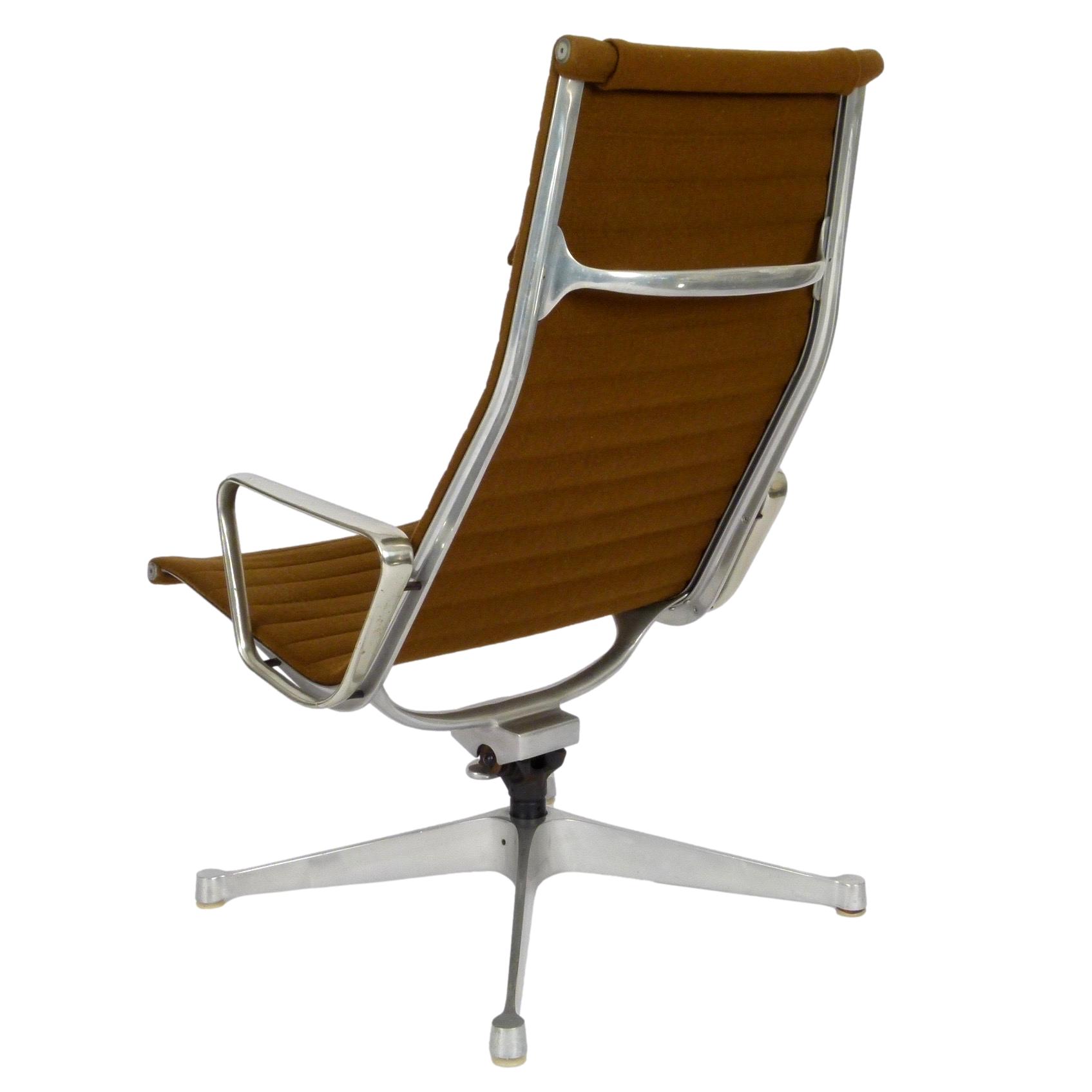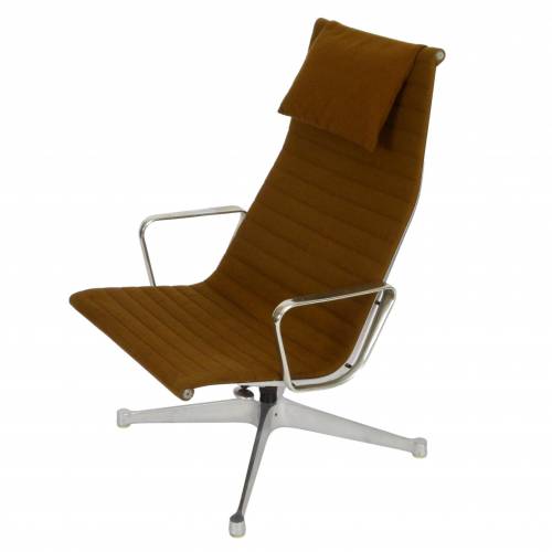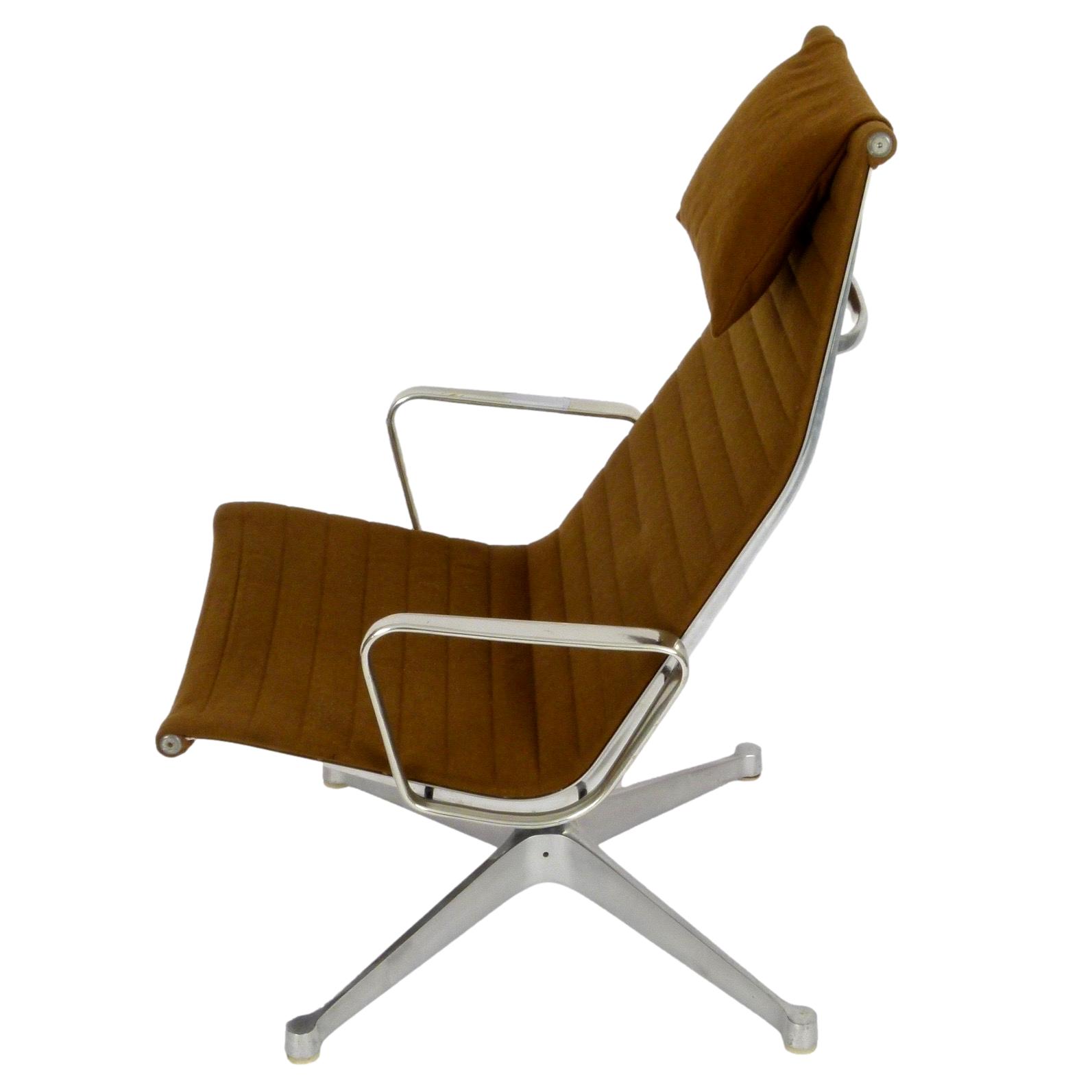 1970s EA124 lounge chair by Charles & Ray Eames for Herman Miller with brown fabric.