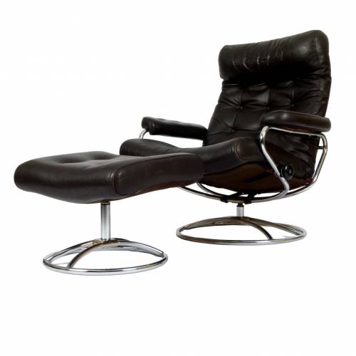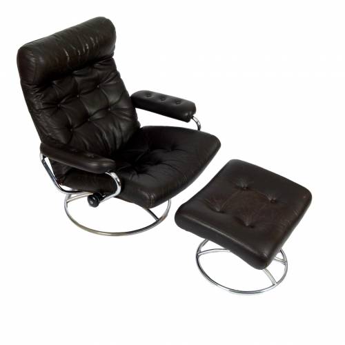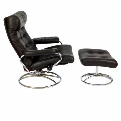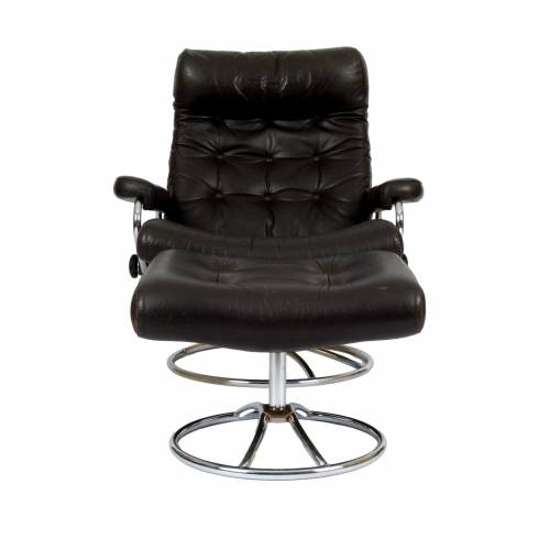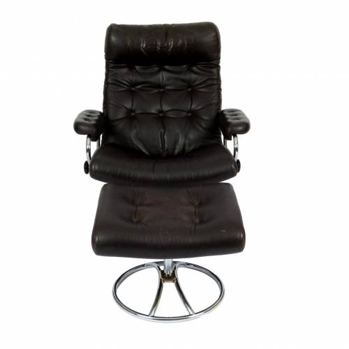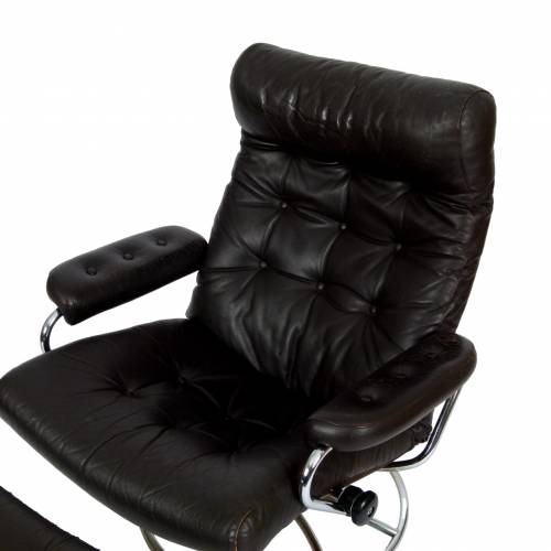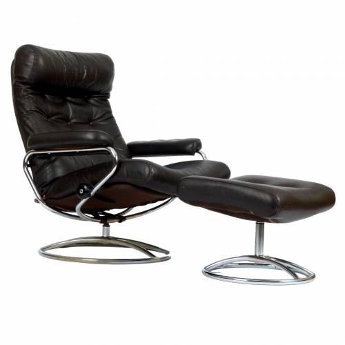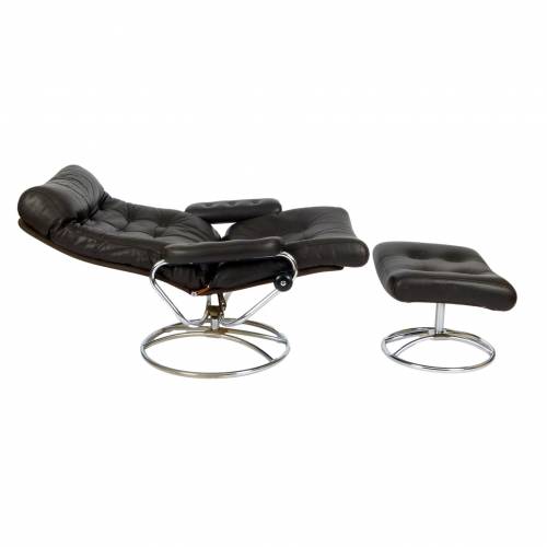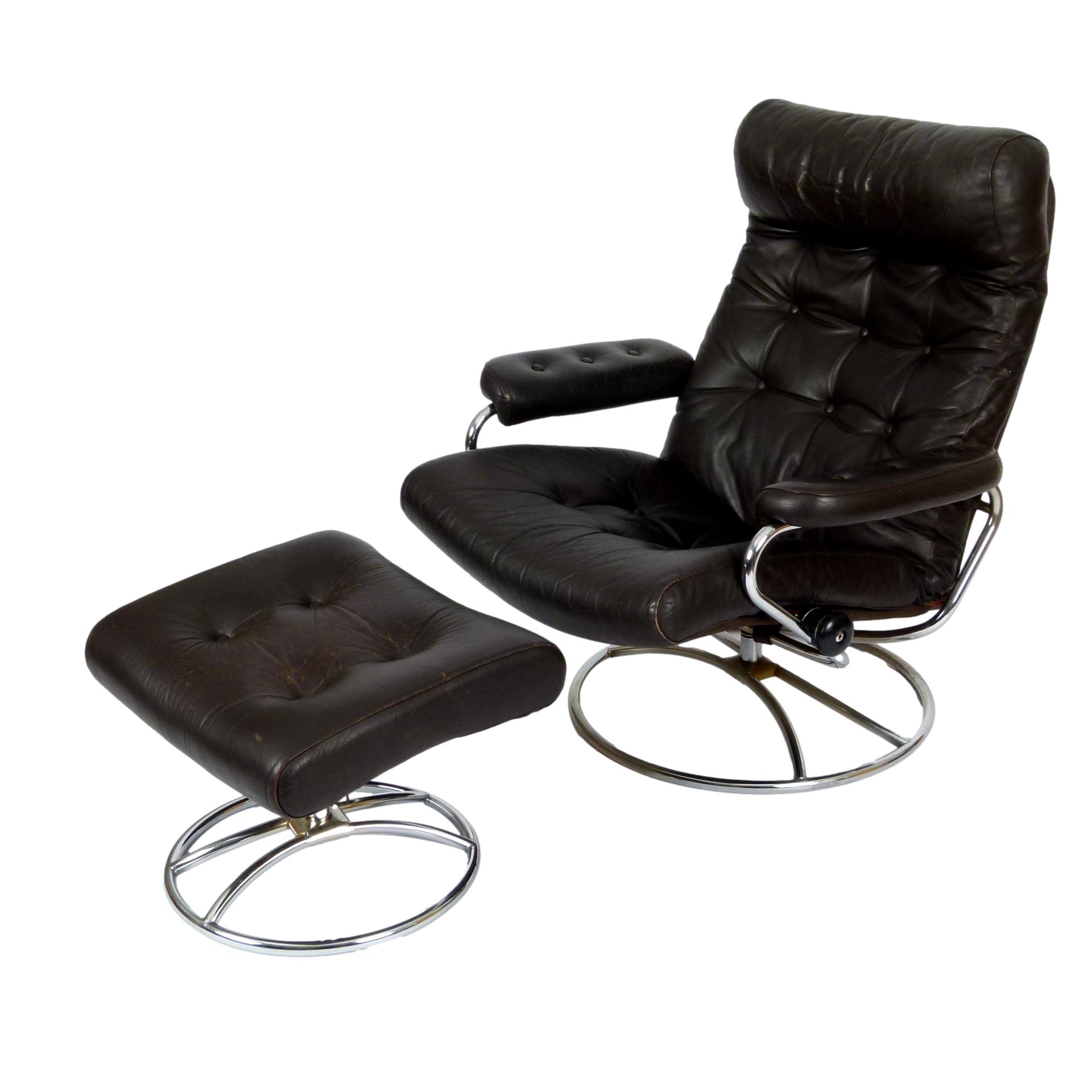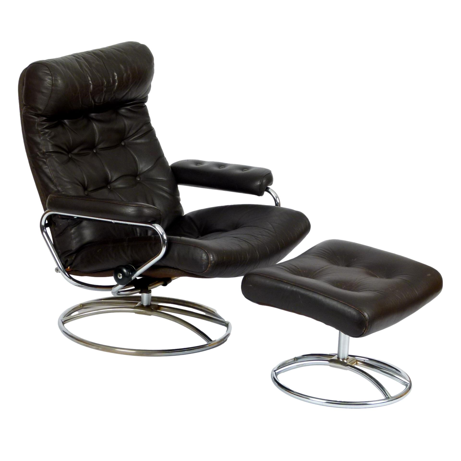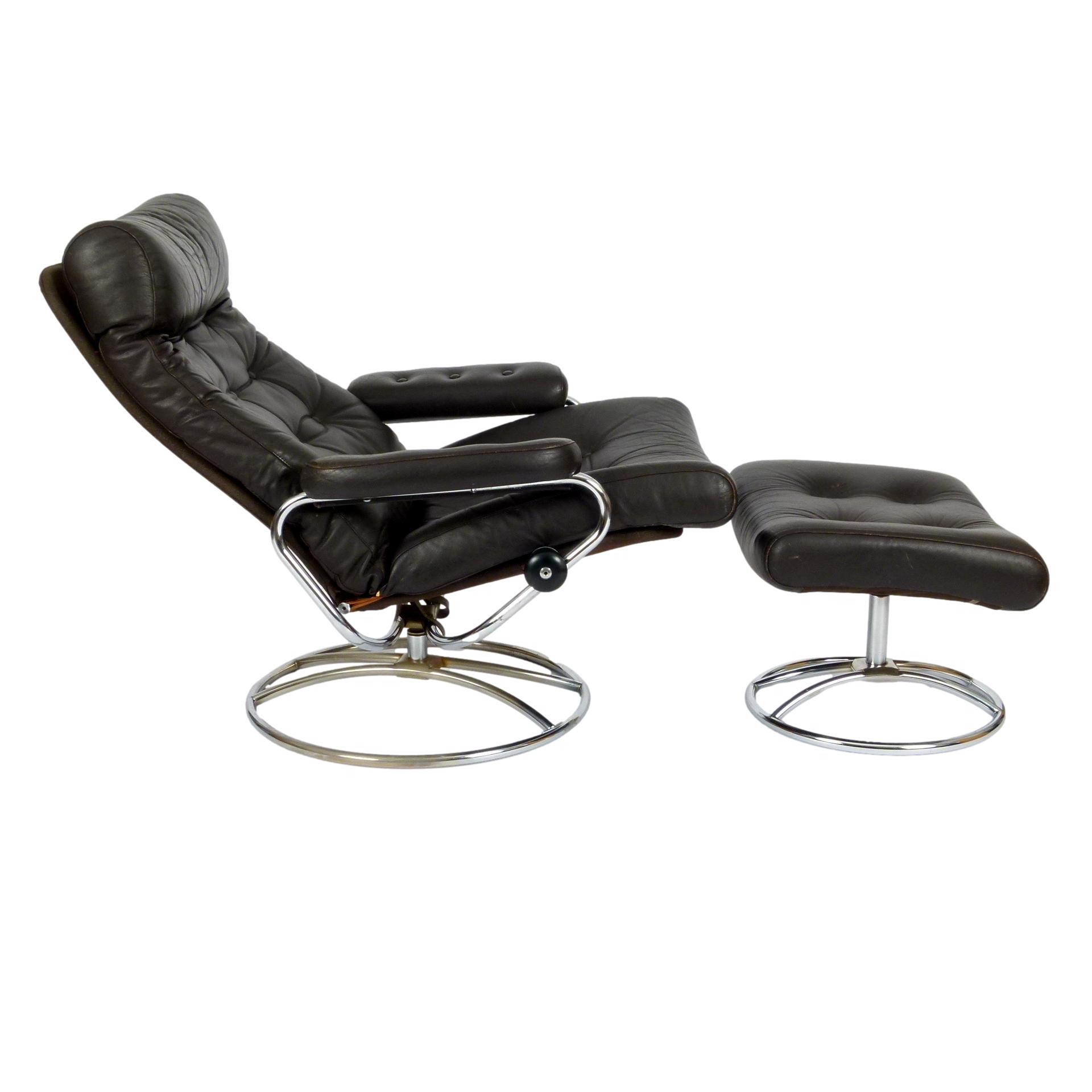 1970s Ekornes Stressless Reclining Lounge and Ottoman, Norway