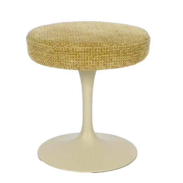 C.1960 swiveling tulip stool by Eero Saarinen for Knoll with the original Knoll fabric over a warm ivory base. Retains early Knoll label.