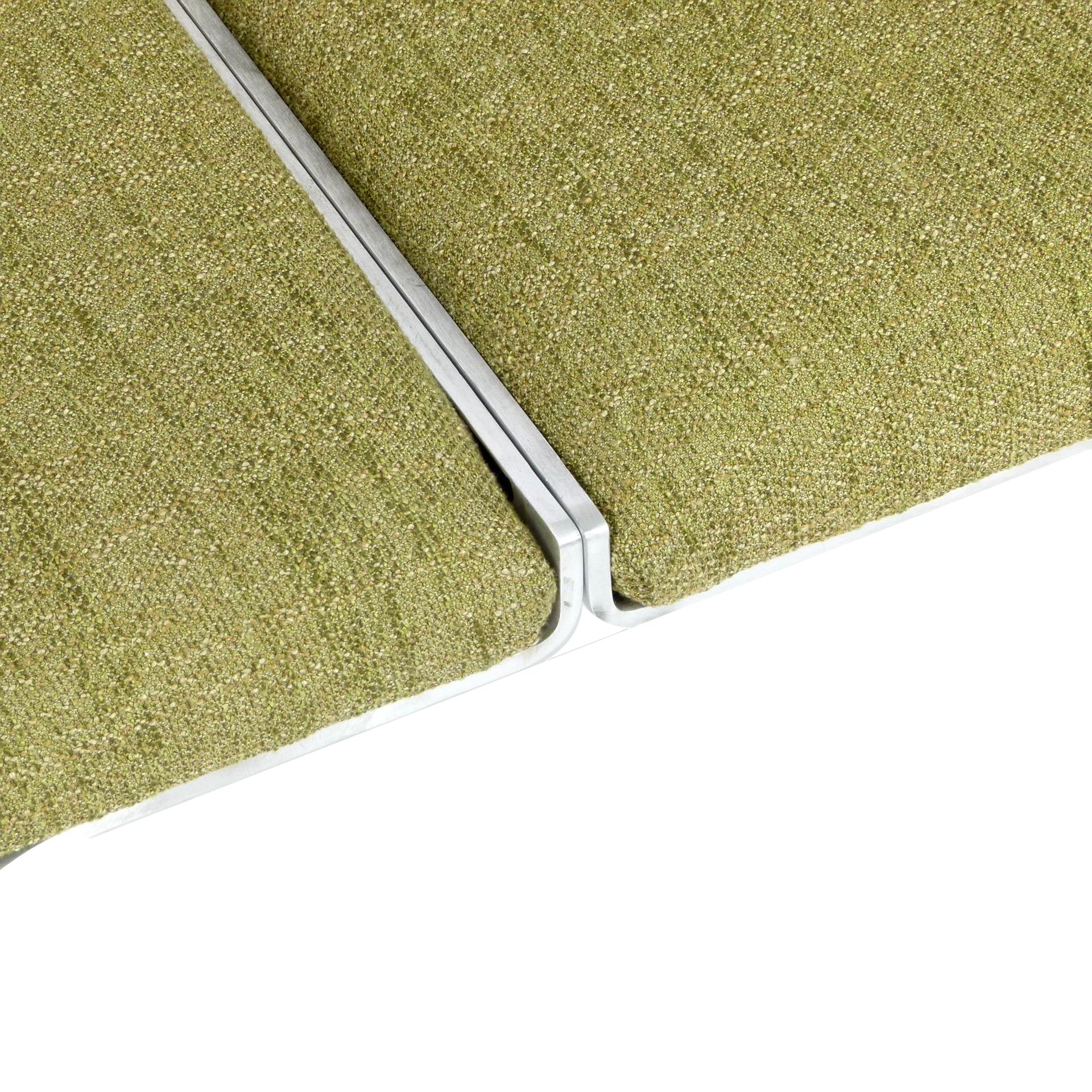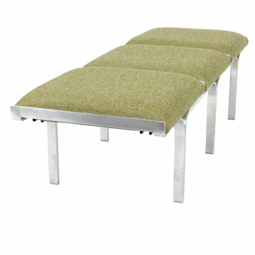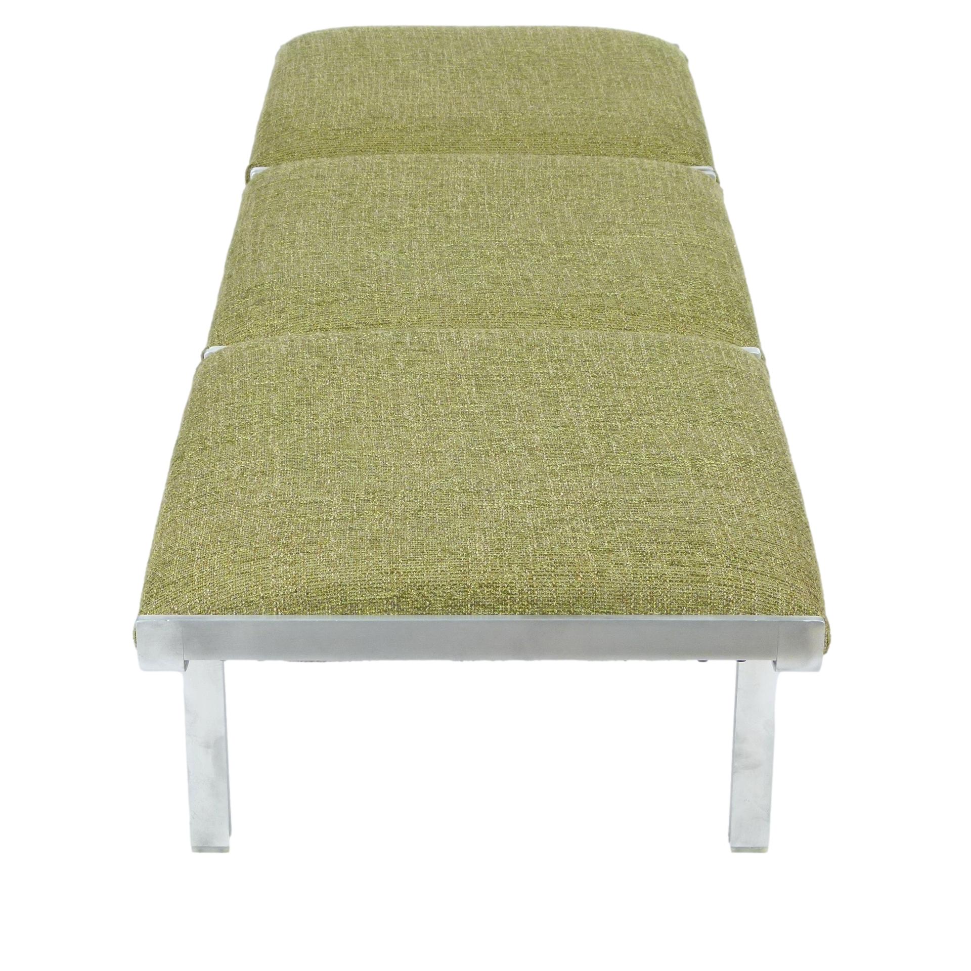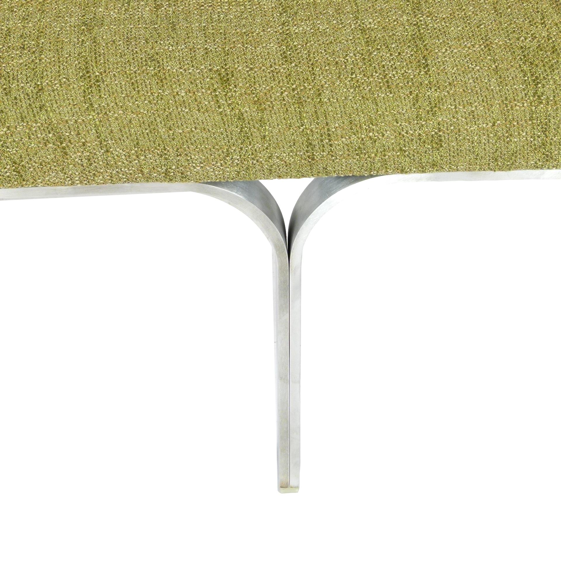 1960s upholstered three seat "Link" bench with steel arch construction and new upholstery designed by John Behringer for Fabry Associates, Inc.