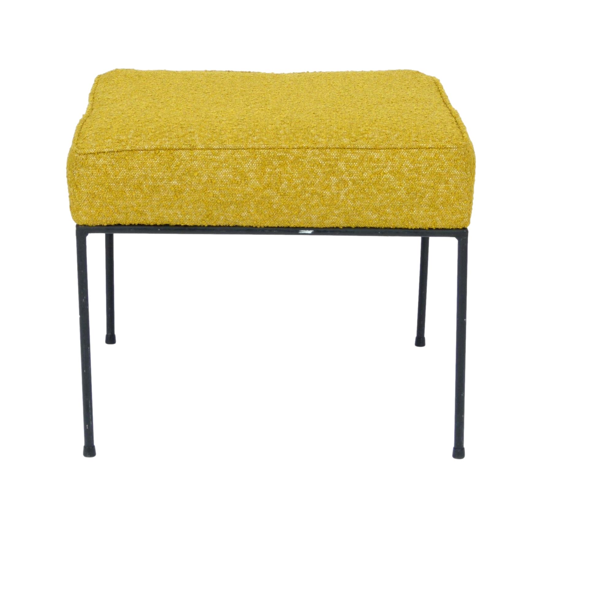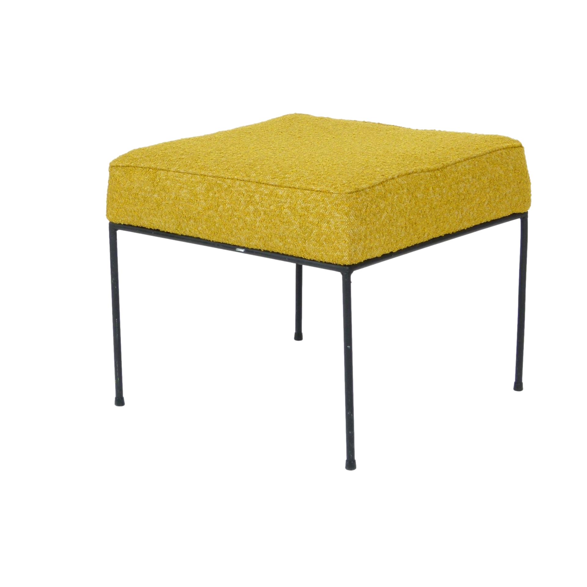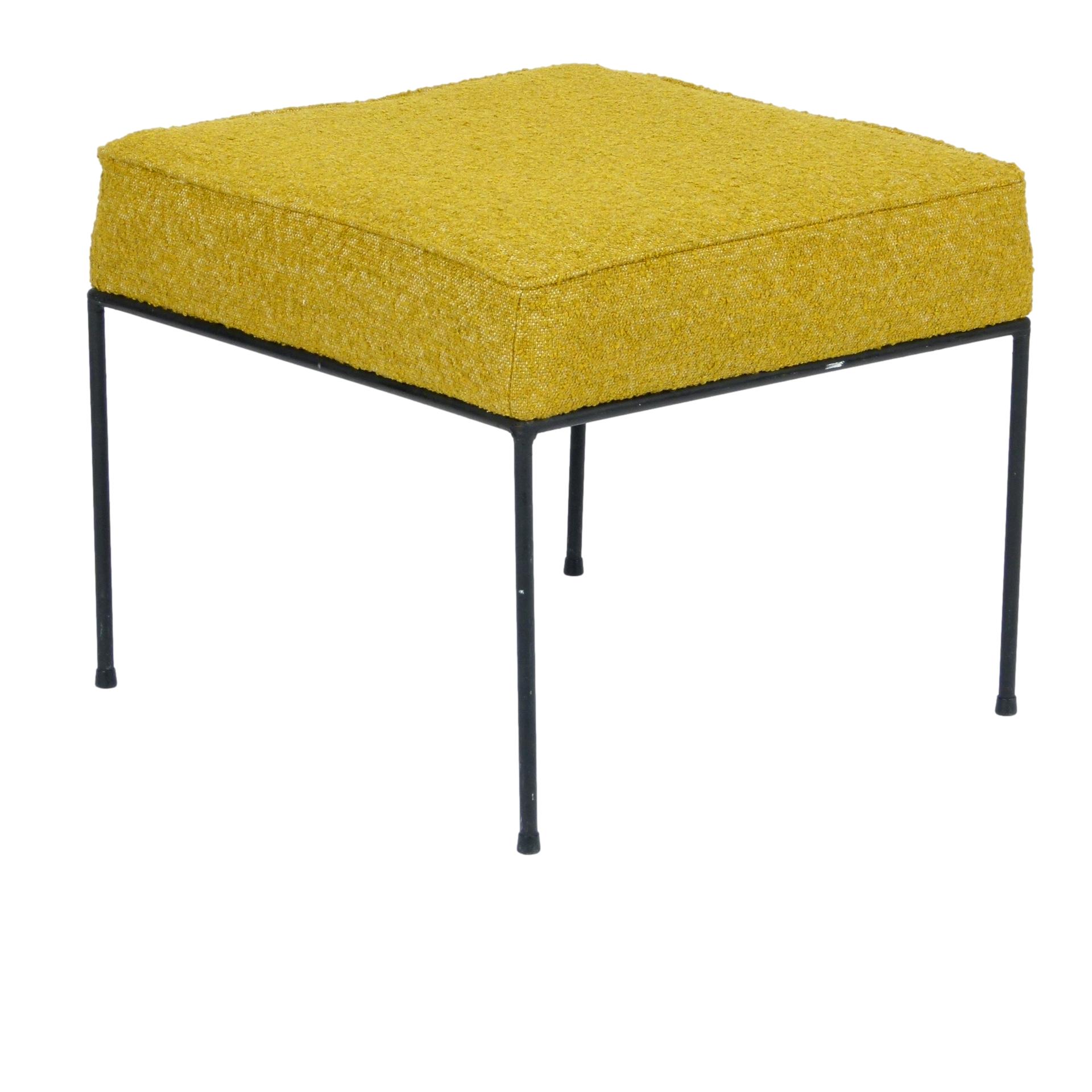 1950s Paul McCobb iron ottoman with new upholstery.
