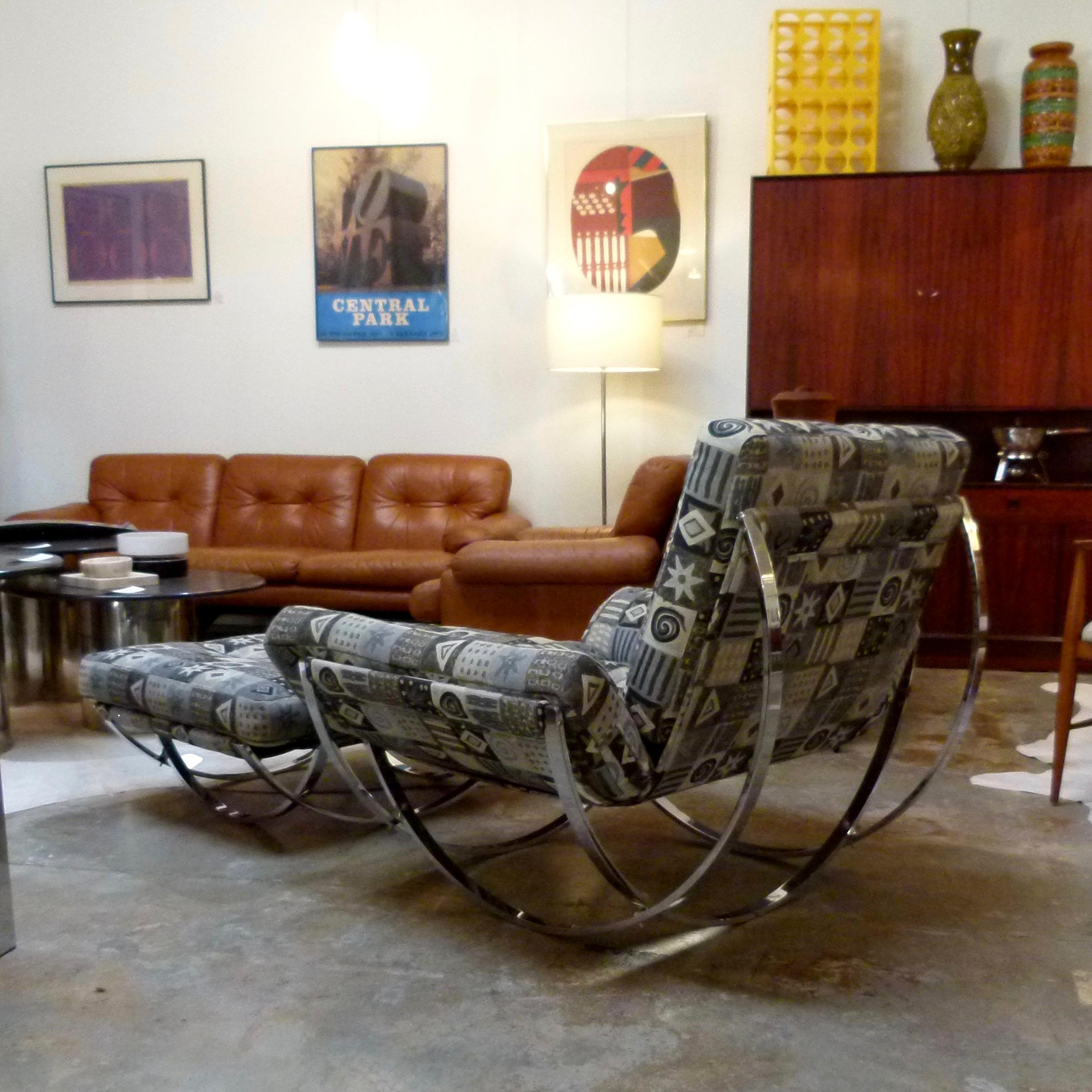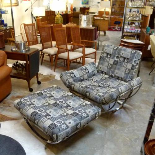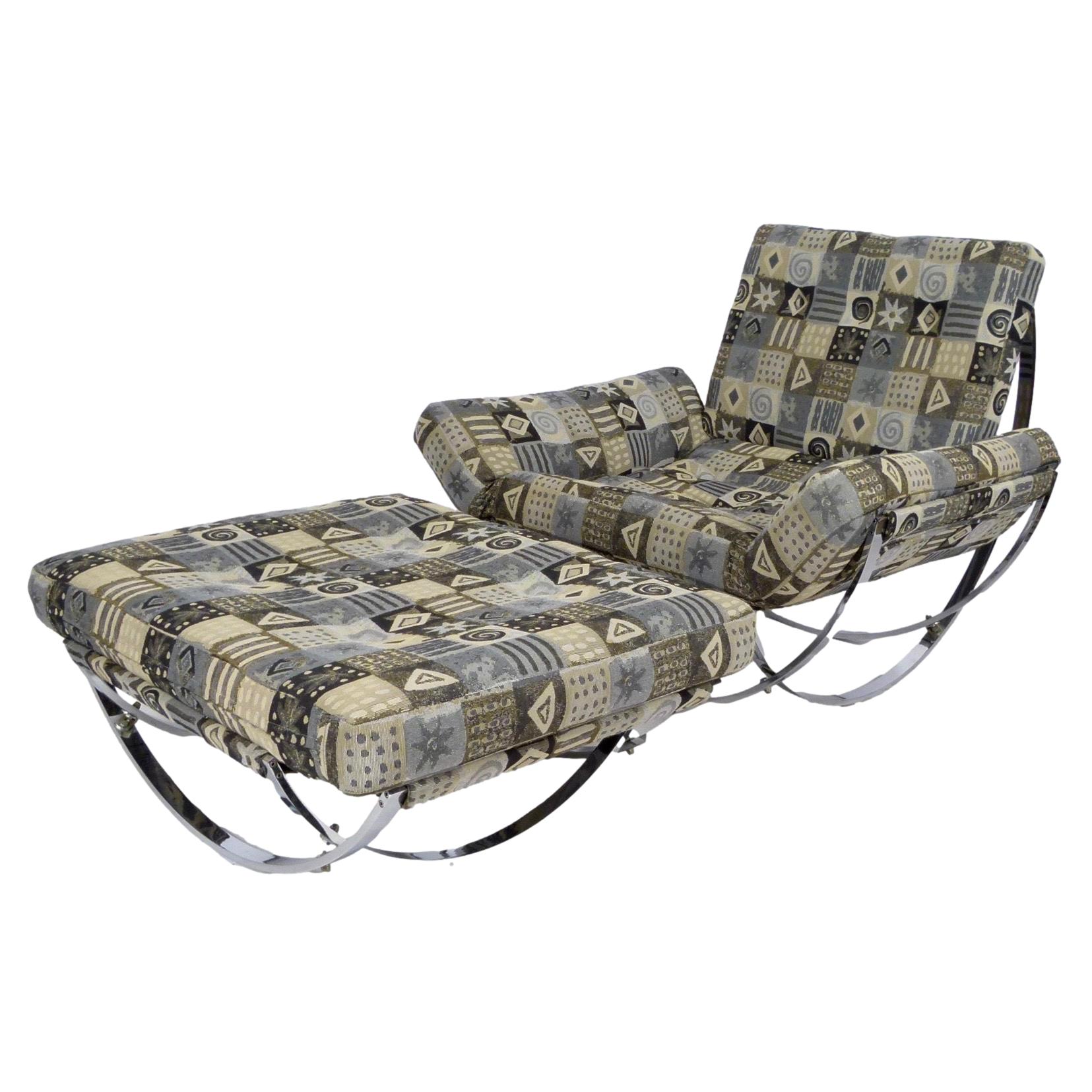 1970s sculptural chrome base lounge chair and ottoman from Italy by Stendig.