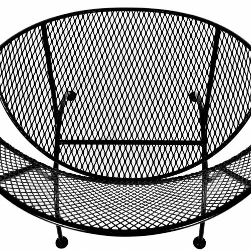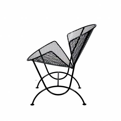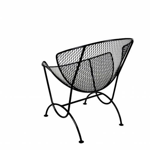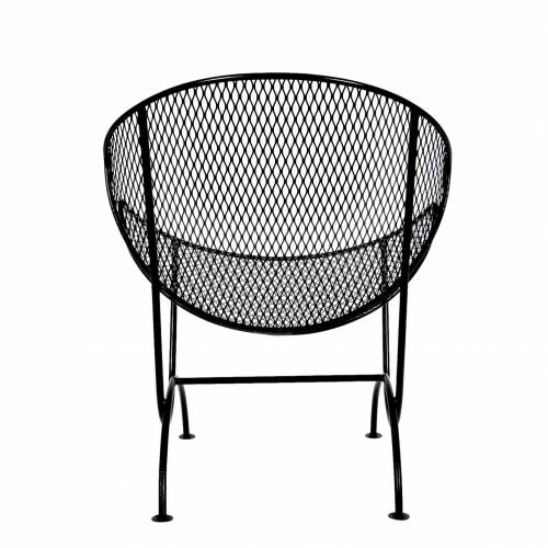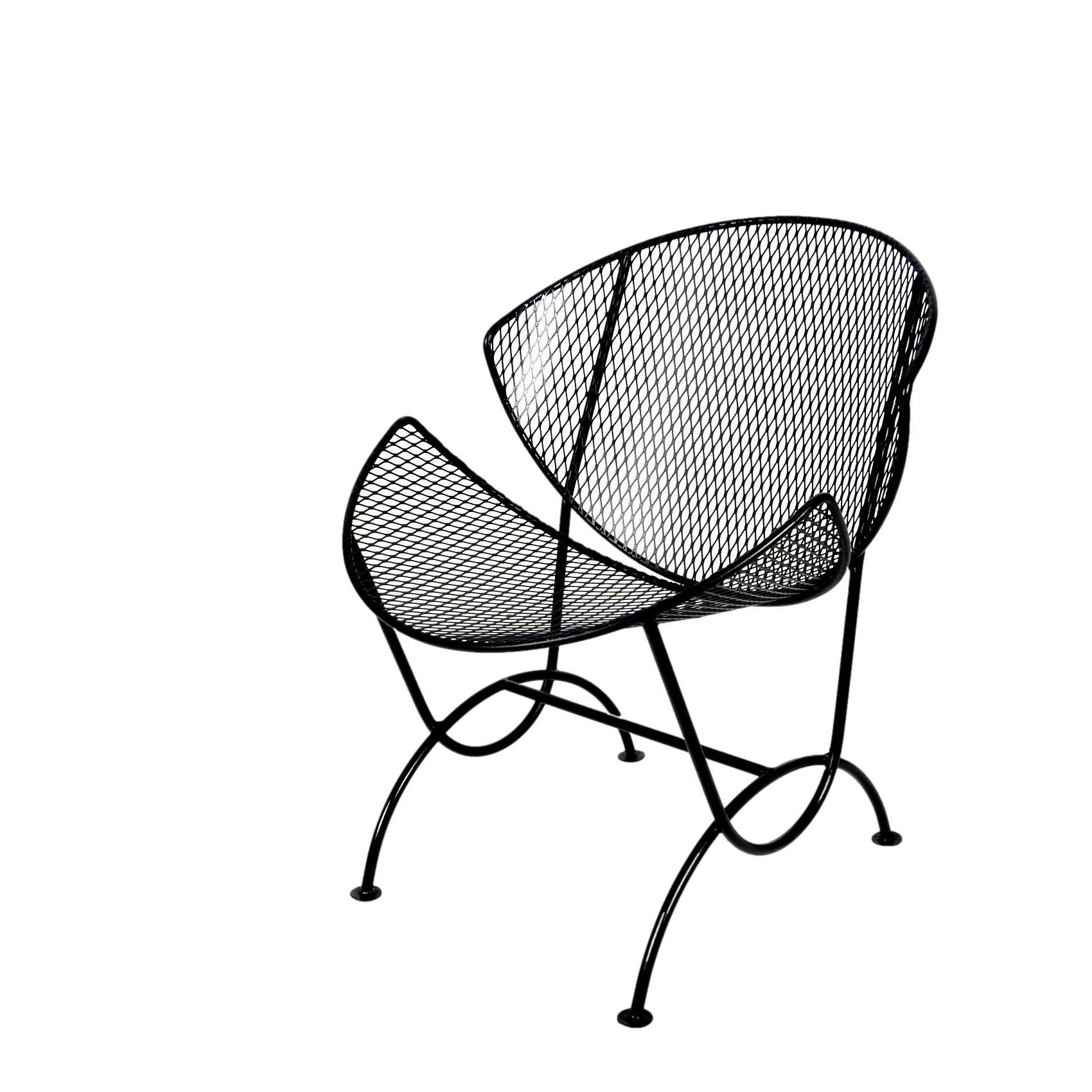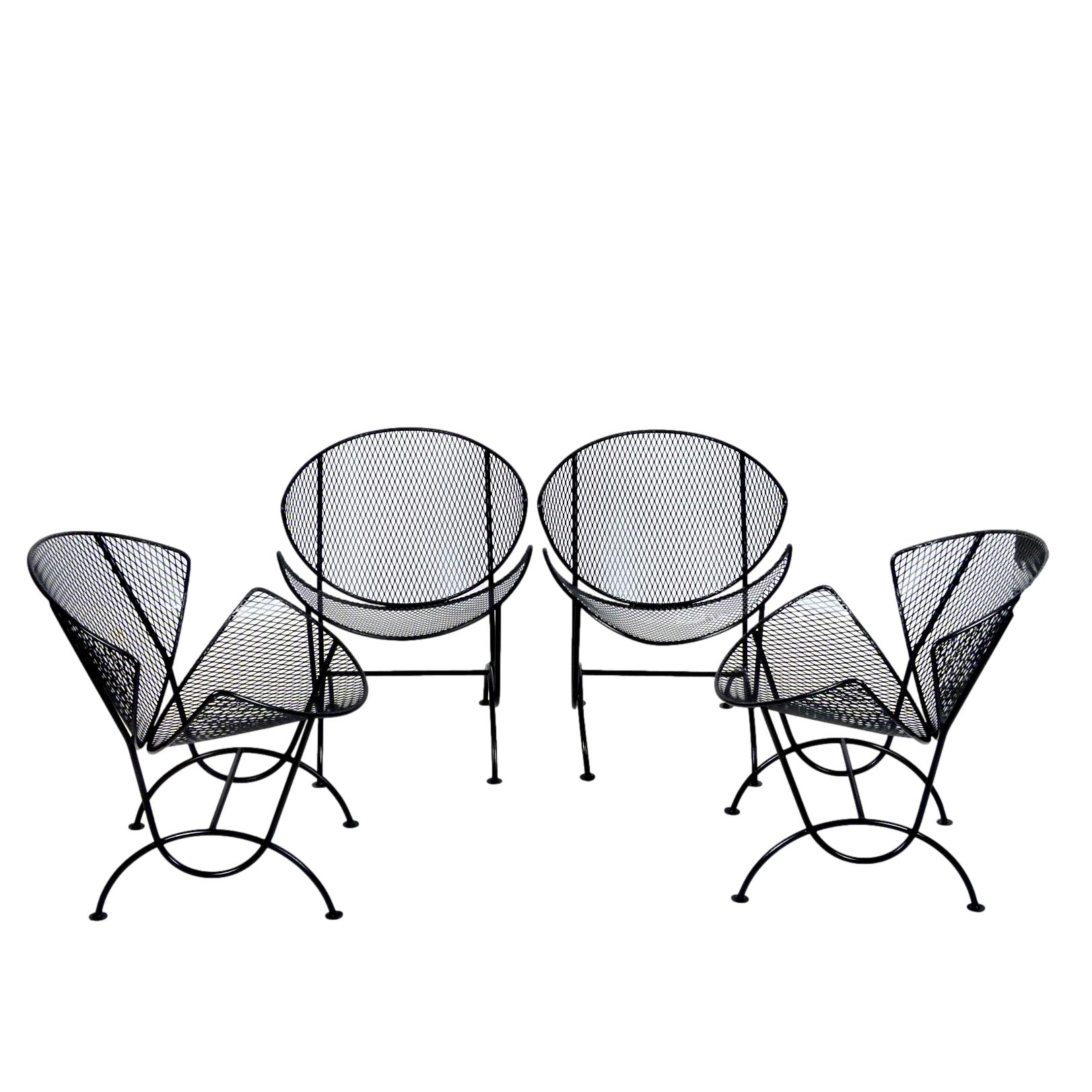Set of 4 clam shell style chairs designed by Maurizio Tempestini for Salterini, Italy, 1950s. Wrought iron frames with mesh steel seat and back, restored with a new powder coat finish in black - perfect for outdoor use and very comfortable.