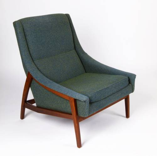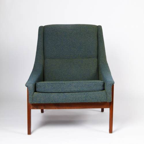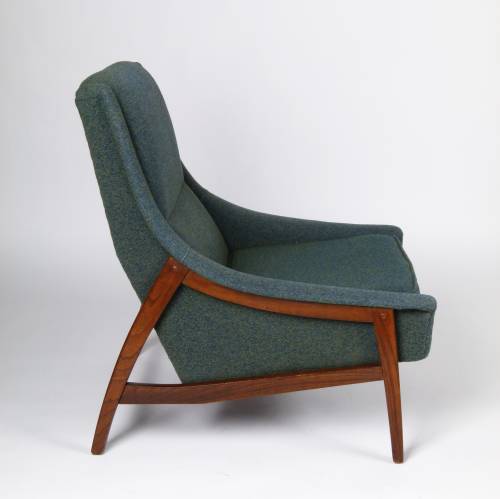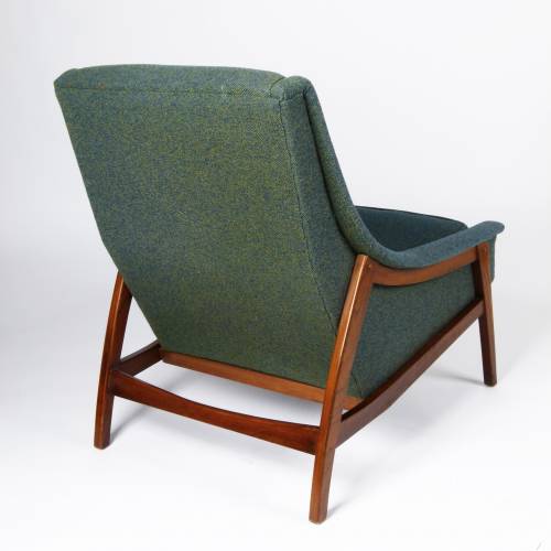 Mid-1960s lounge chair in the manner of Folke Ohlsson with original wool blend woven fabric and walnut frame.