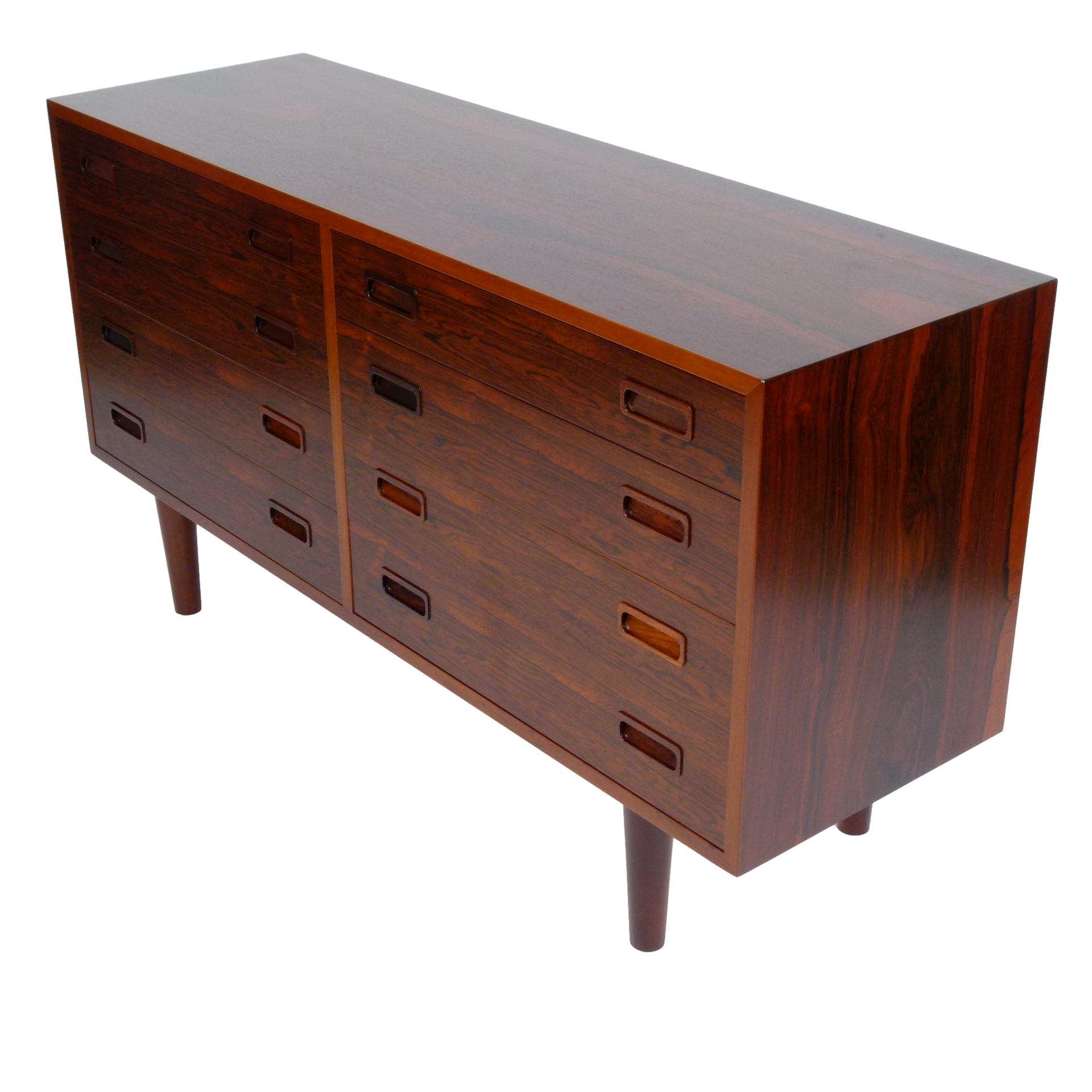 1960s rosewood eight drawer dresser designed by Poul Hundevad, made in Denmark.