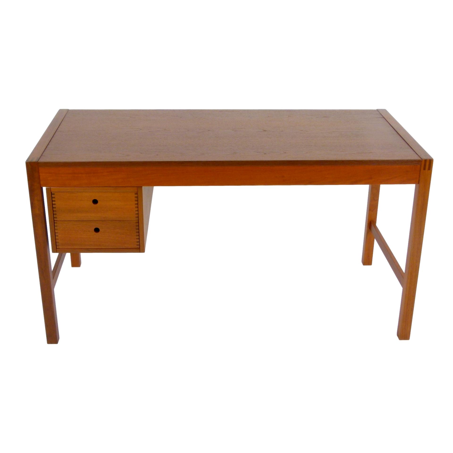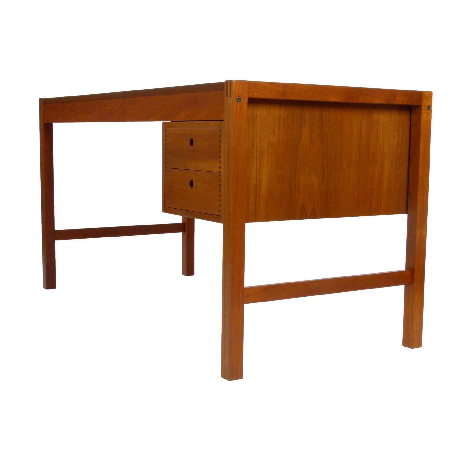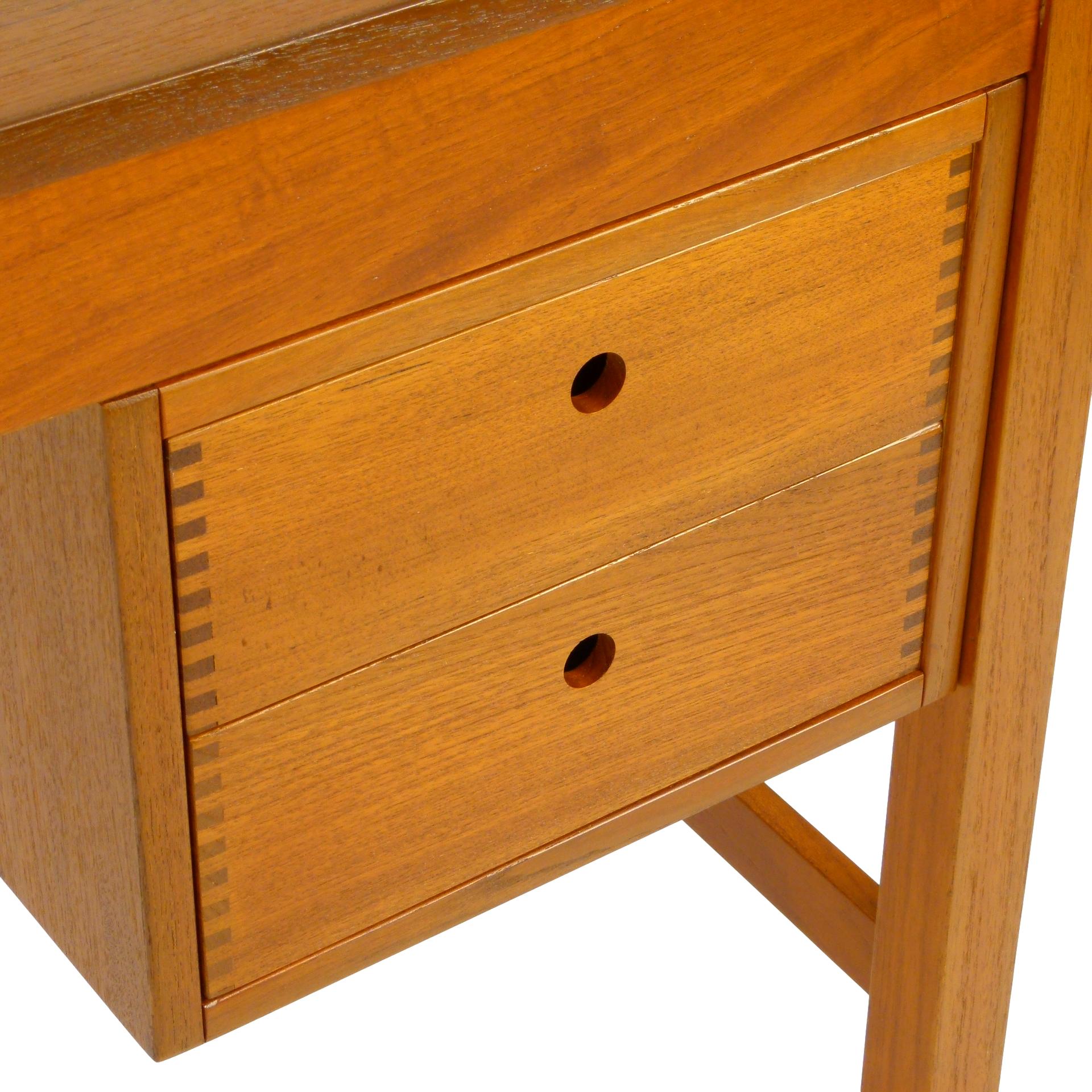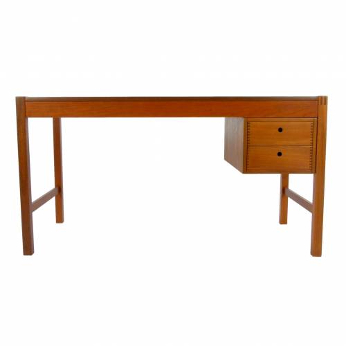 1960s teak two drawer desk designed by Ejvind Johansson for Vitré, Denmark. Box of drawers can slide to either side for left or right handed use.