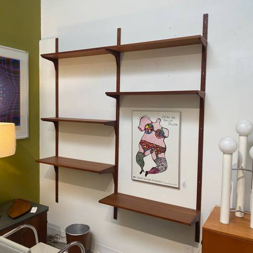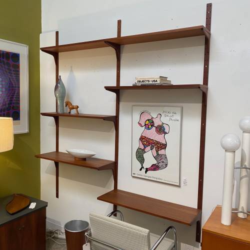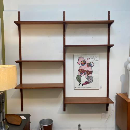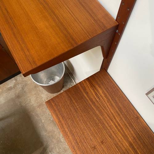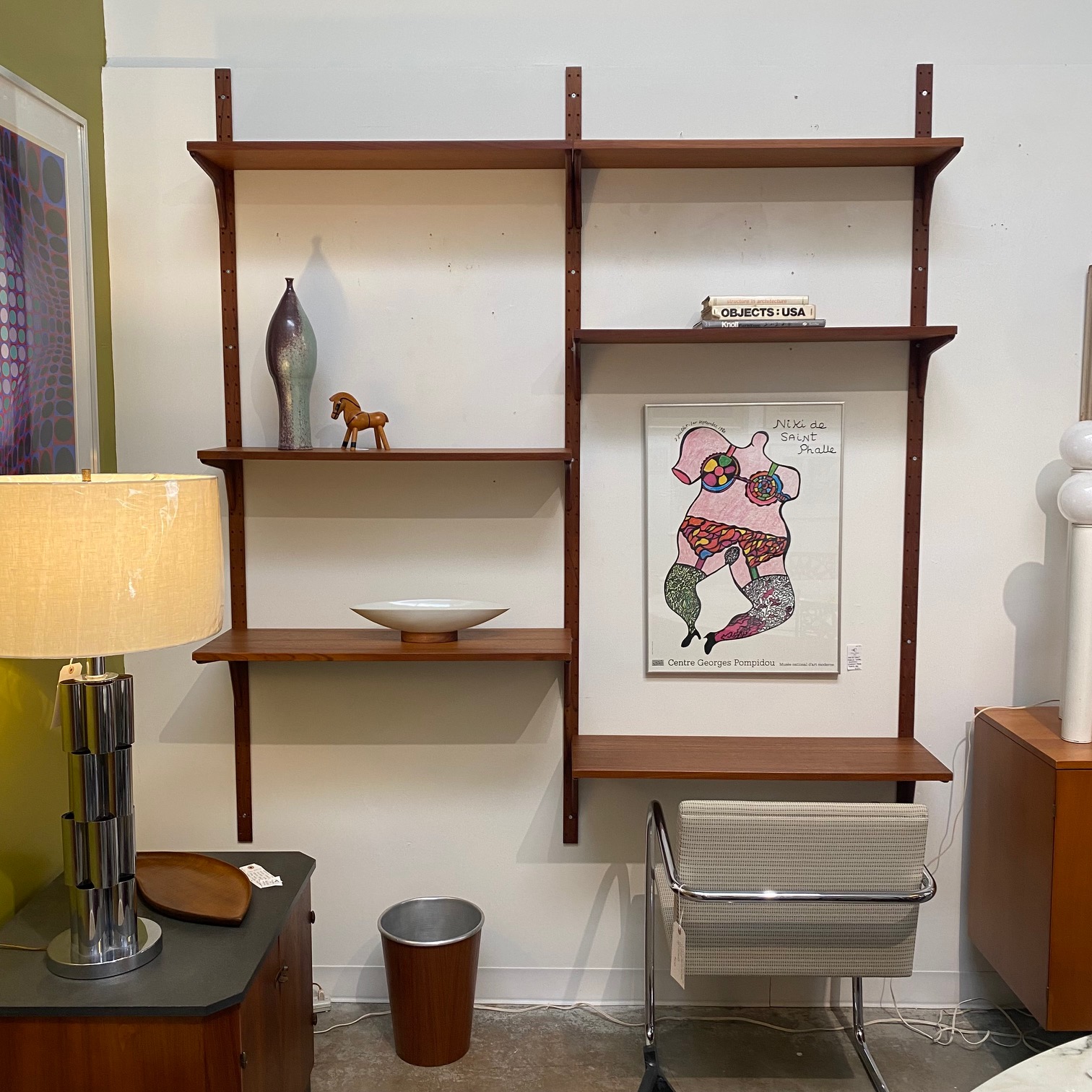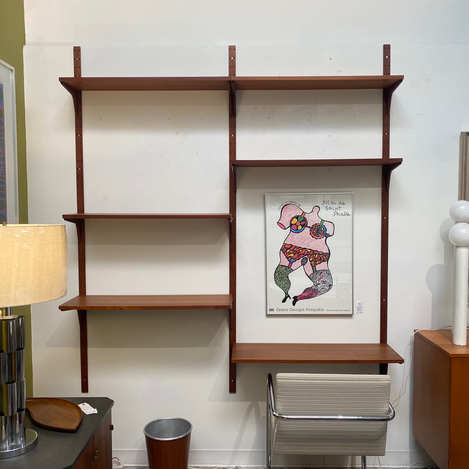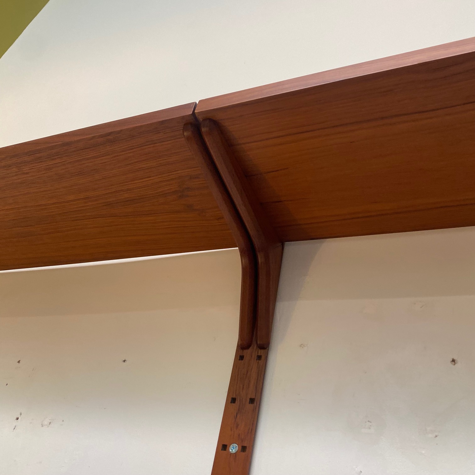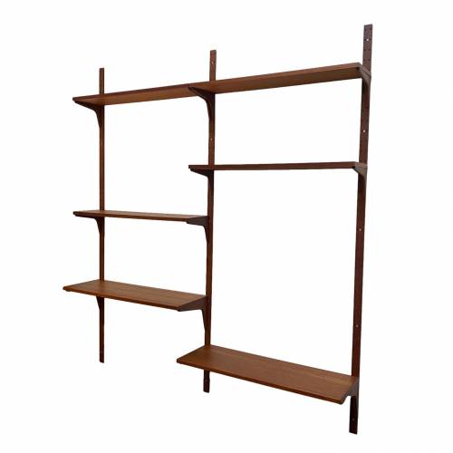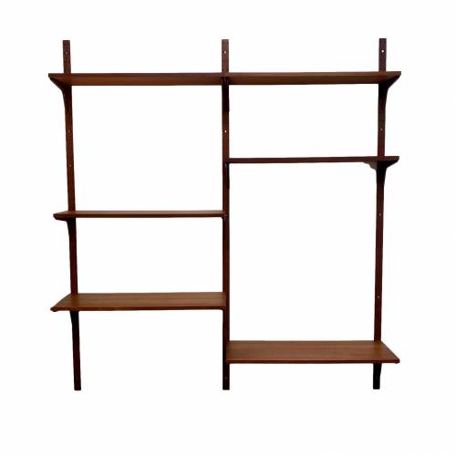 1960s modular two bay teak wall unit by HG (Hansen and Guldborg), Denmark. This fully adjustable unit can easily be arranged in multiple configurations.