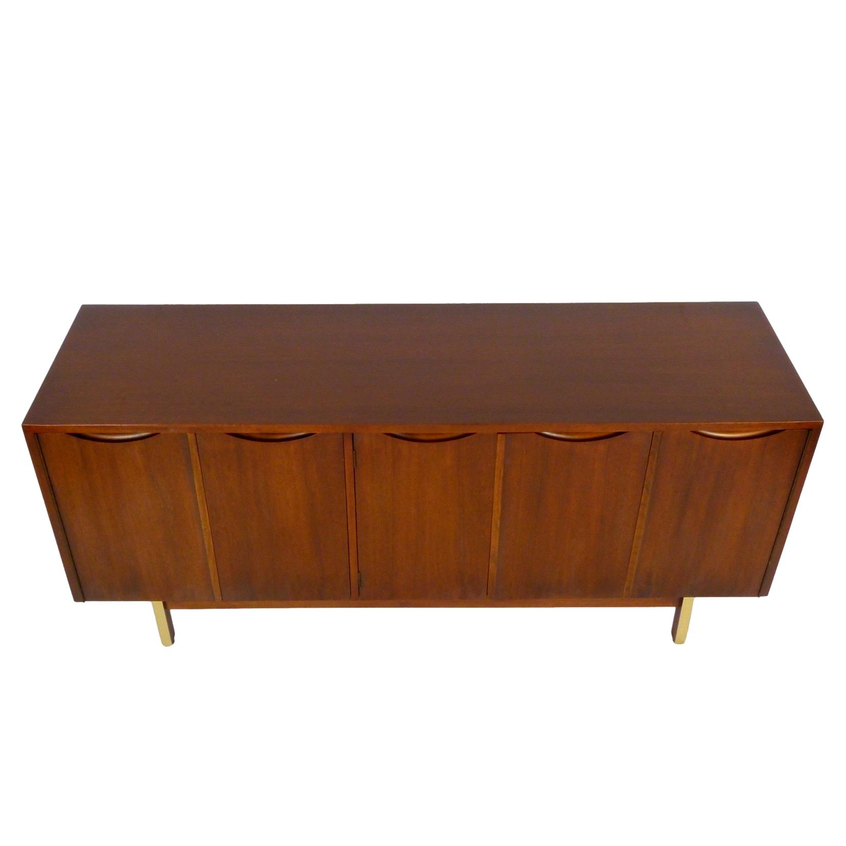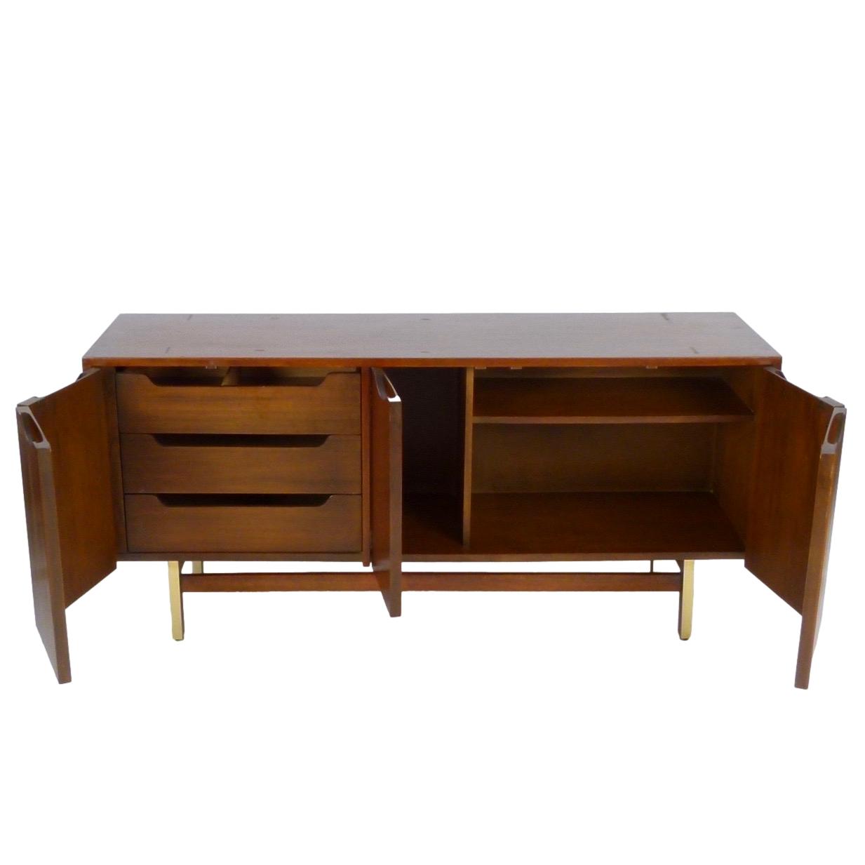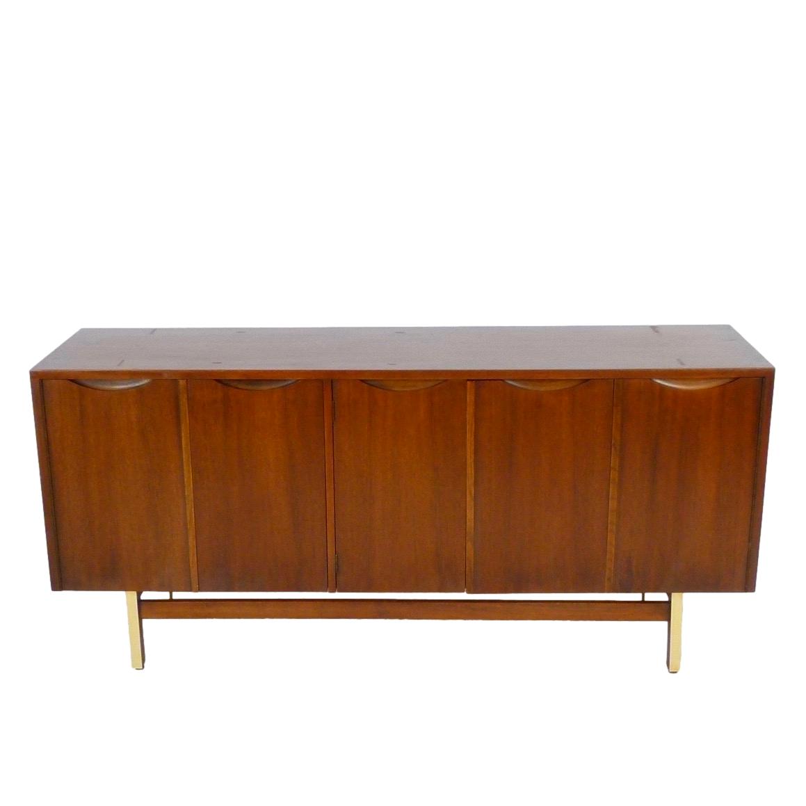 1960s walnut and brass buffet / credenza with storage and 3 drawers behind 5 doors by American of Martinsville.