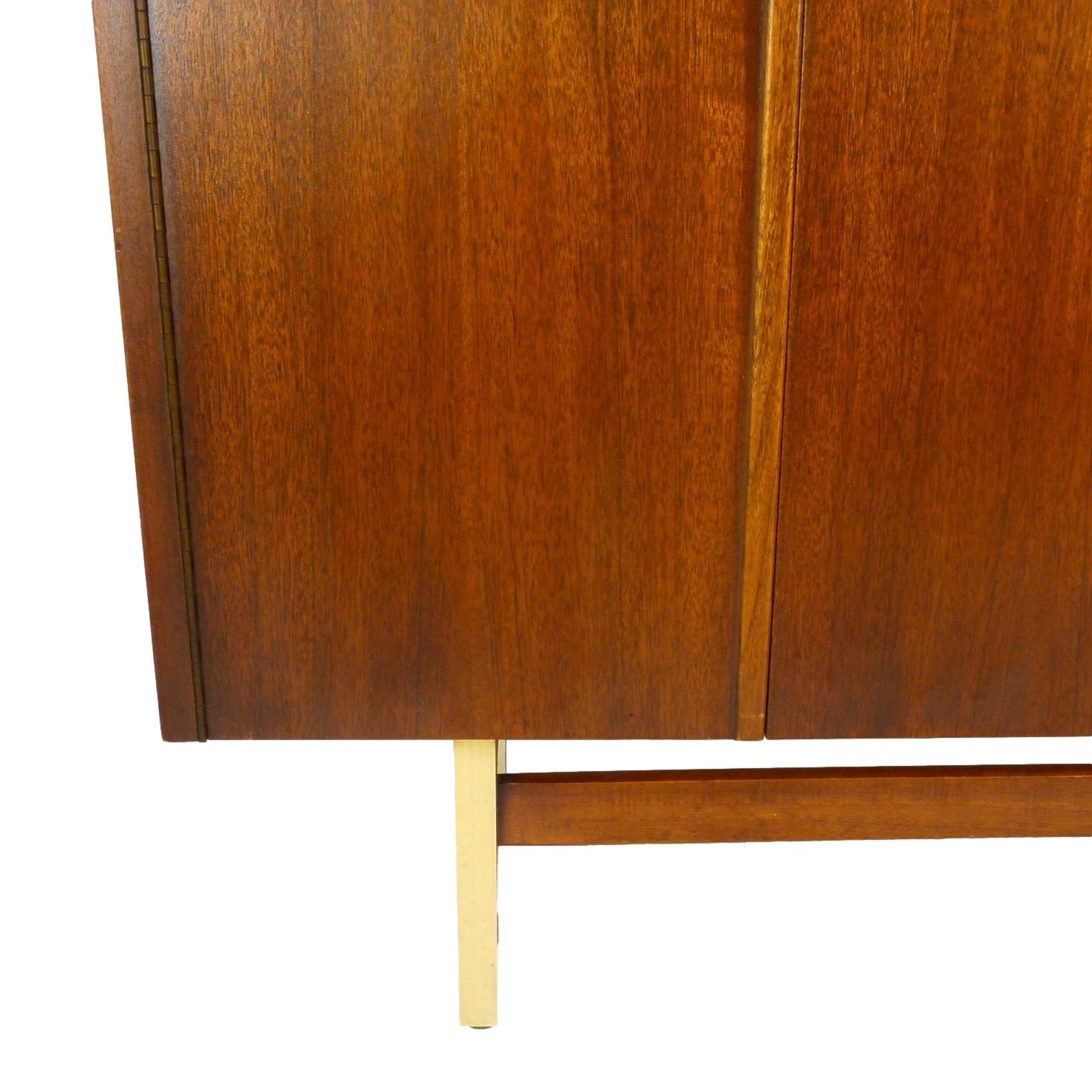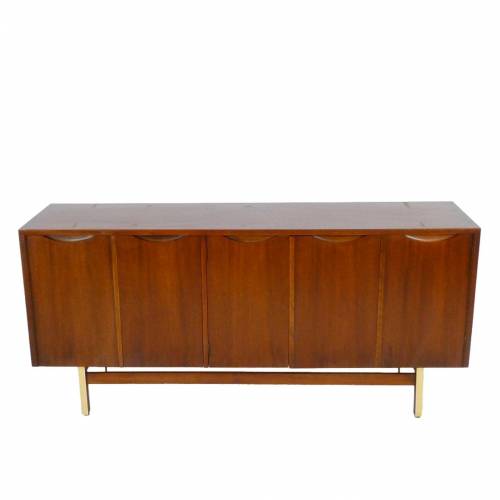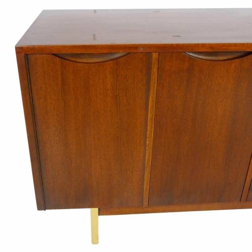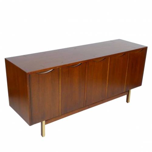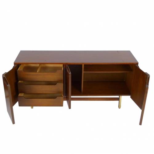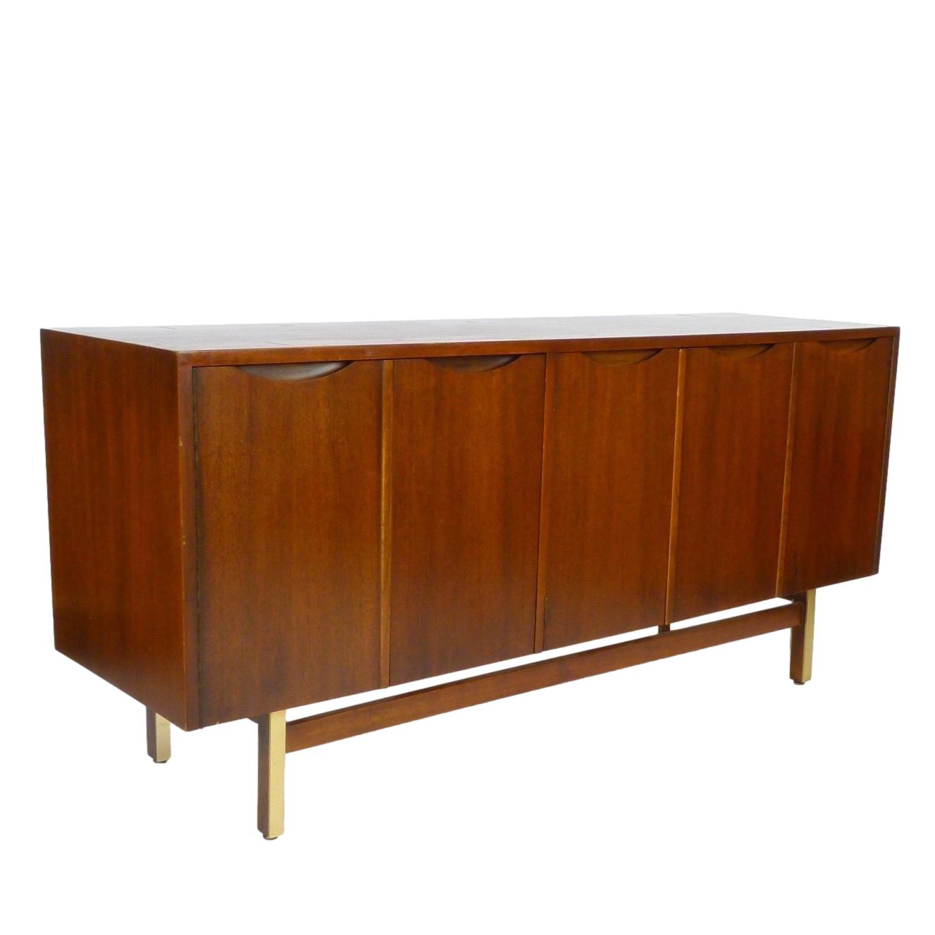 1960s walnut and brass buffet / credenza with storage and 3 drawers behind 5 doors by American of Martinsville.