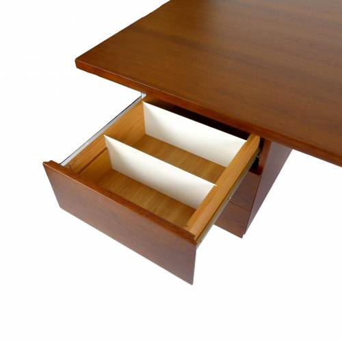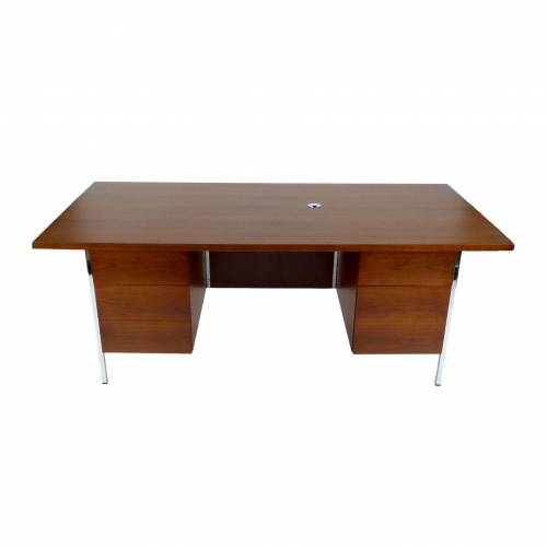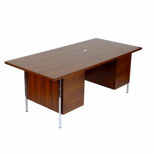 1960s walnut 5-drawer executive desk designed by Florence Knoll. Retains original Knoll label.