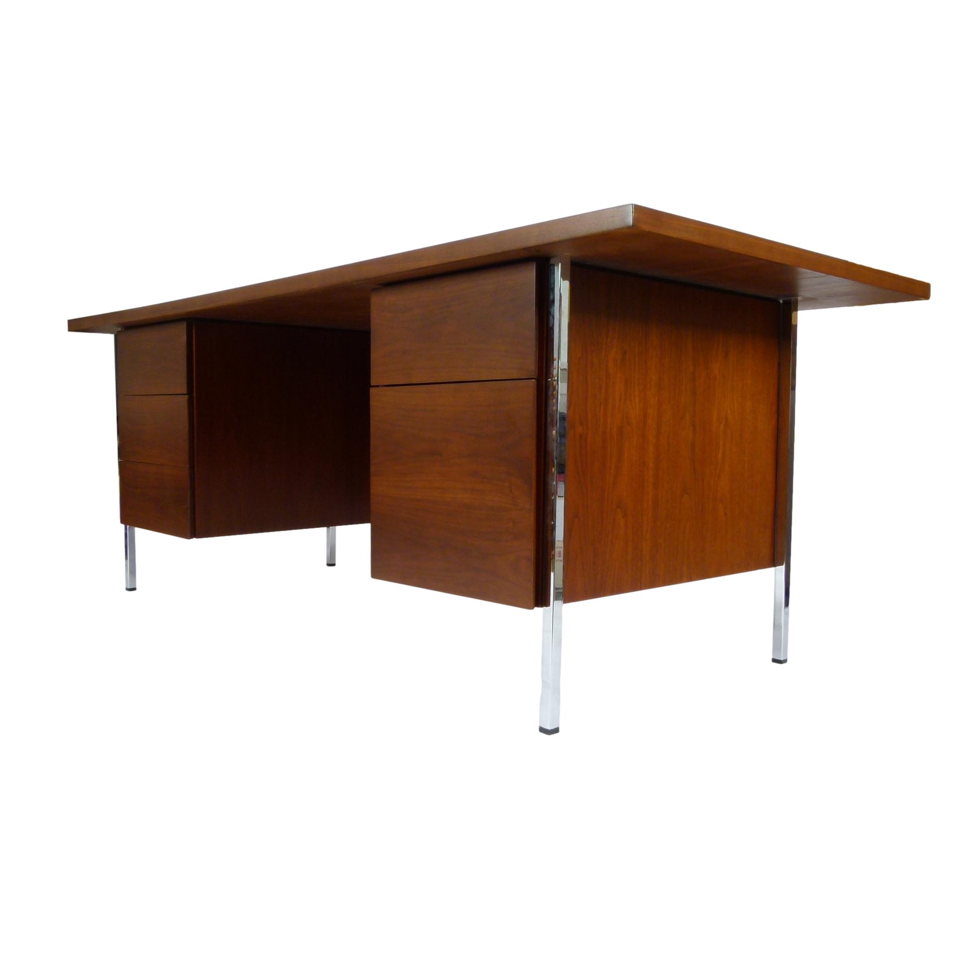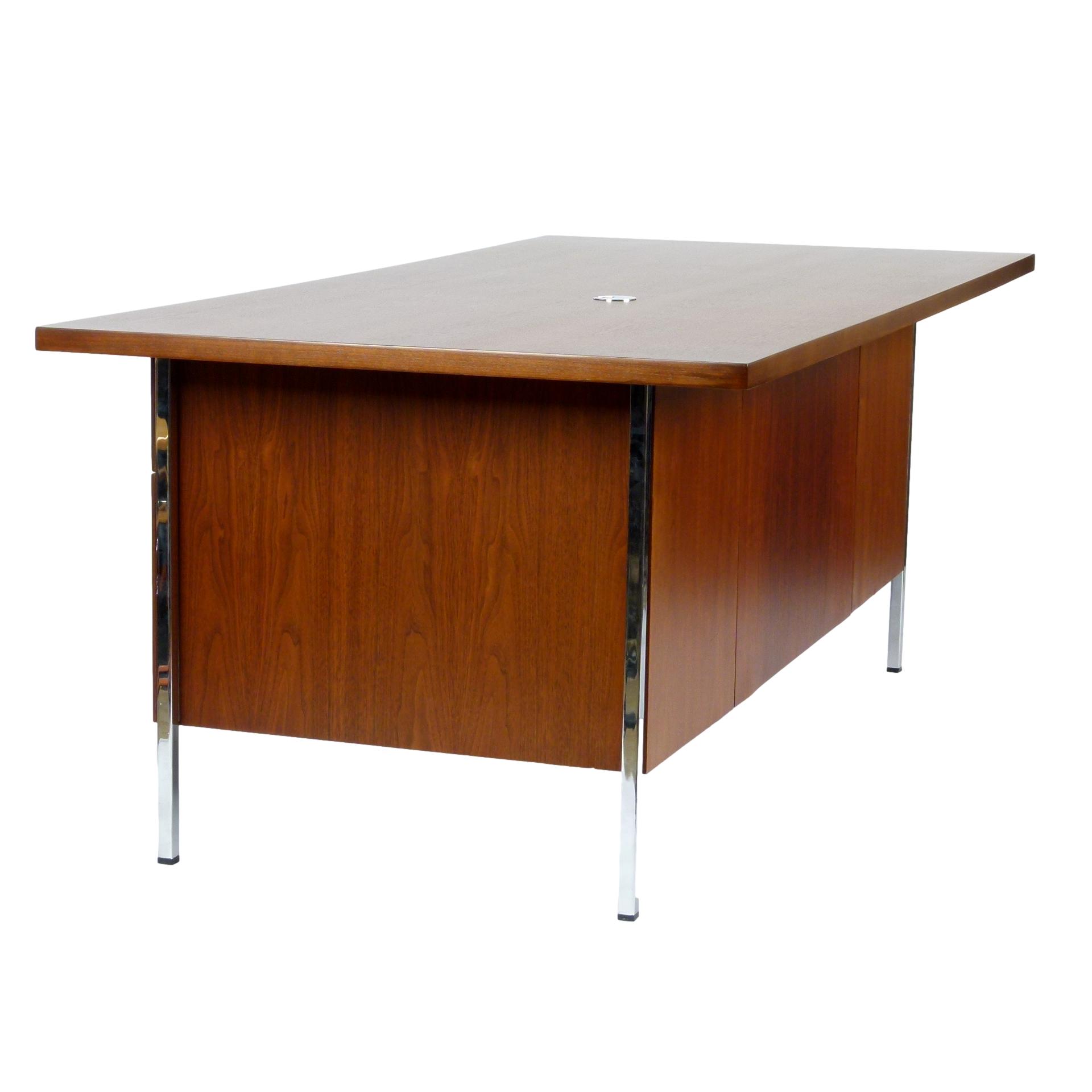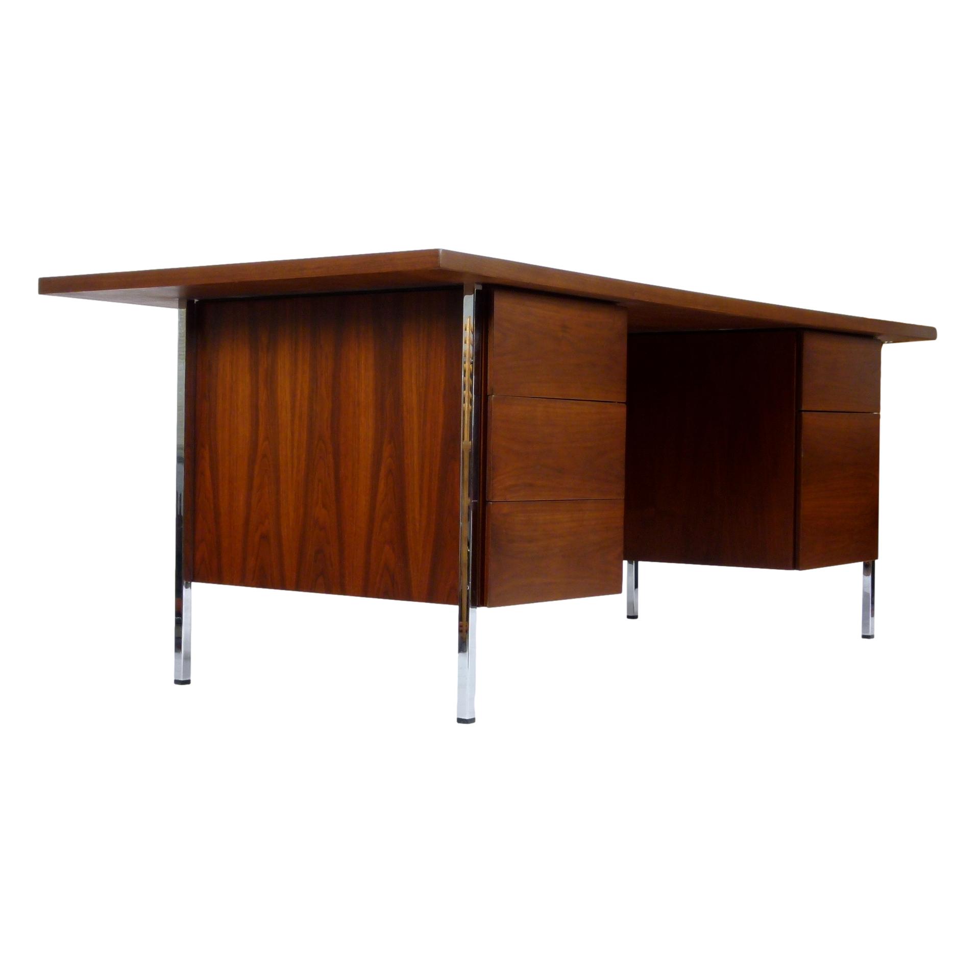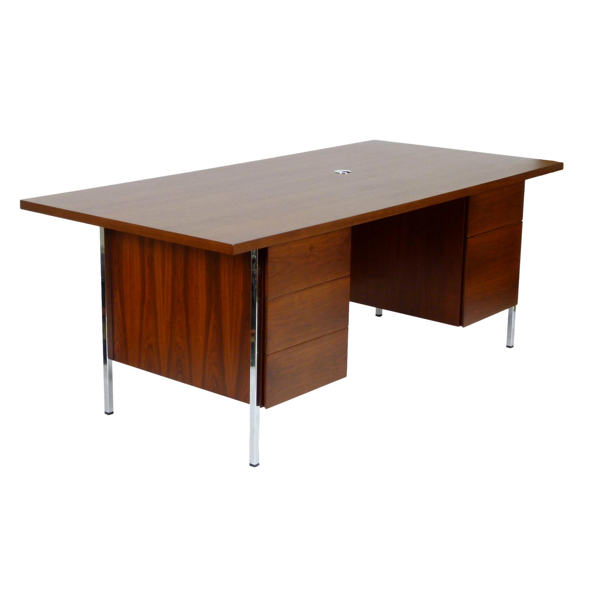 Purchase 1960s Walnut and Chrome Florence Knoll Desk