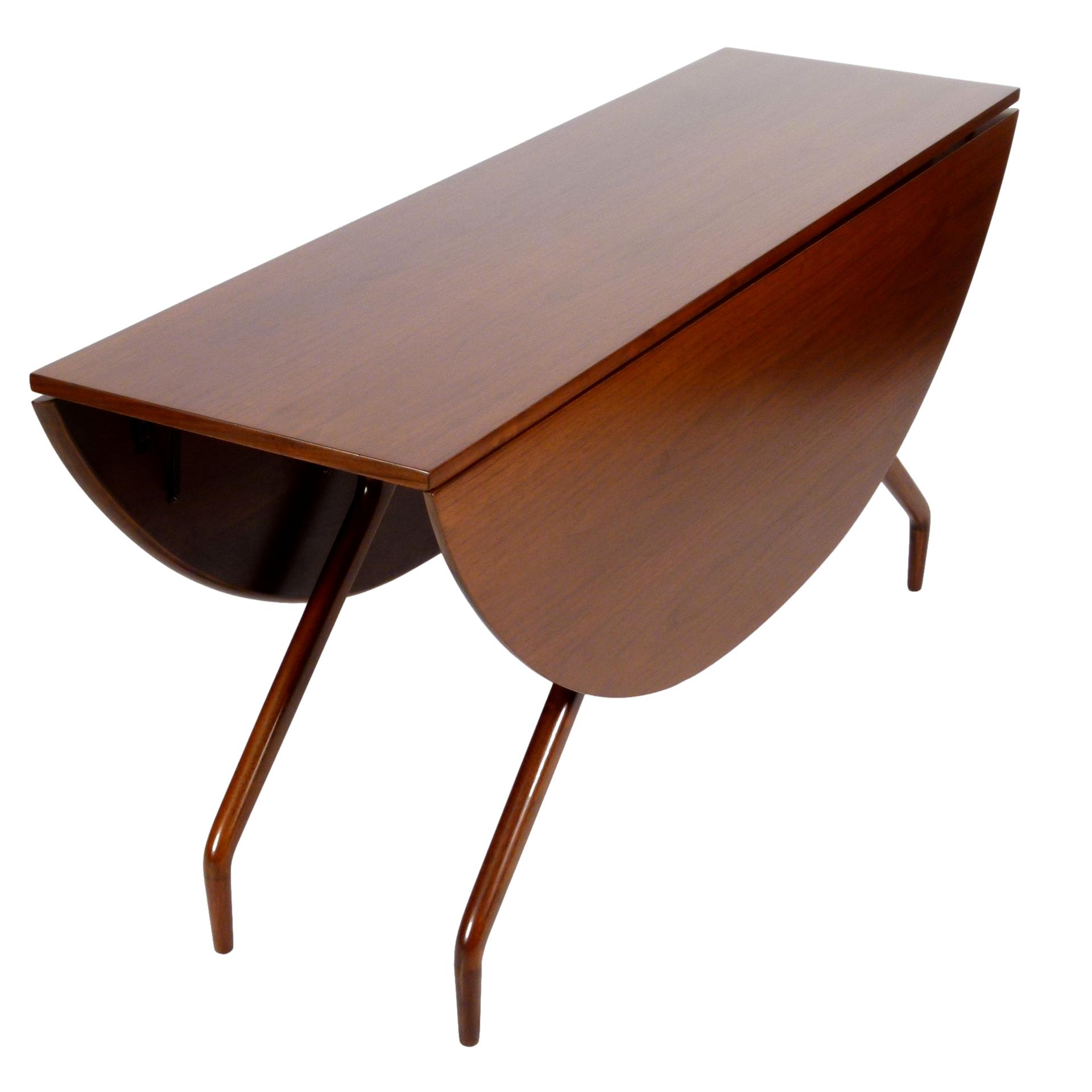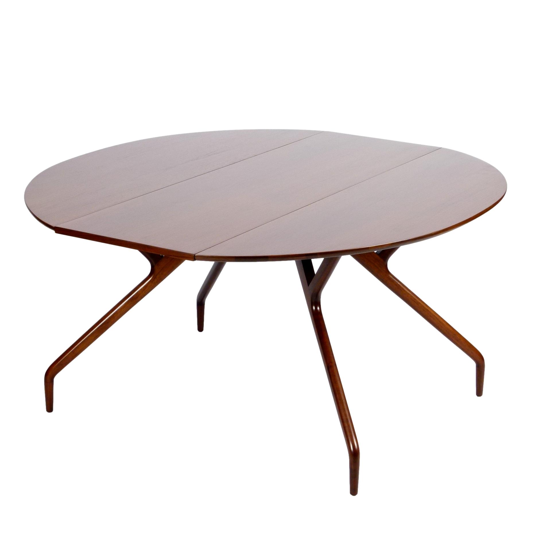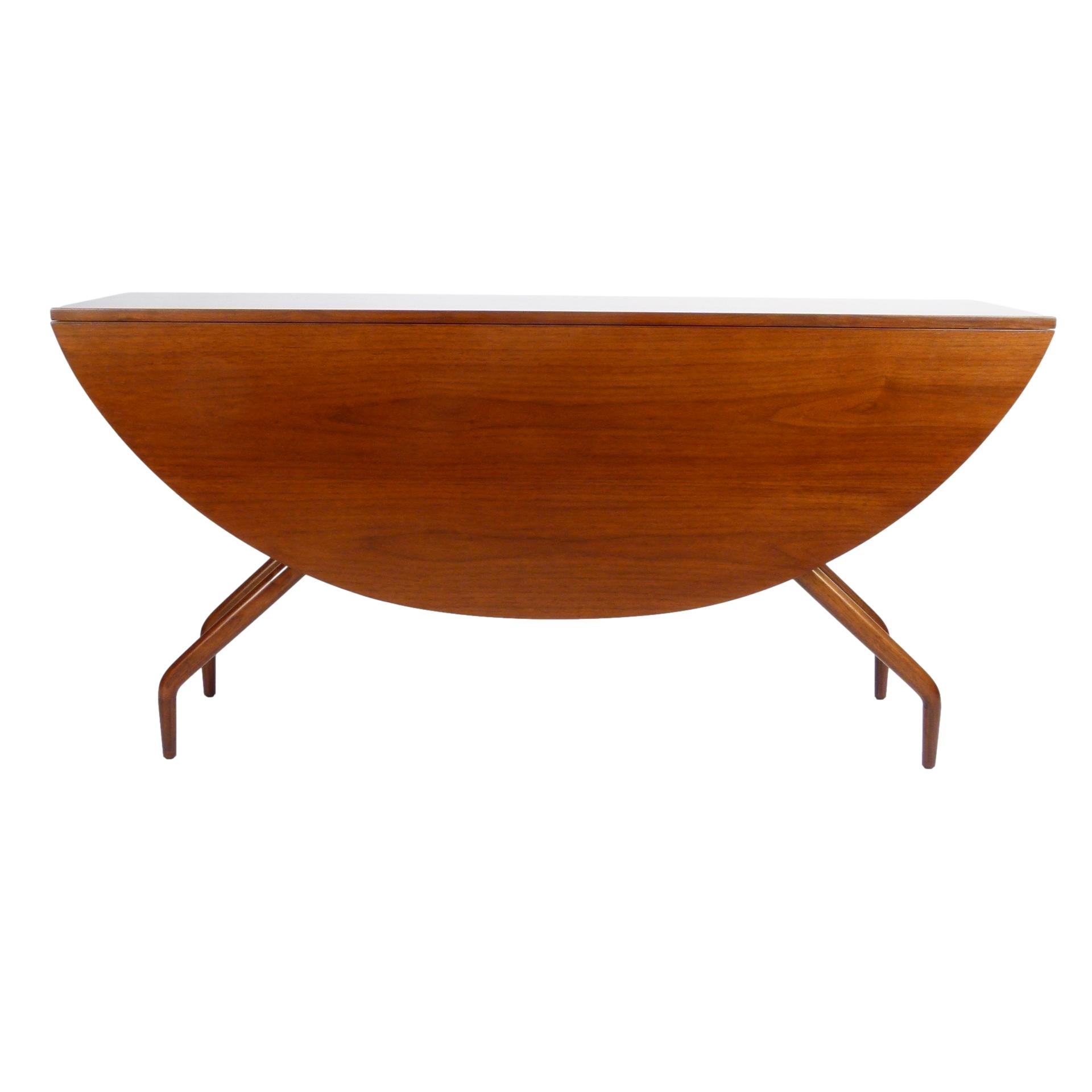 1950s walnut spider leg drop leaf dining table designed by Greta Magnusson Grossman for Glenn of California.