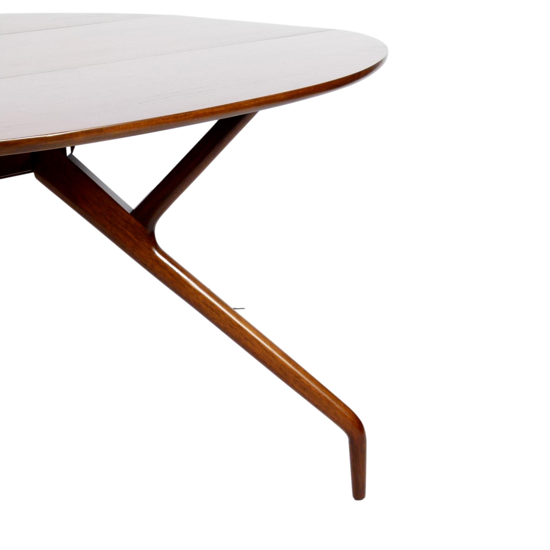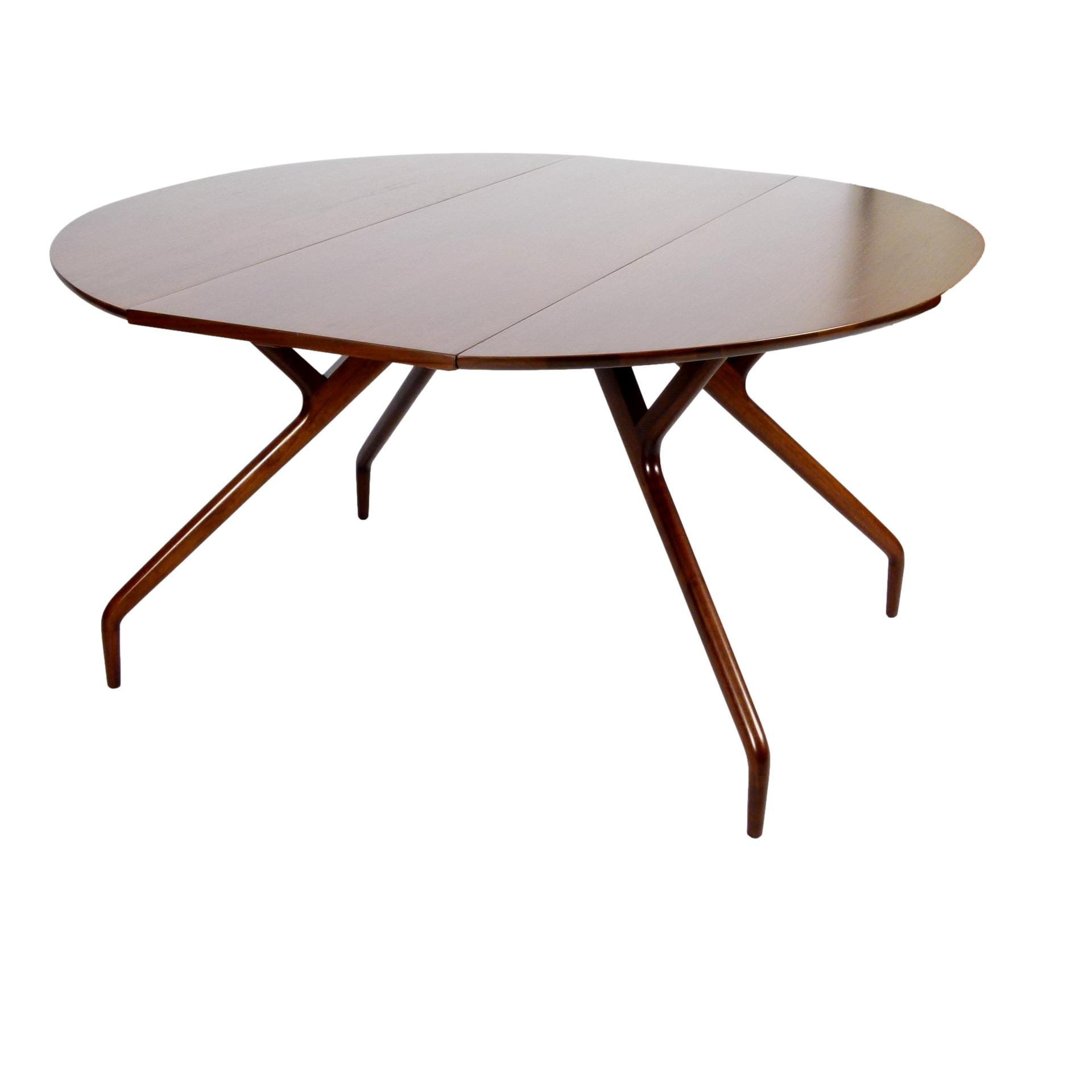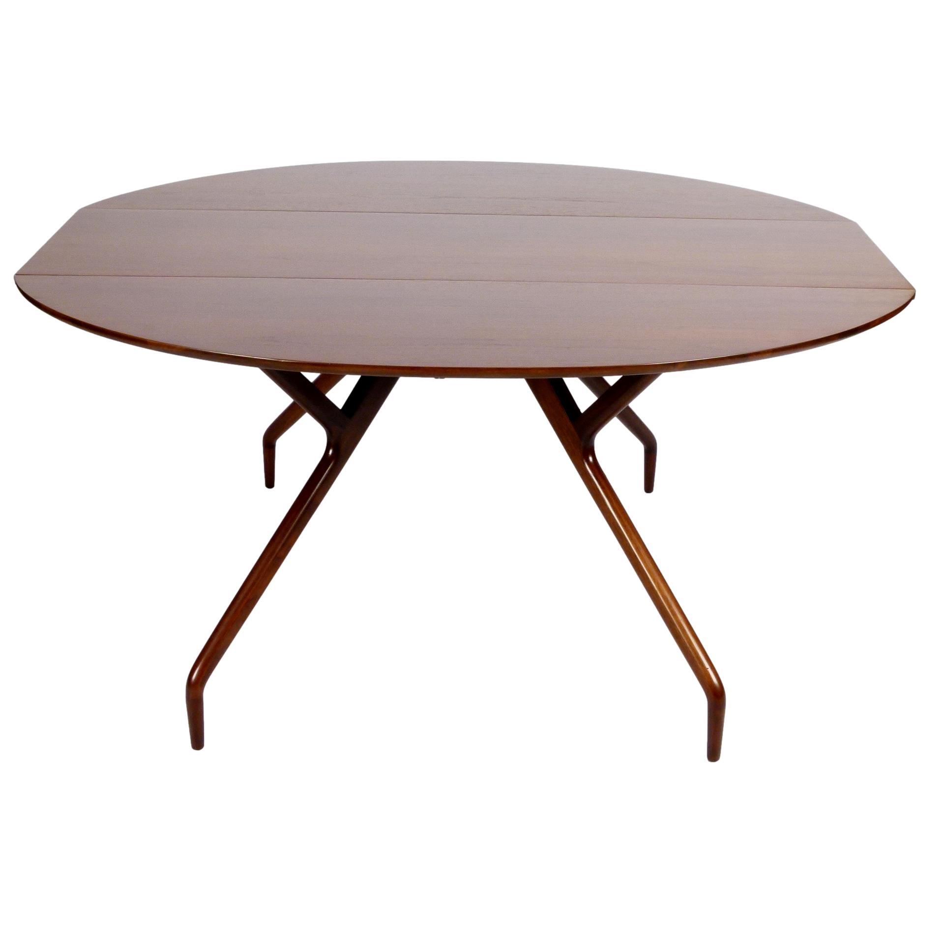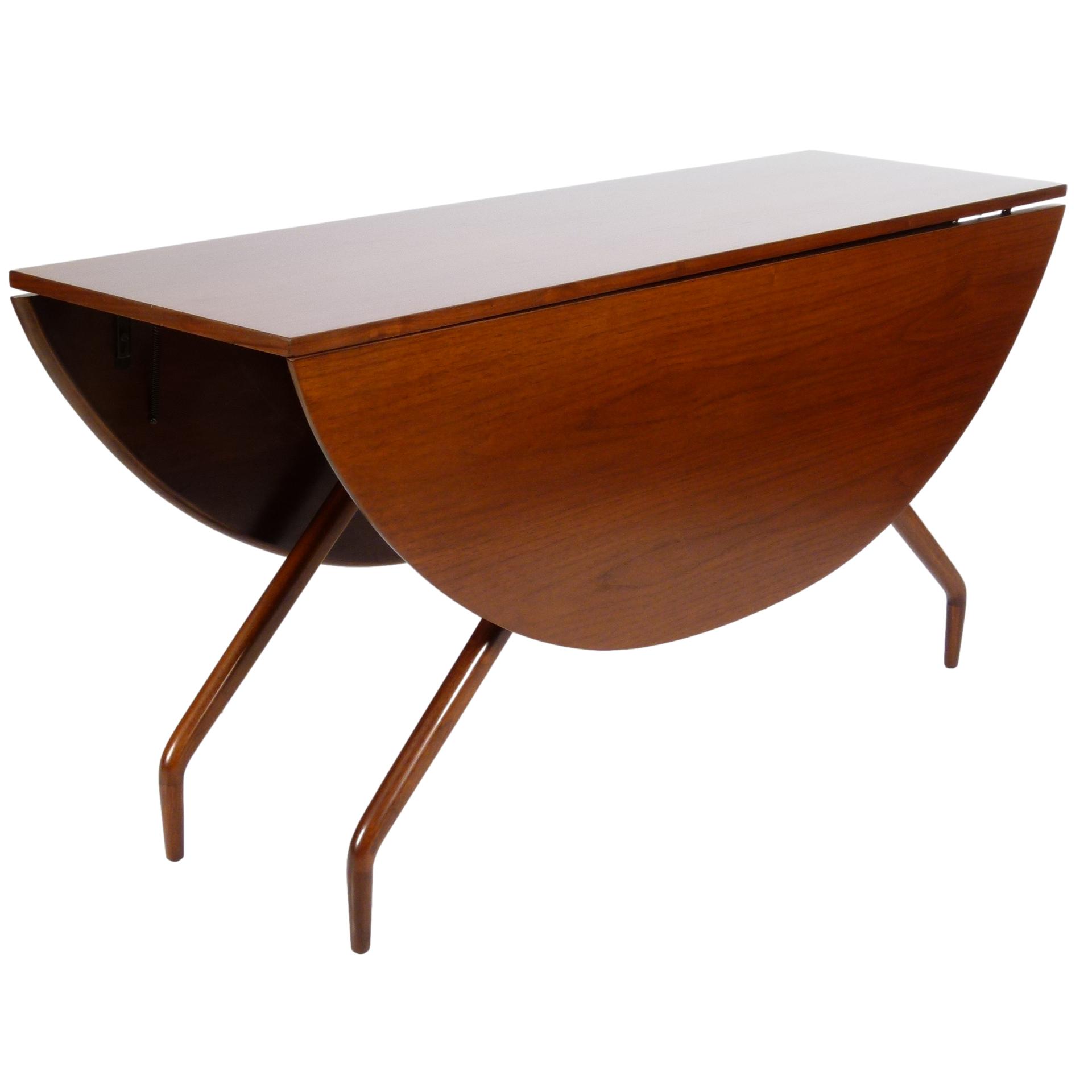 1950s walnut spider leg drop leaf dining table designed by Greta Magnusson Grossman for Glenn of California.