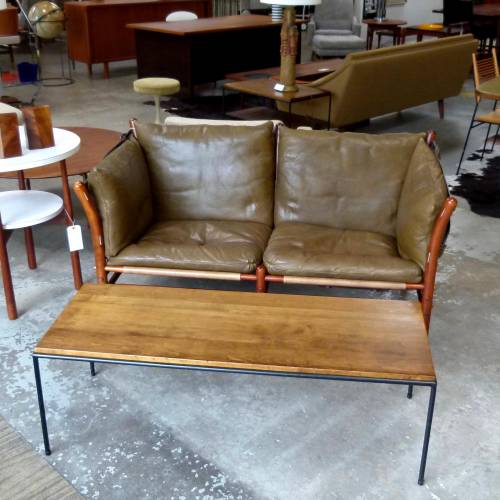 1950s solid maple on iron base coffee table / bench from Paul McCobb's "Planner Group" line.