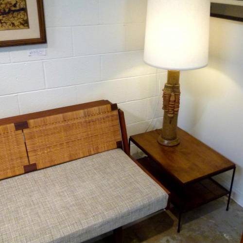 1950s Paul McCobb Side Table With Split Reed Shelf
