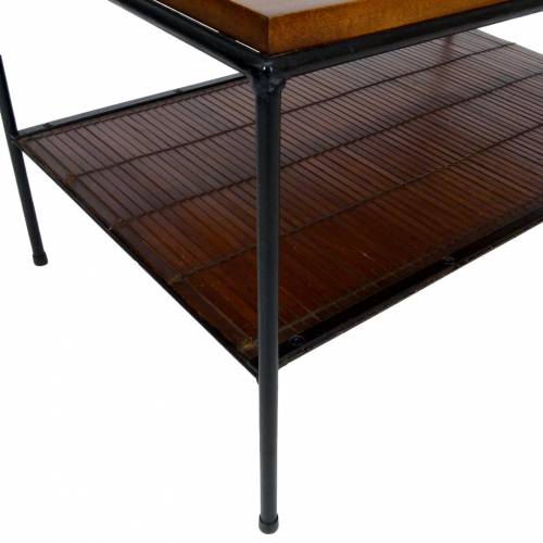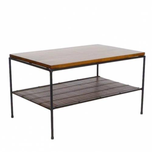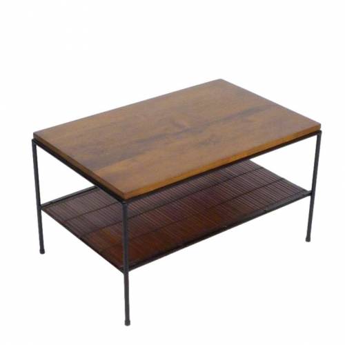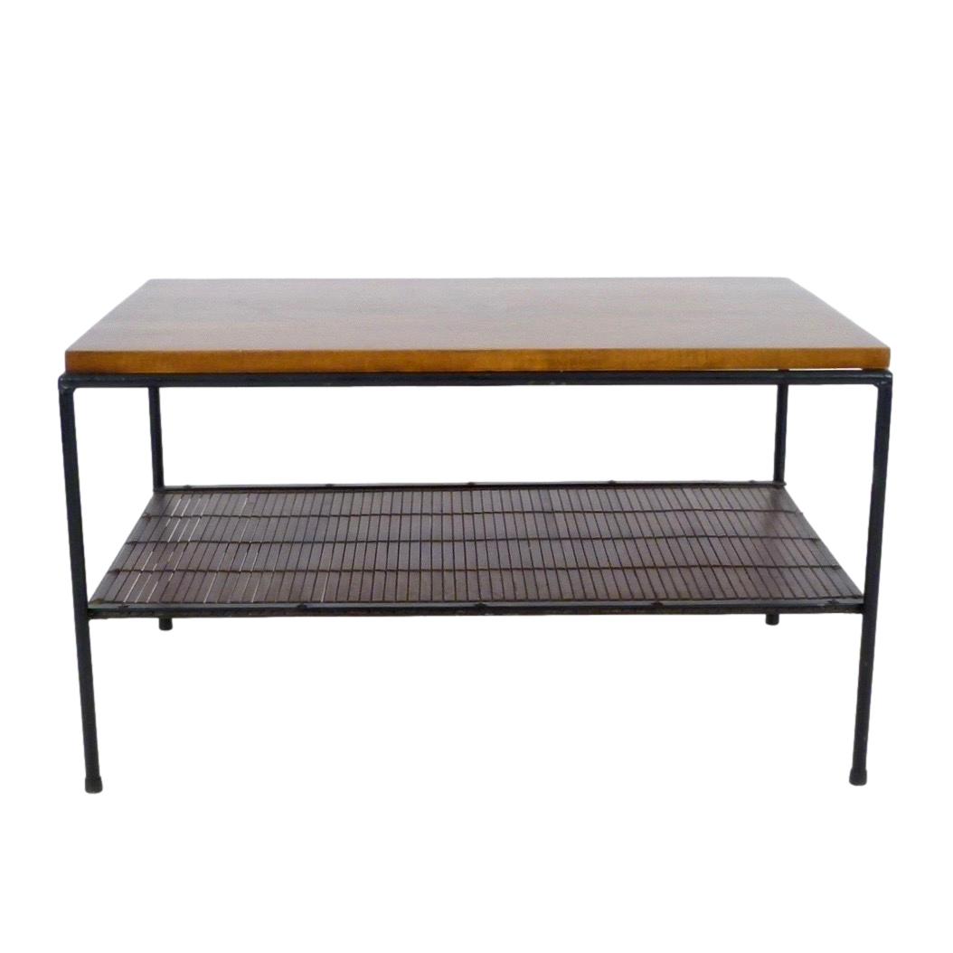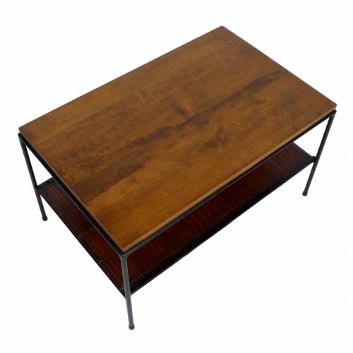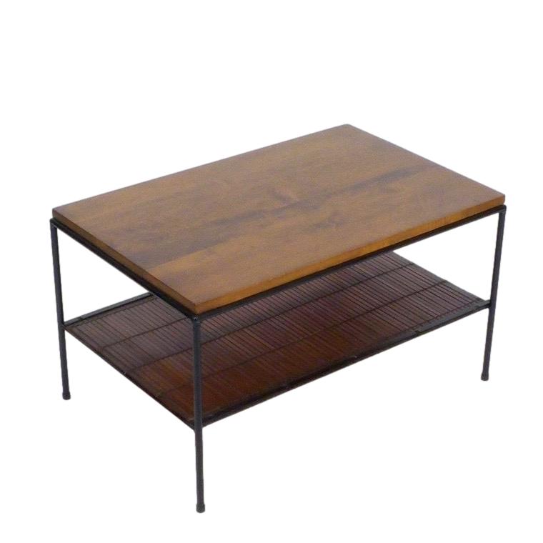 1950s solid maple on iron base with split reed shelf end table from Paul McCobb's Planner Group Line.