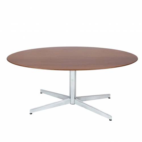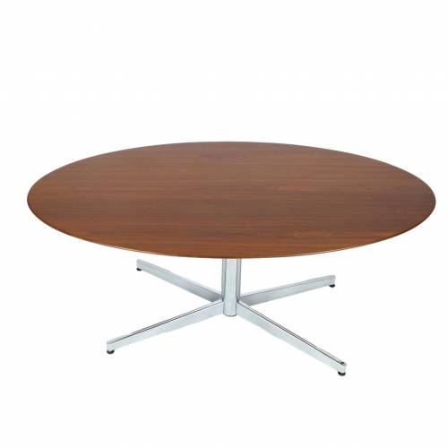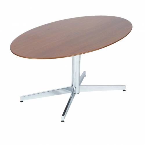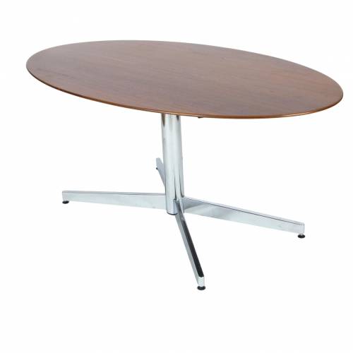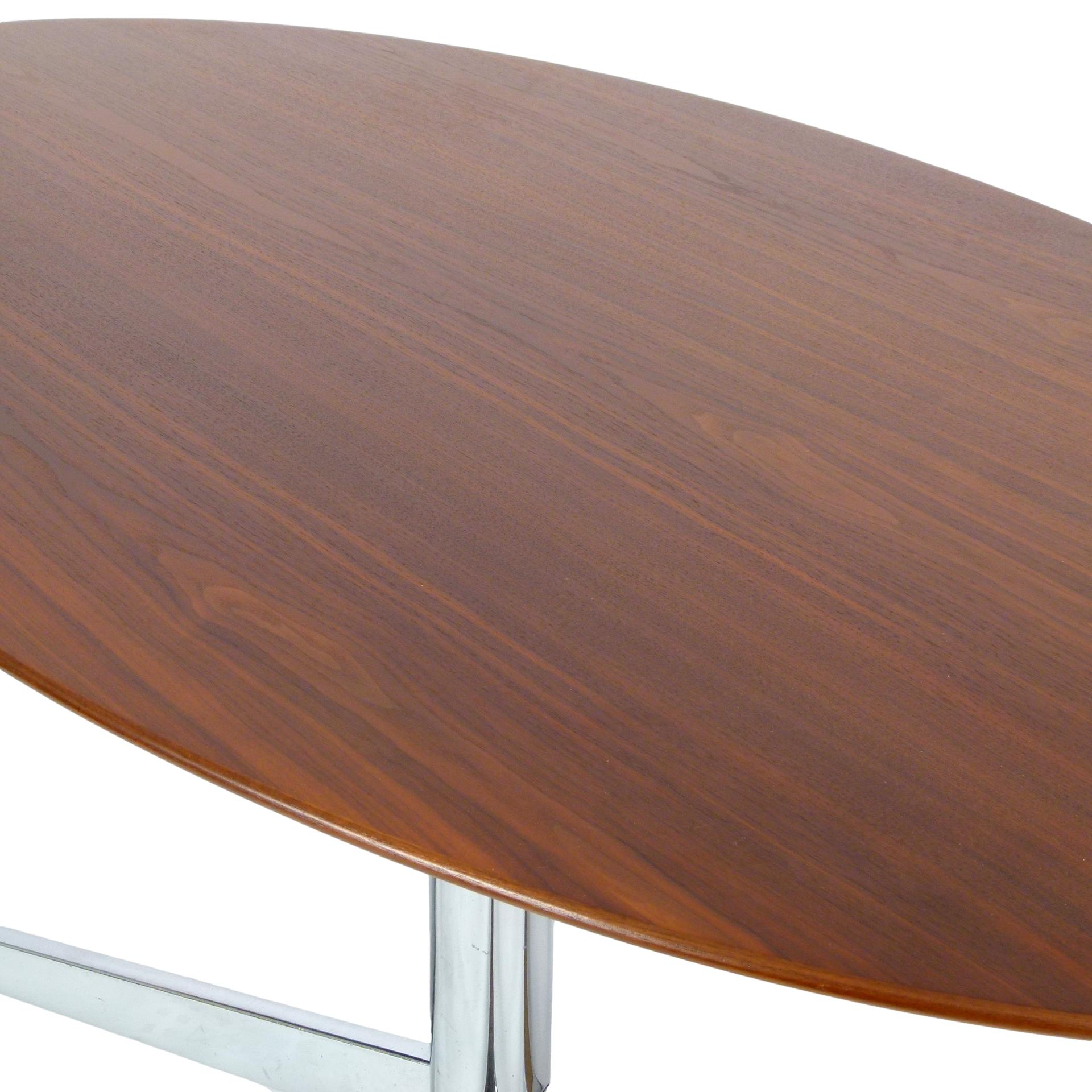 1960s Oval Desk / Table in Walnut with Chrome Base