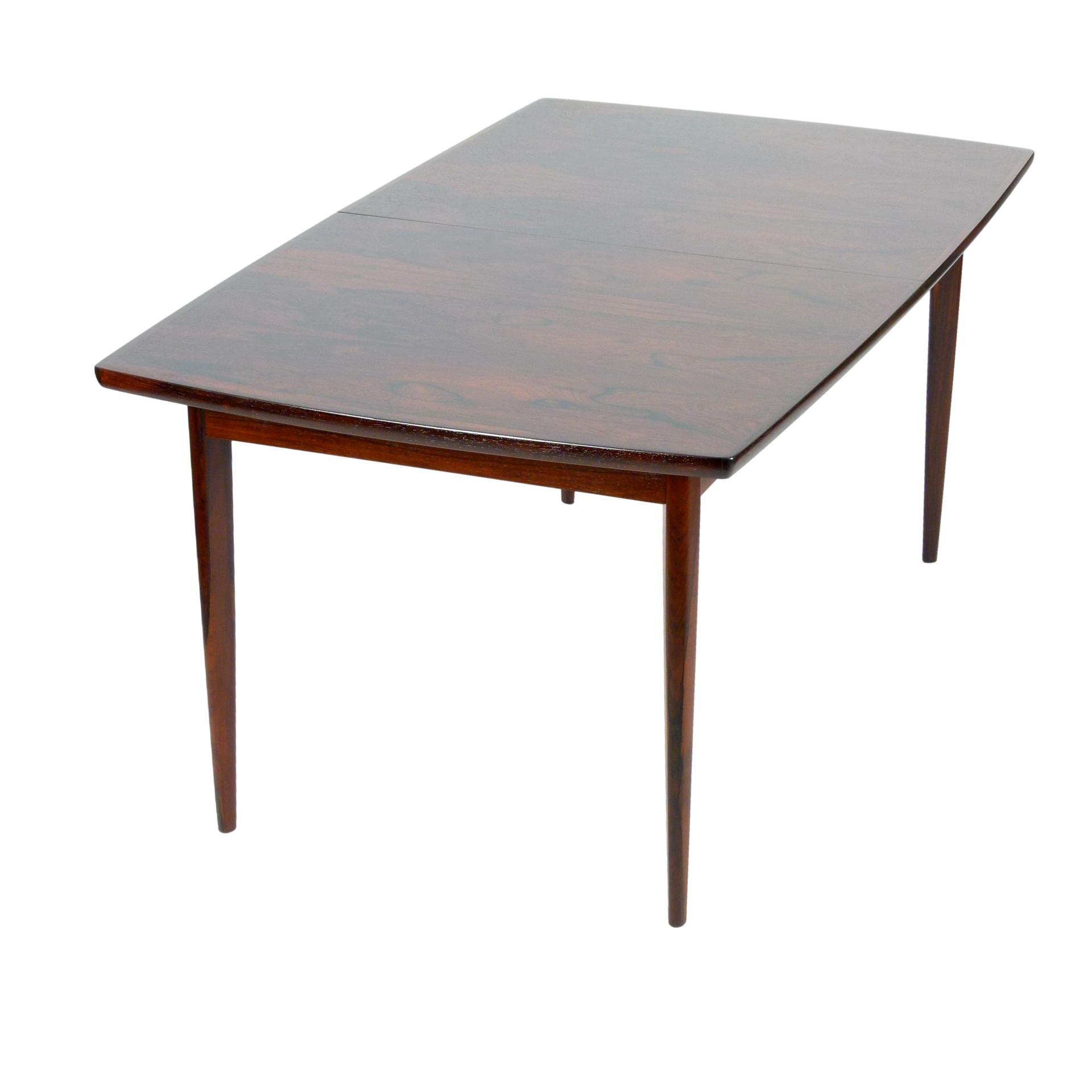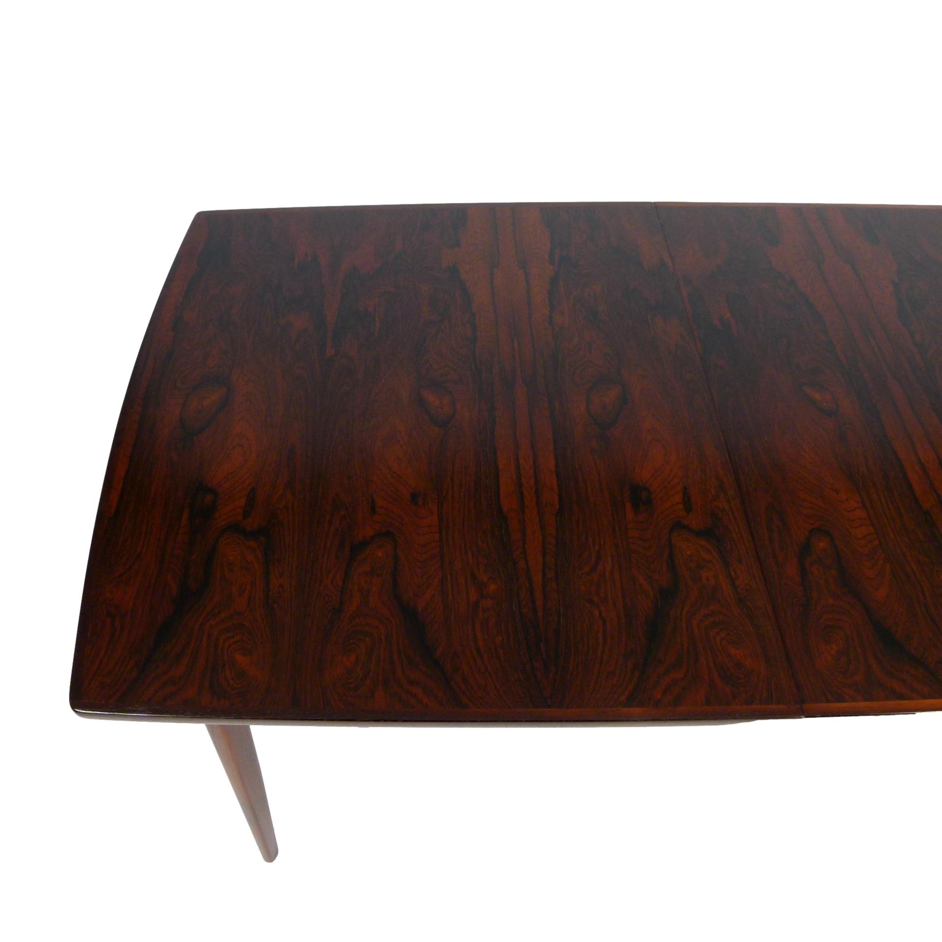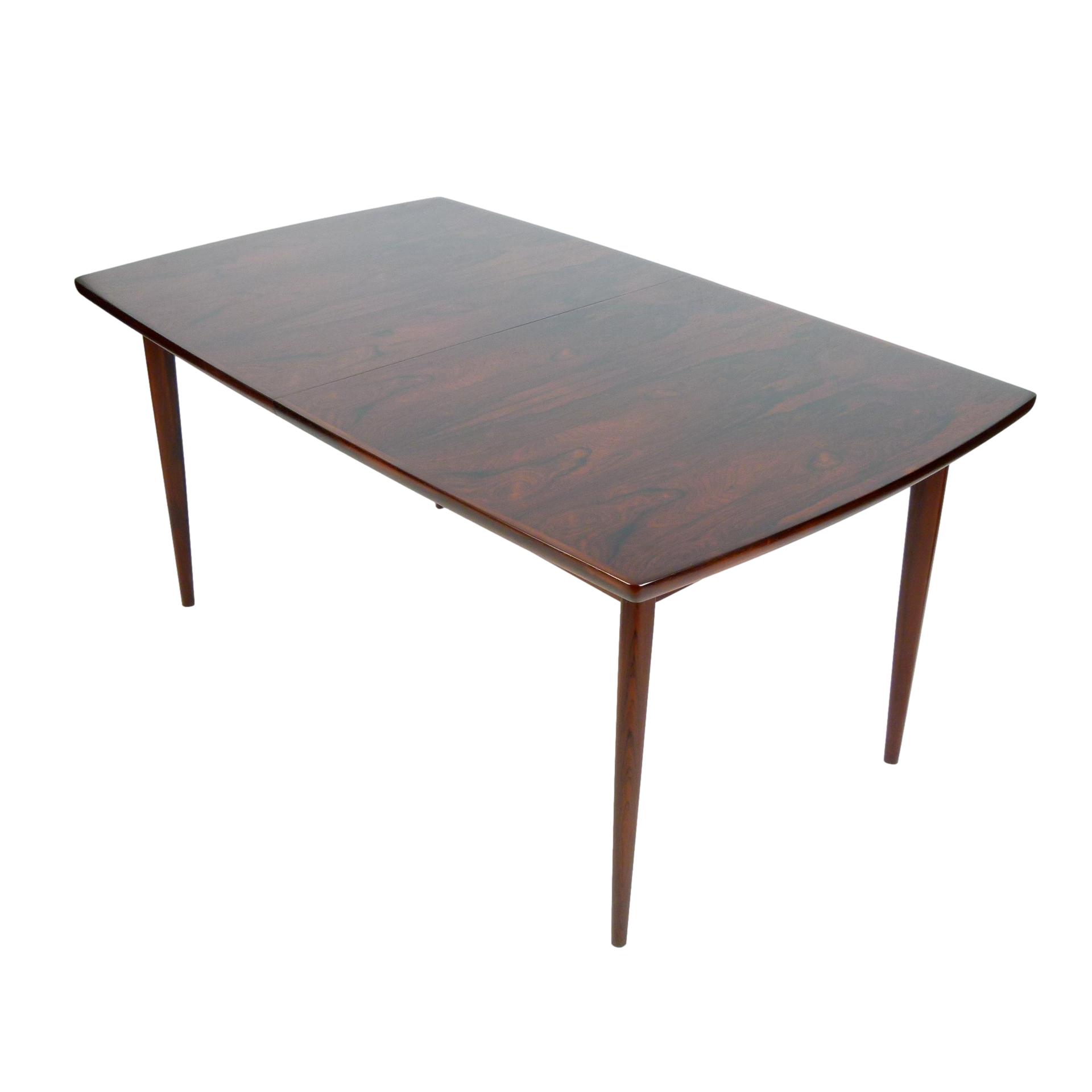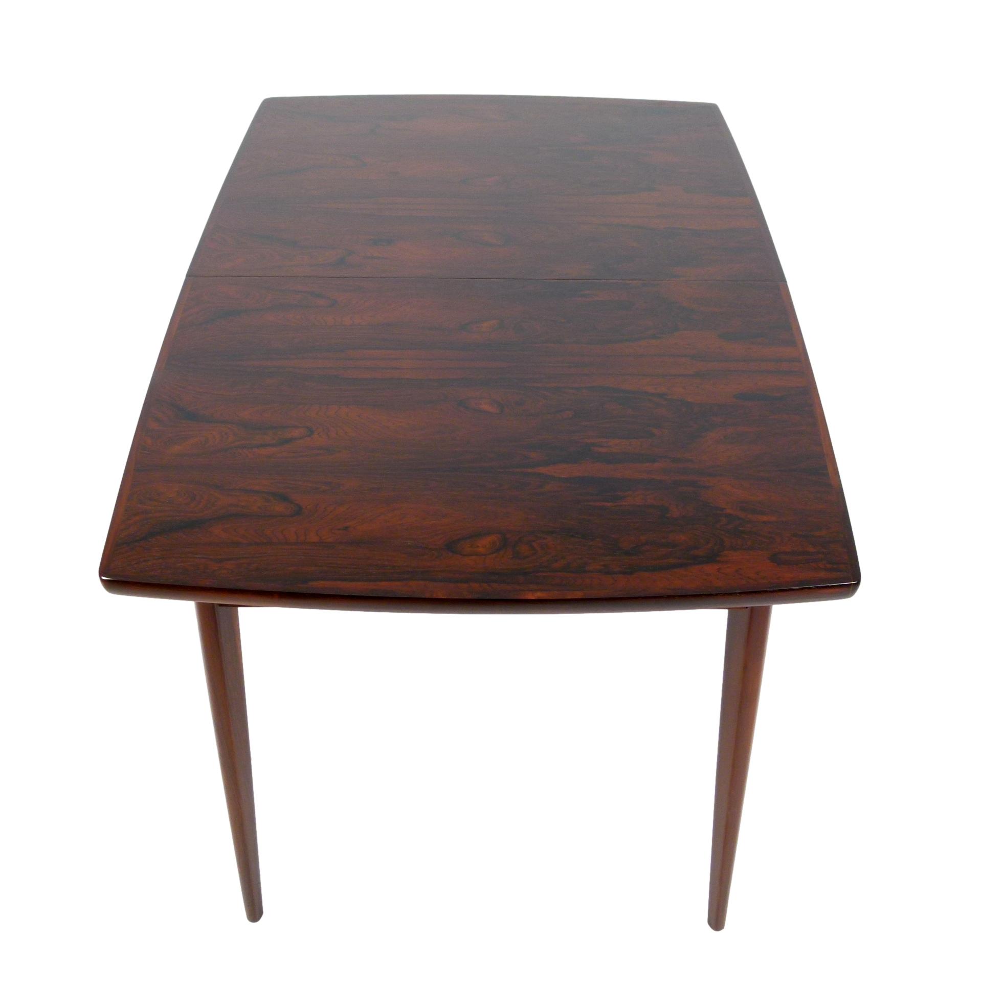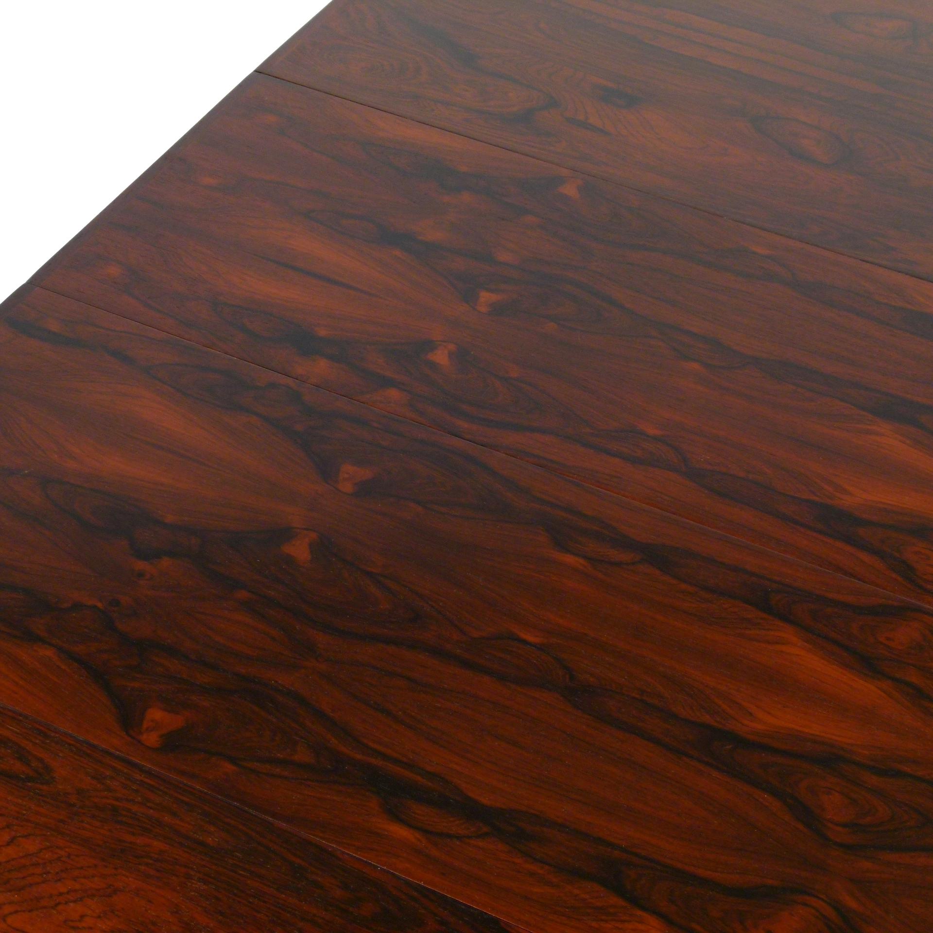 1960s Scandinavian rosewood dining table with two 13.75" leaves.