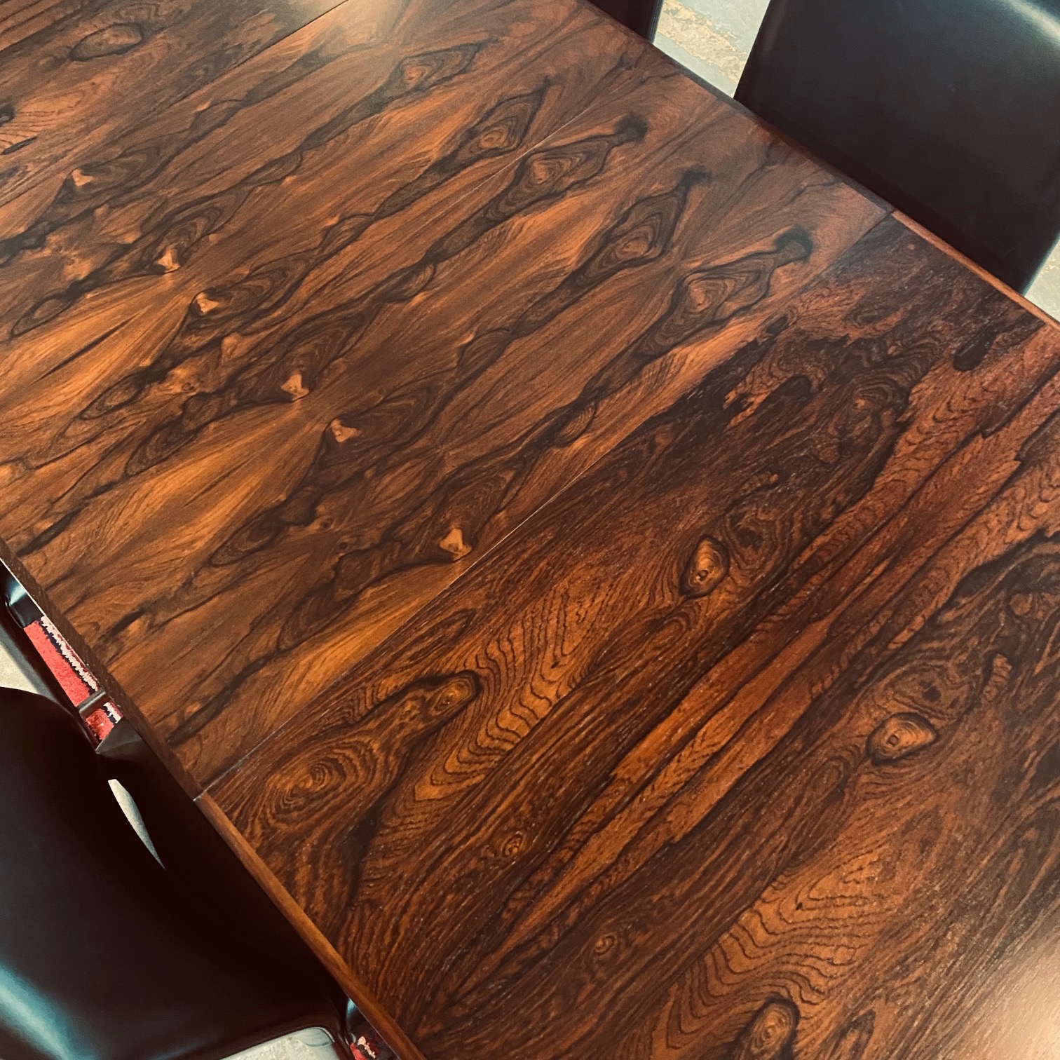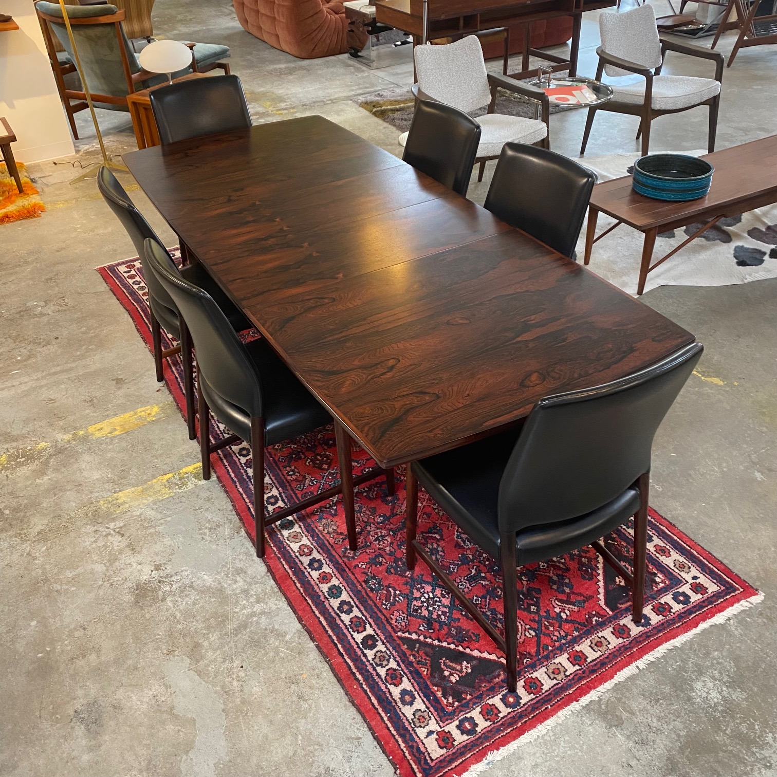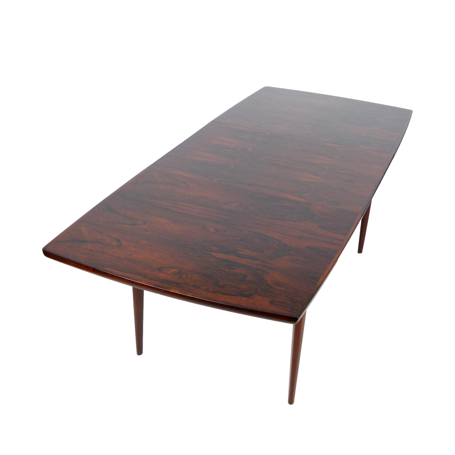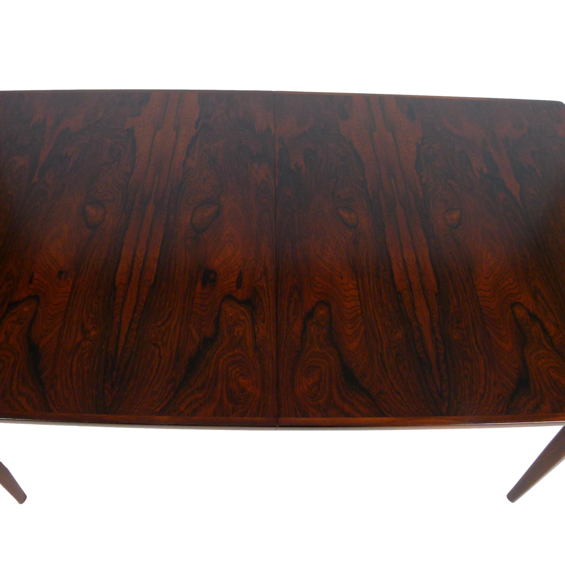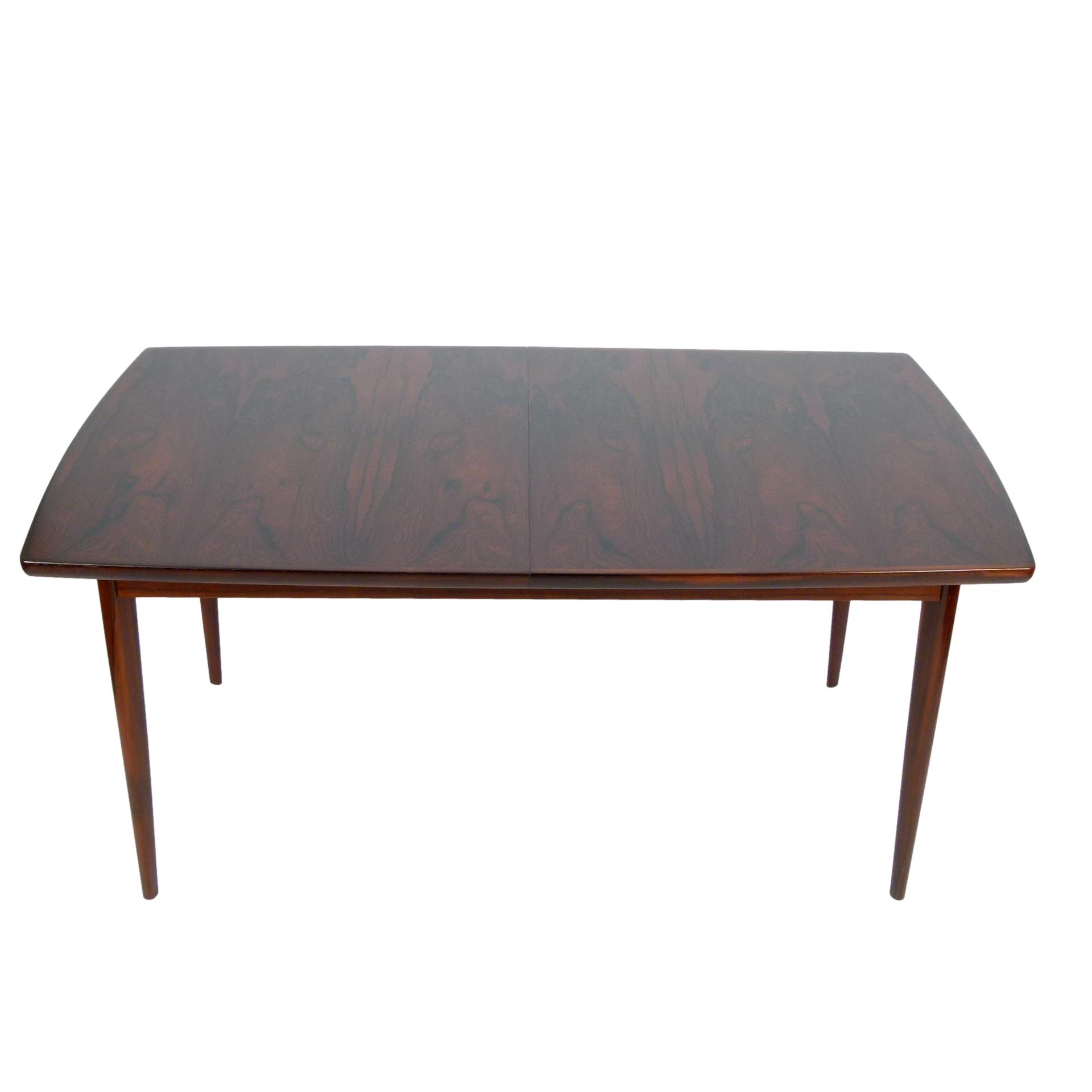 1960s Scandinavian rosewood dining table with two 13.75" leaves.