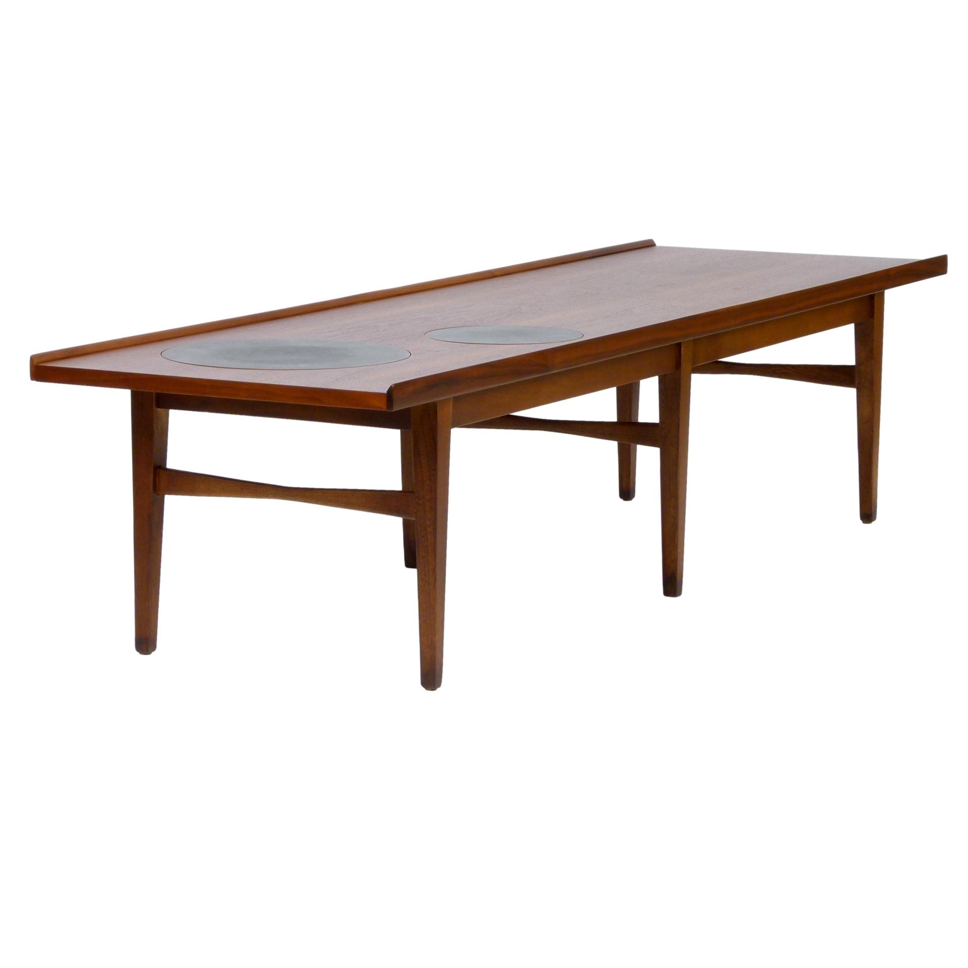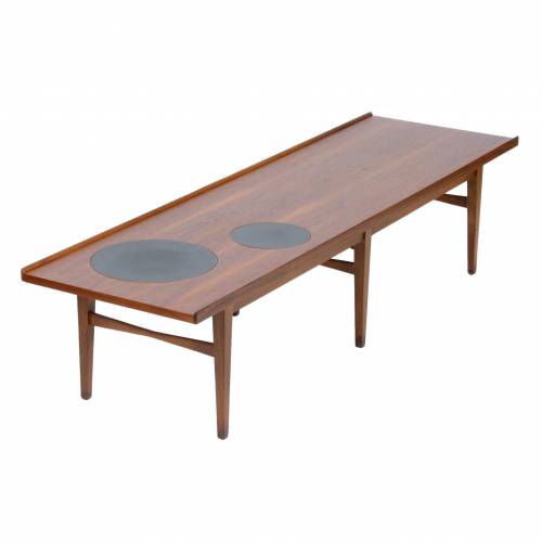 1960s Walnut Coffee Table with Inset Melamine Circles