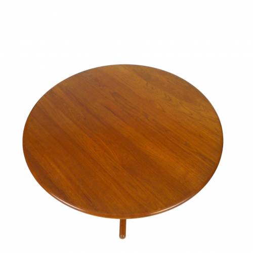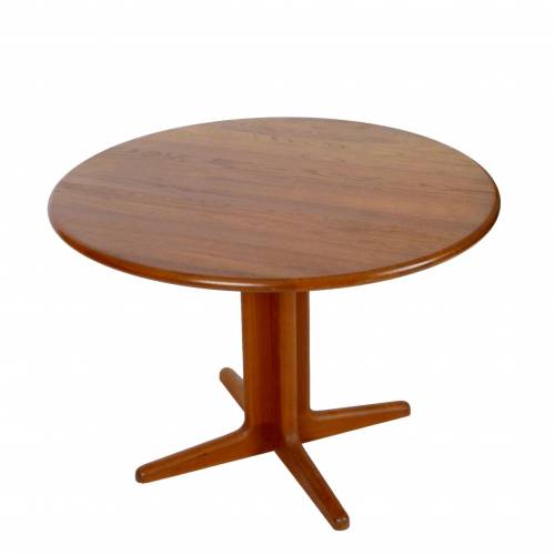 1970s 4-seat dining table in solid teak with a pedestal base, Denmark. Perfect for a small dining or breakfast room.