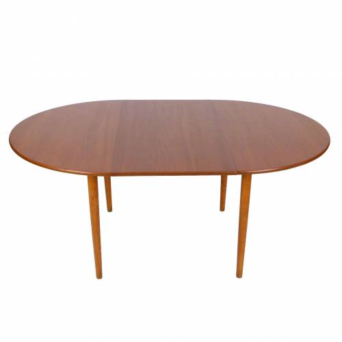 1960s teak and oak dining table by Børge Mogensen for Søborg Møbelfabrik with large single leaf from Denmark.