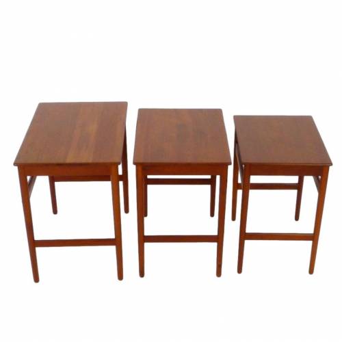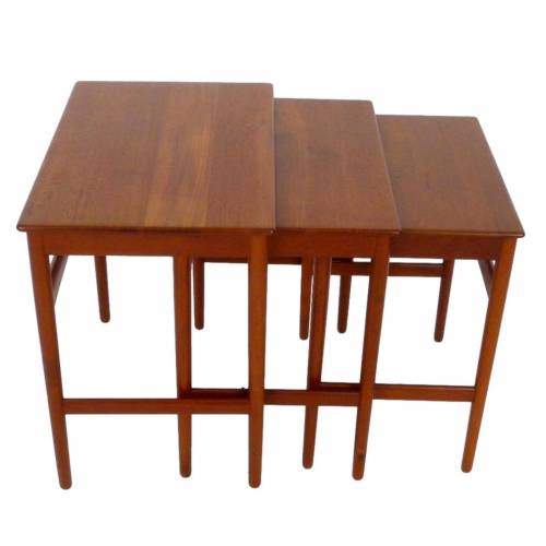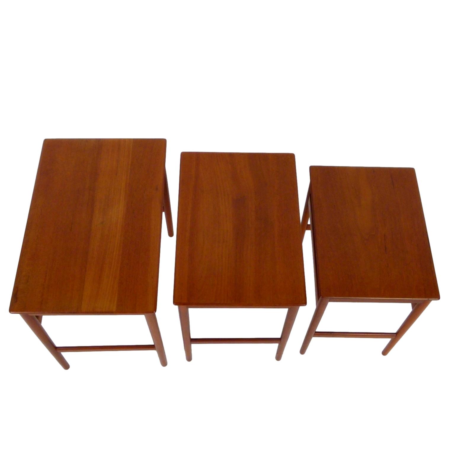 Hans Wegner Solid Teak Nesting Tables Set From Denmark