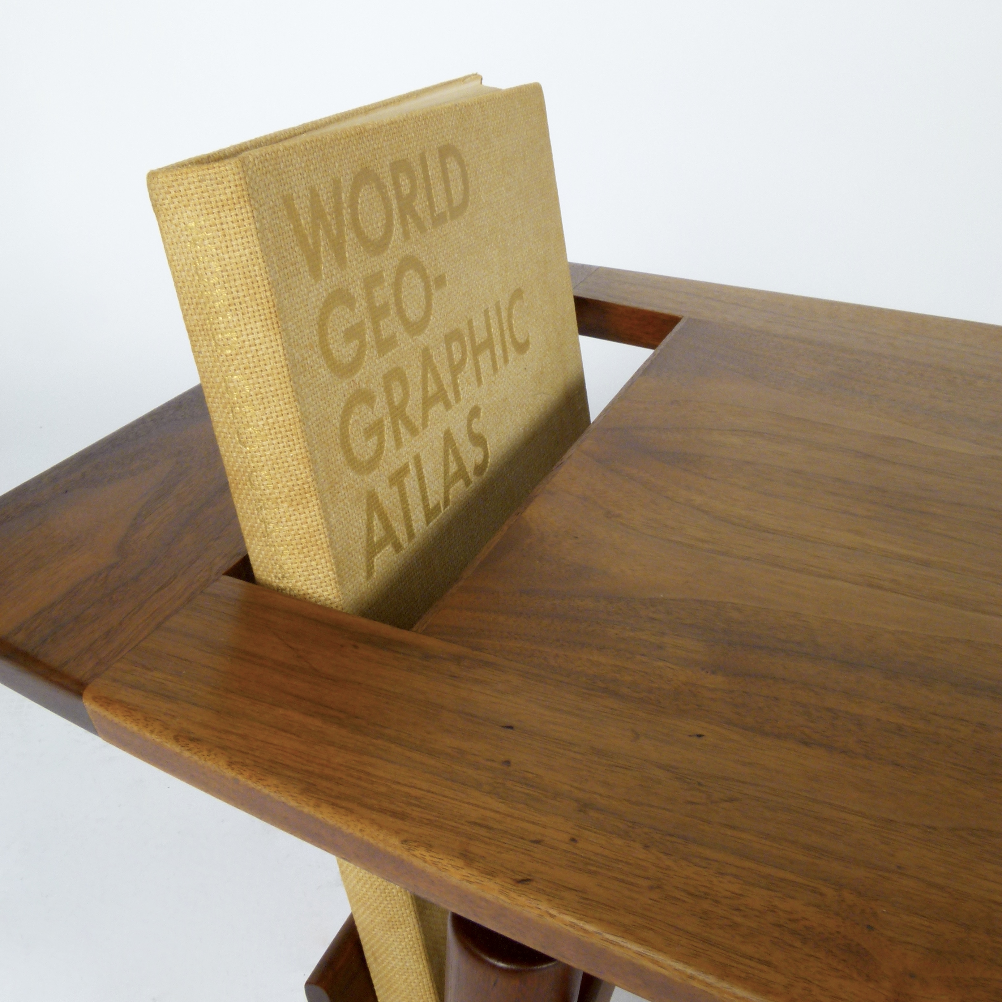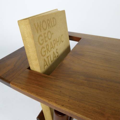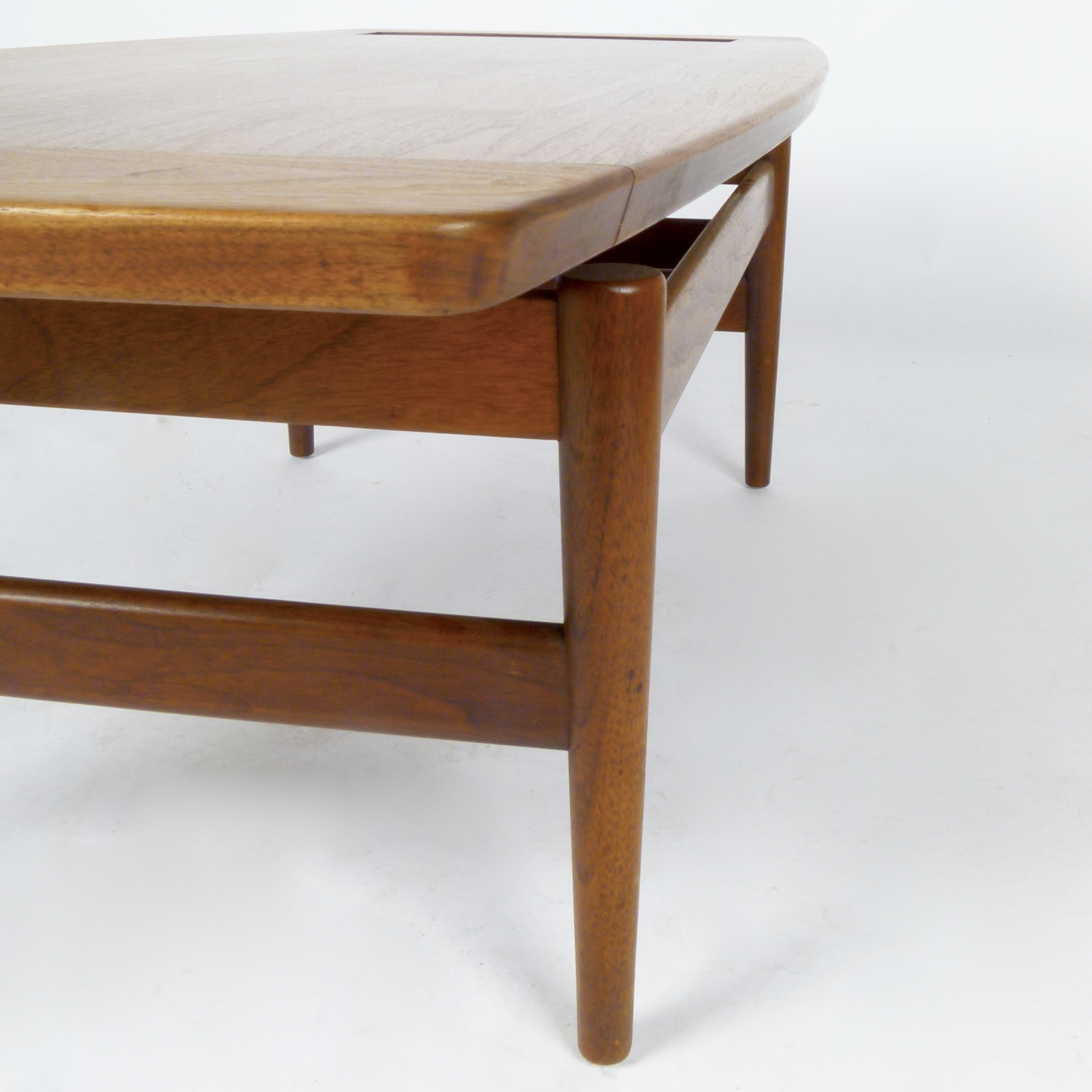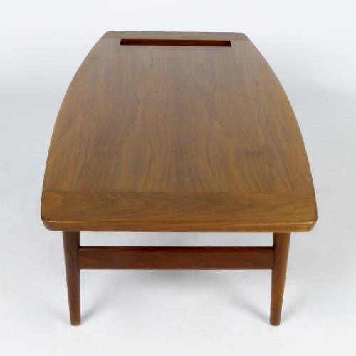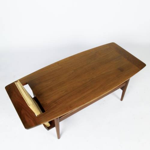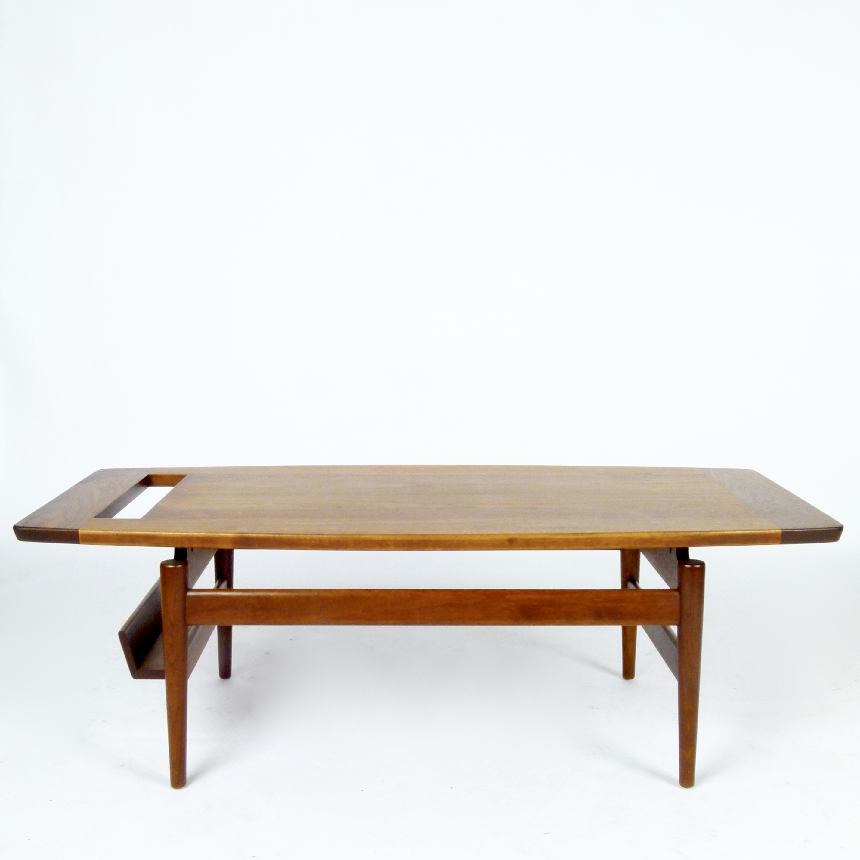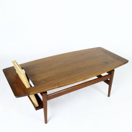 Very rare oiled walnut coffee table with book/magazine rack designed by Jens Risom, early 1960s.