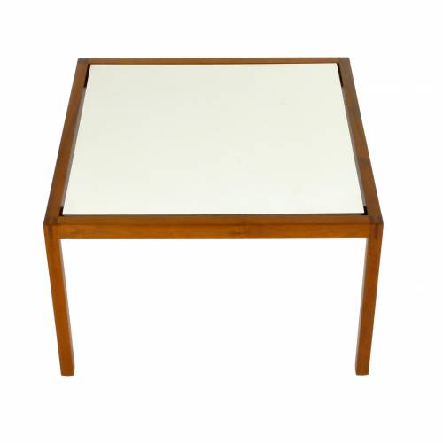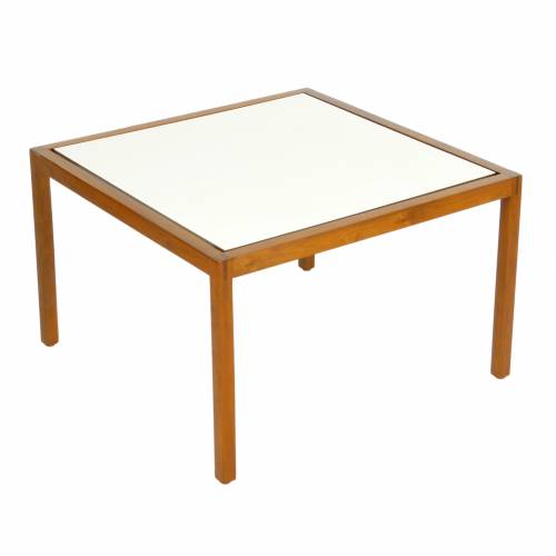 Walnut and laminate side table by Lewis Butler for Knoll, 1950s. Retains early Knoll Park Avenue "bow tie" label.