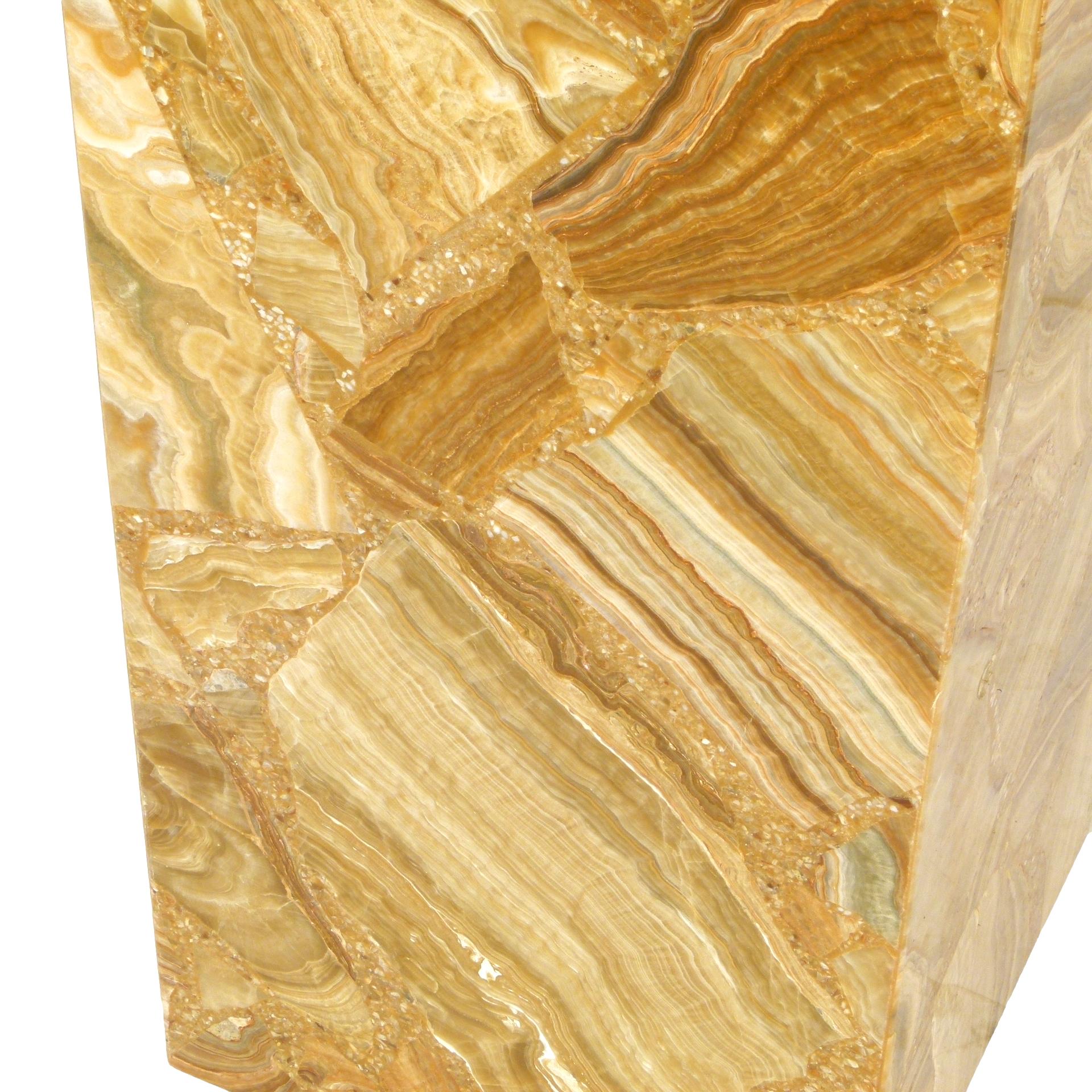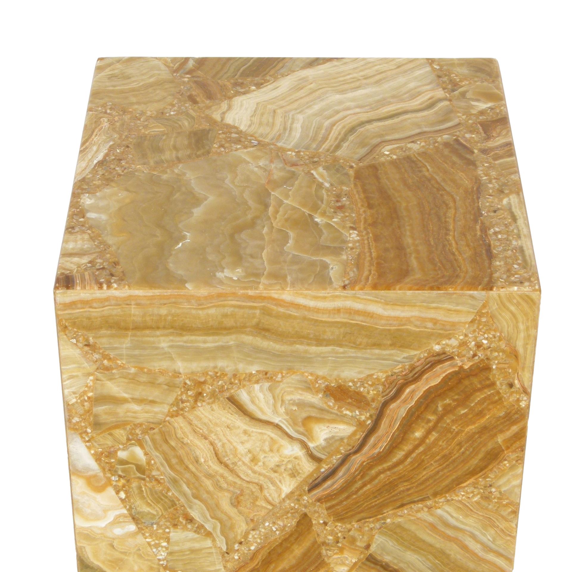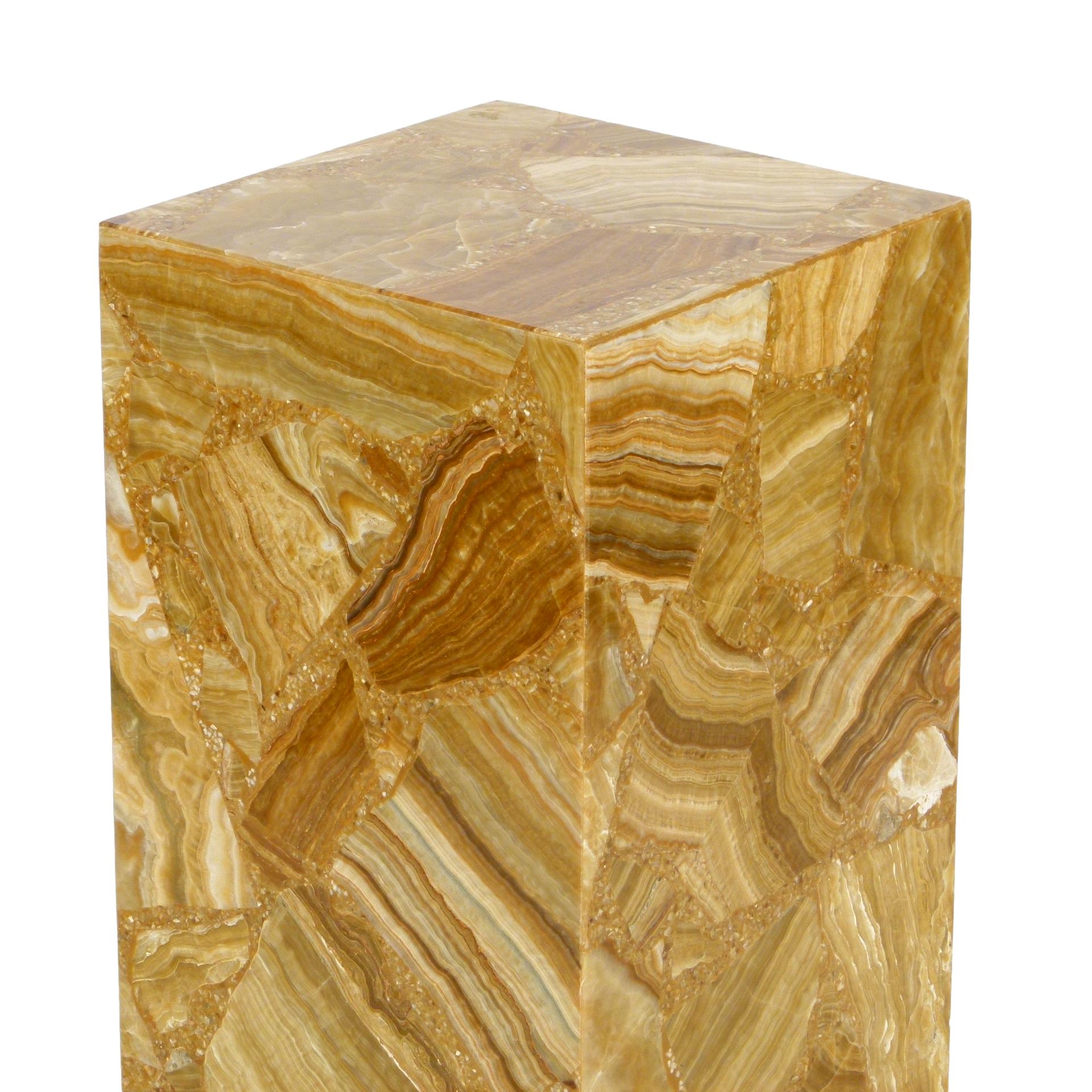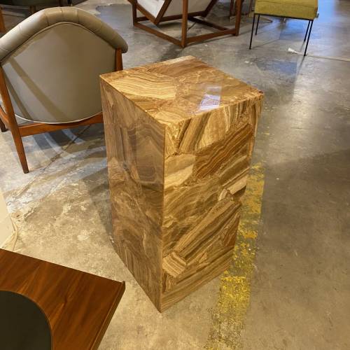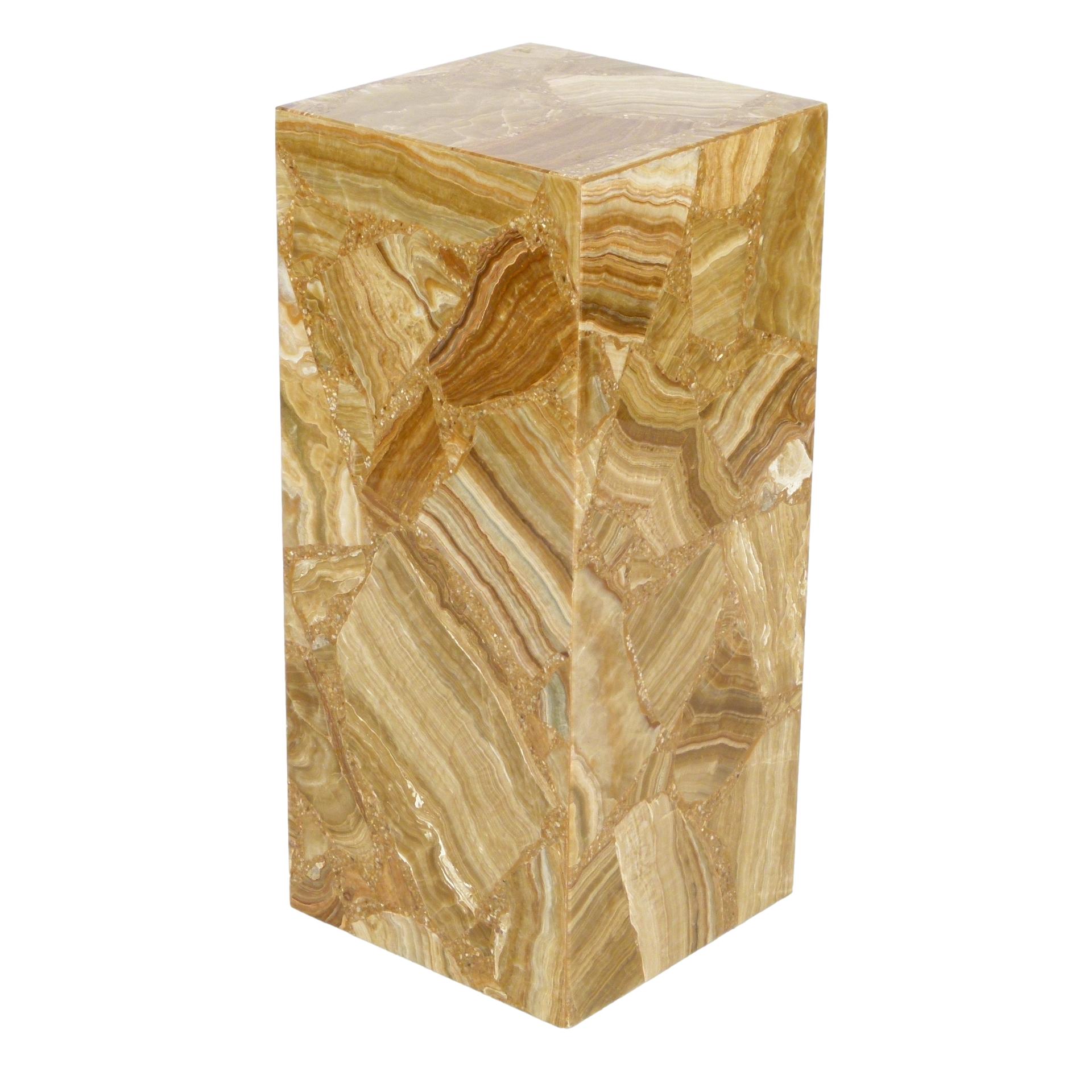 Onyx pedestal with beautiful natural stone in neutral earth tones.