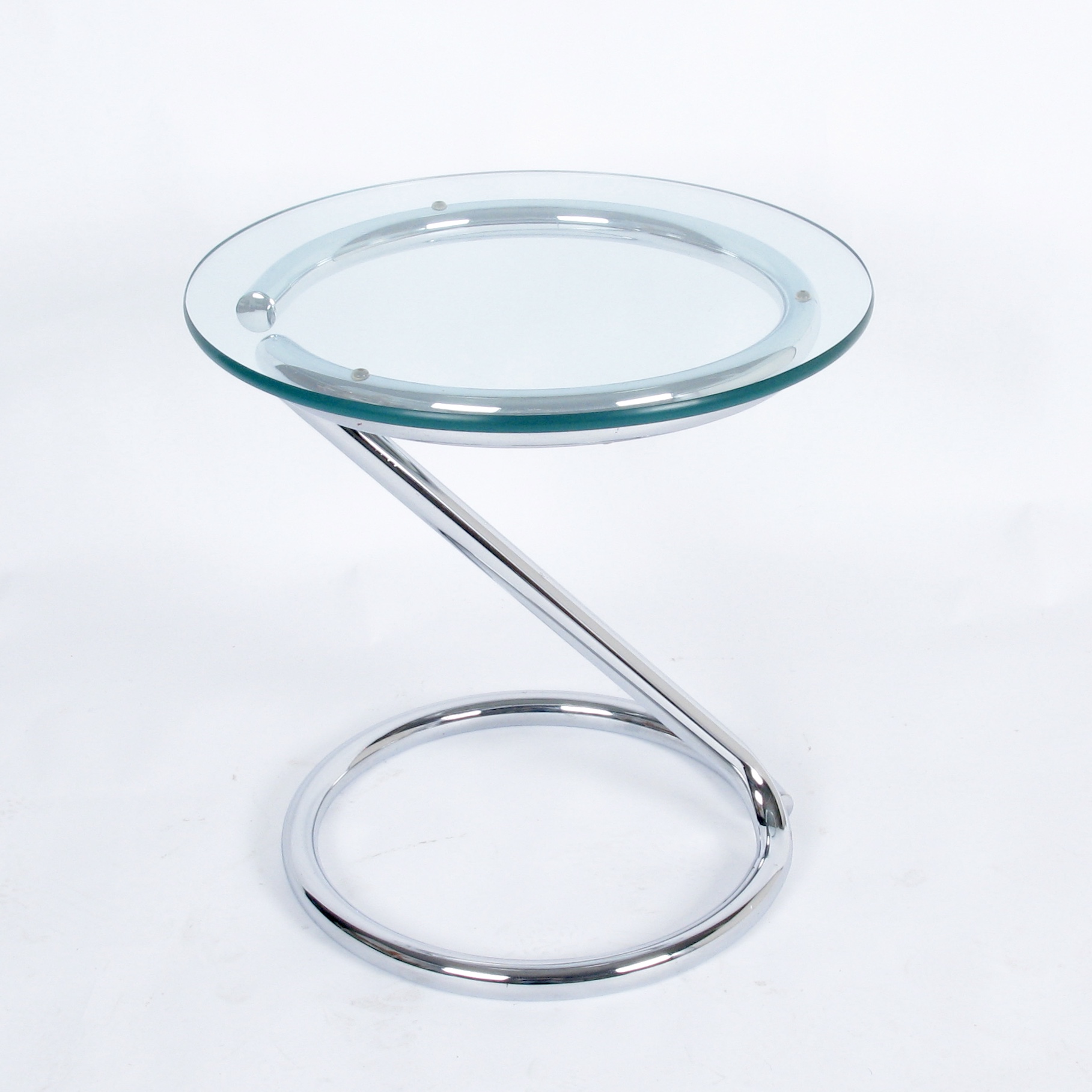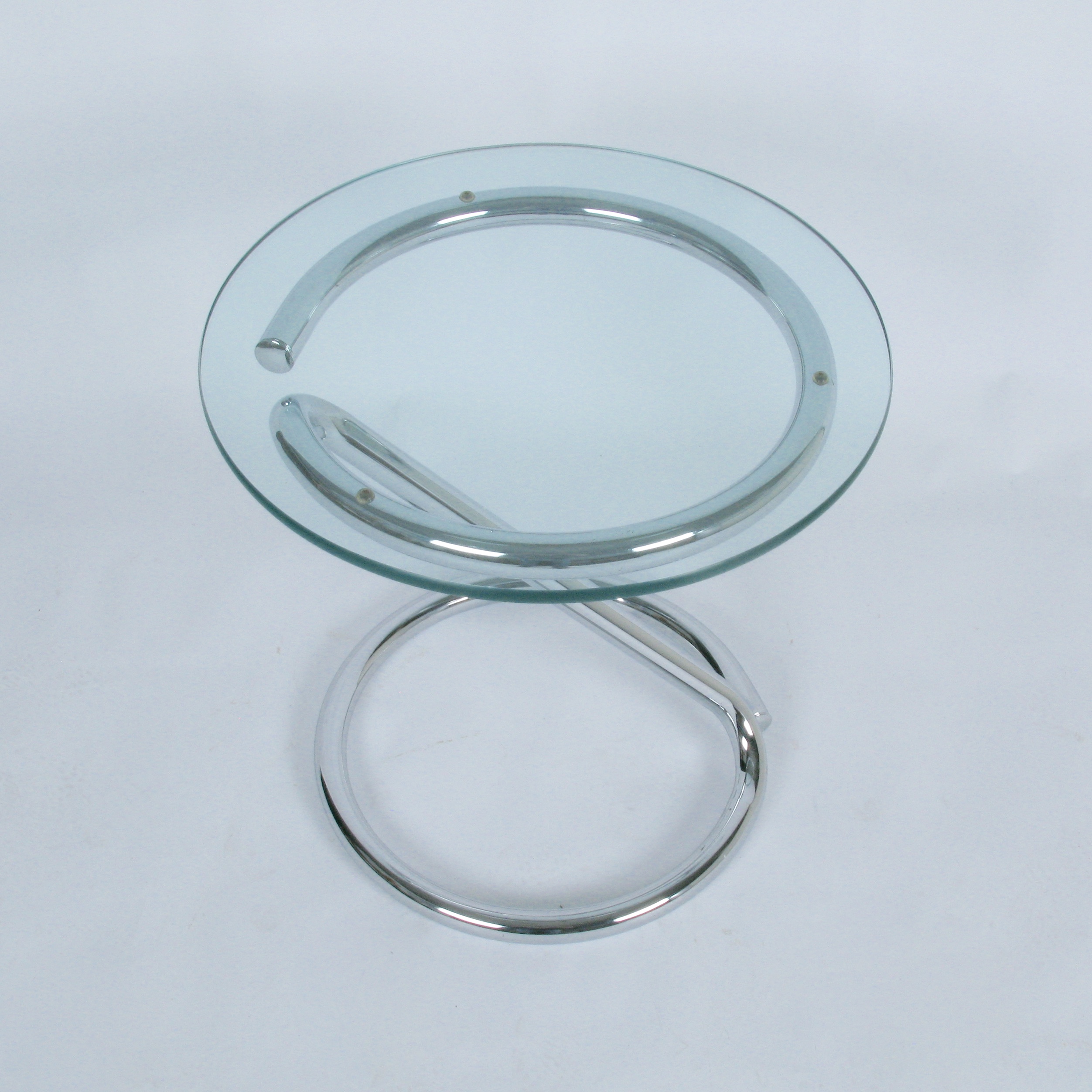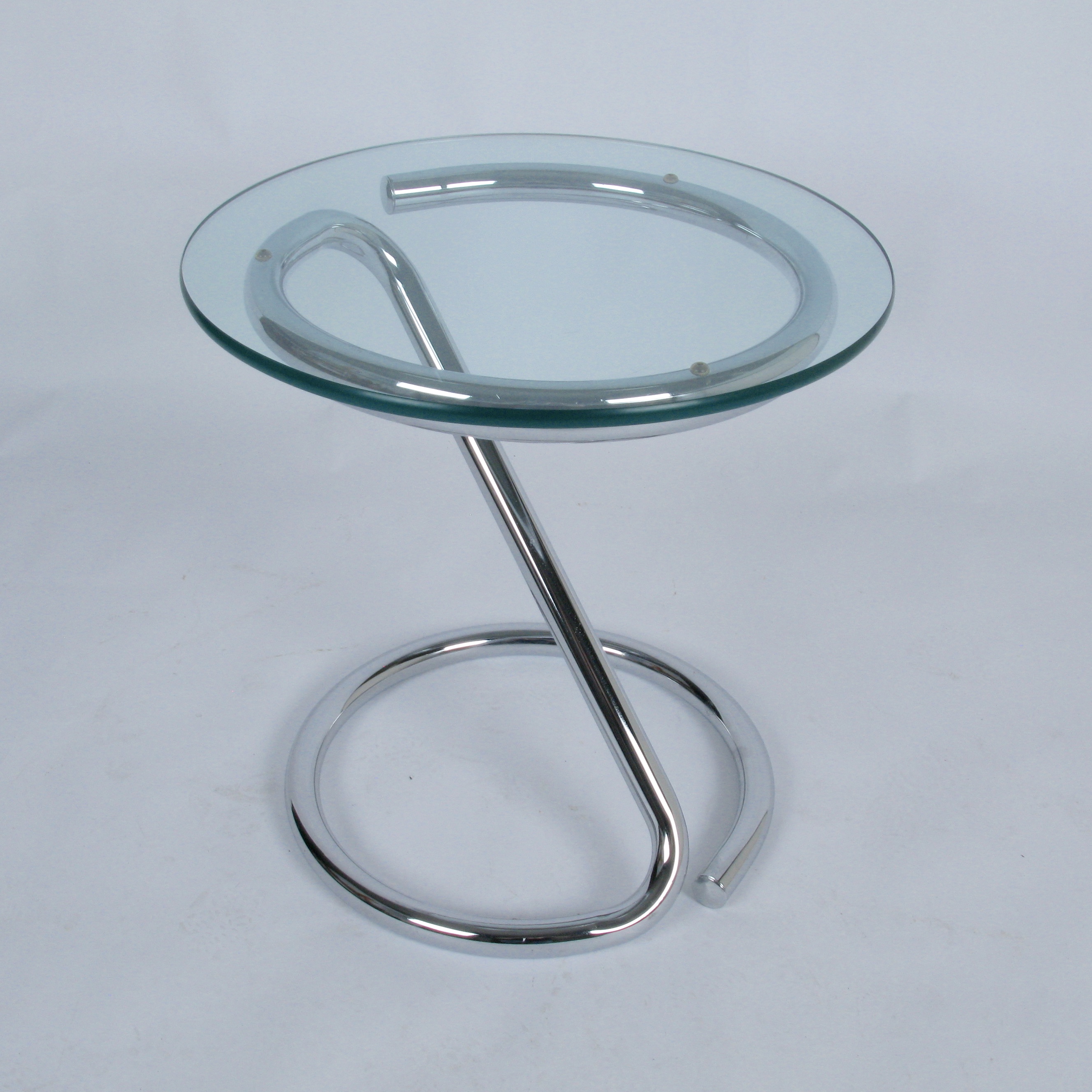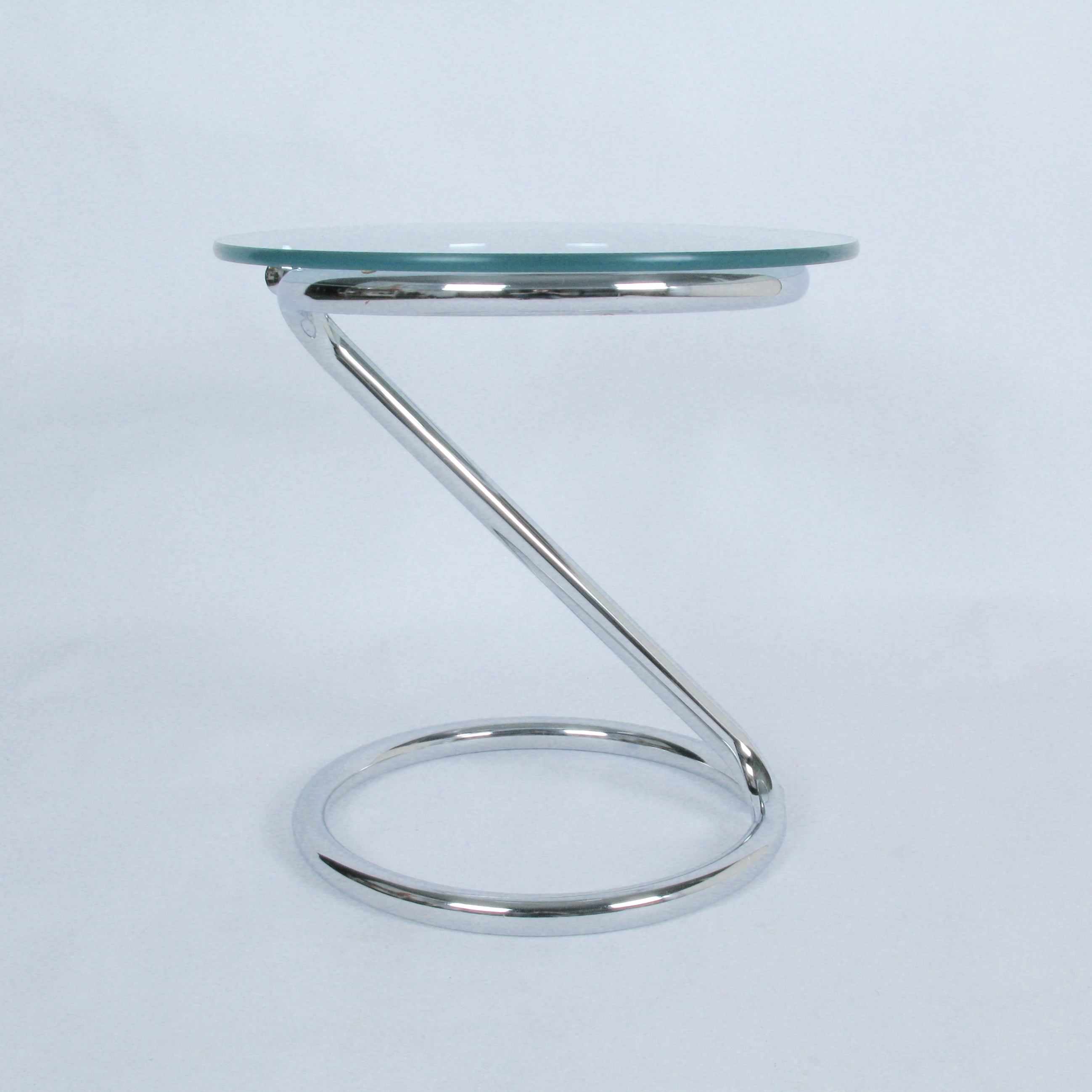 c.1970 cantilevered chrome drink/ occasional table with 1/2" thick glass top.