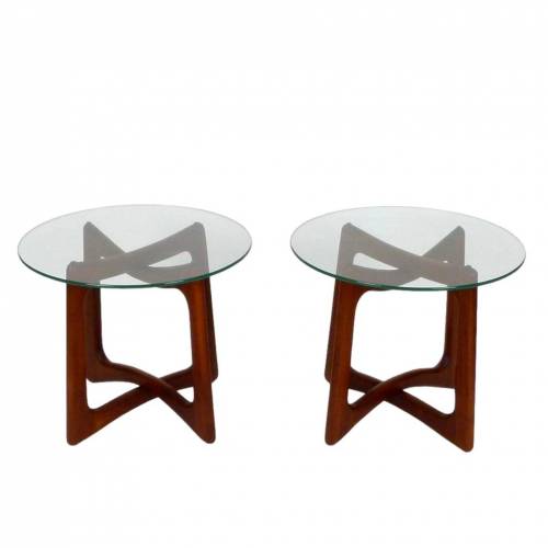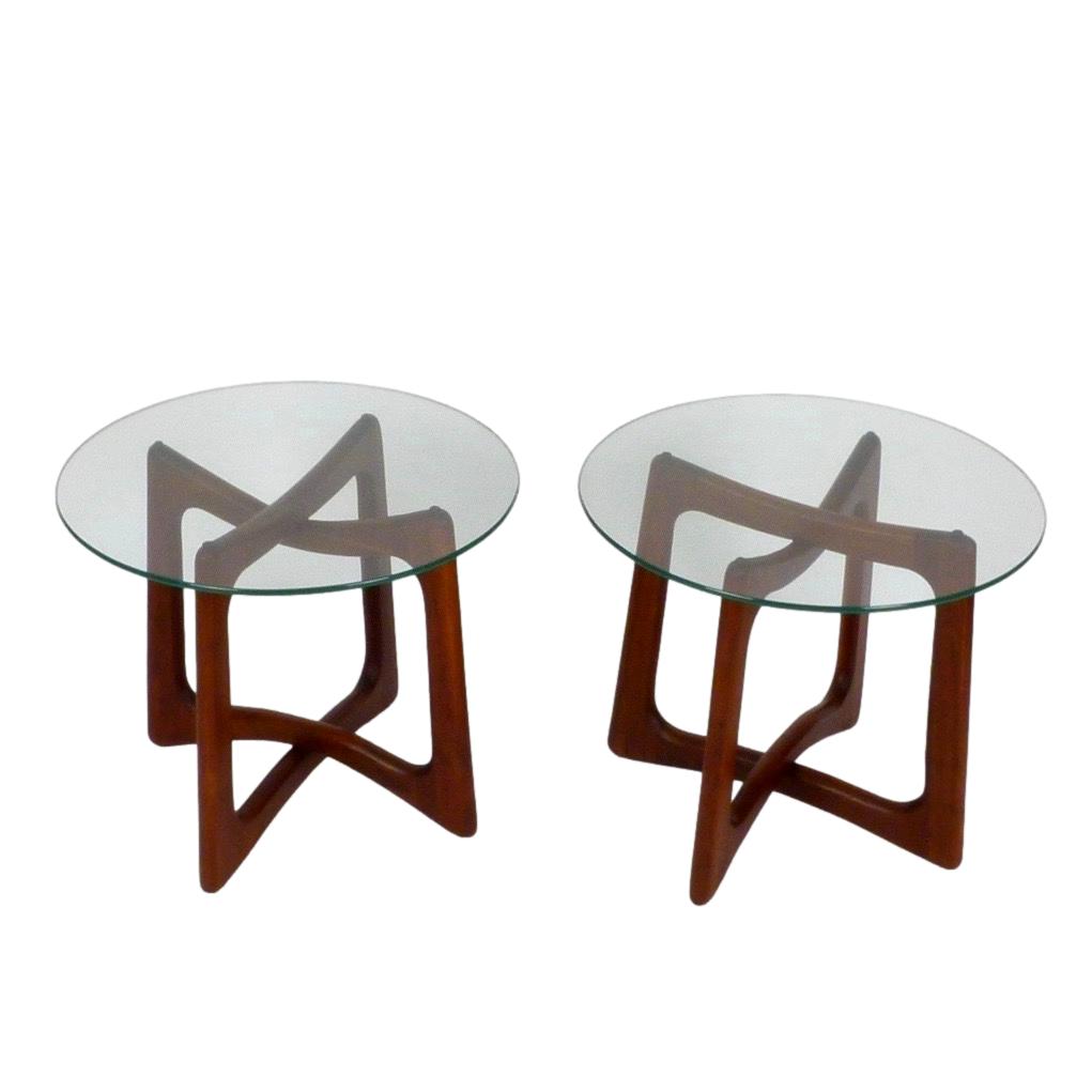 Pair of sculptural 1960s oiled walnut side tables with glass tops by Adrian Pearsall.