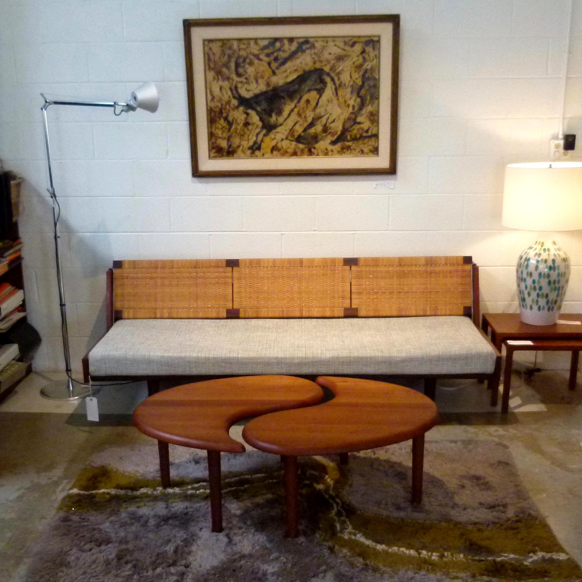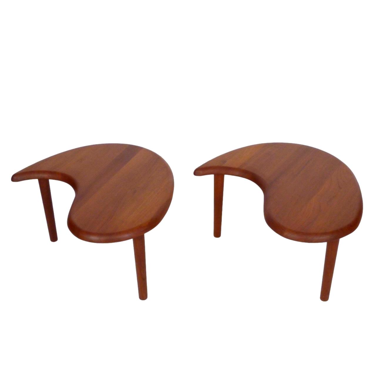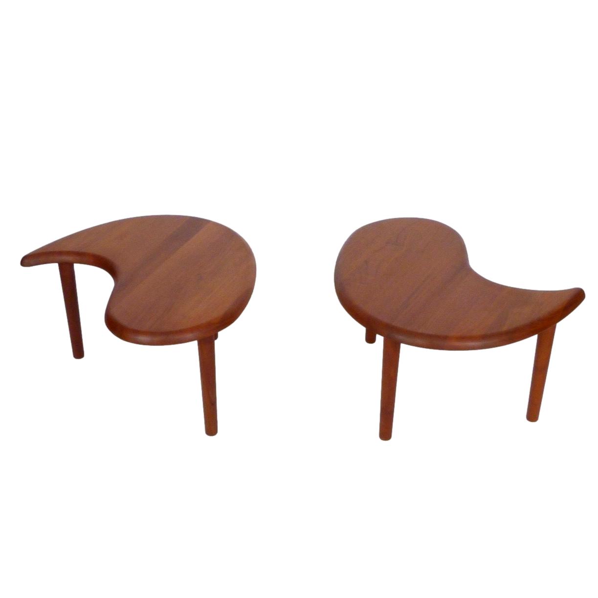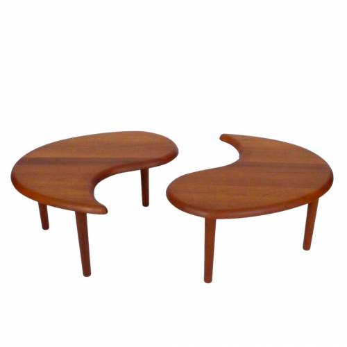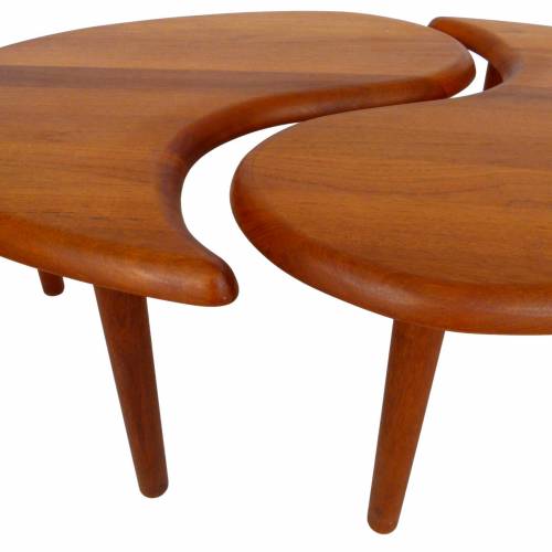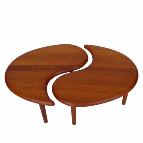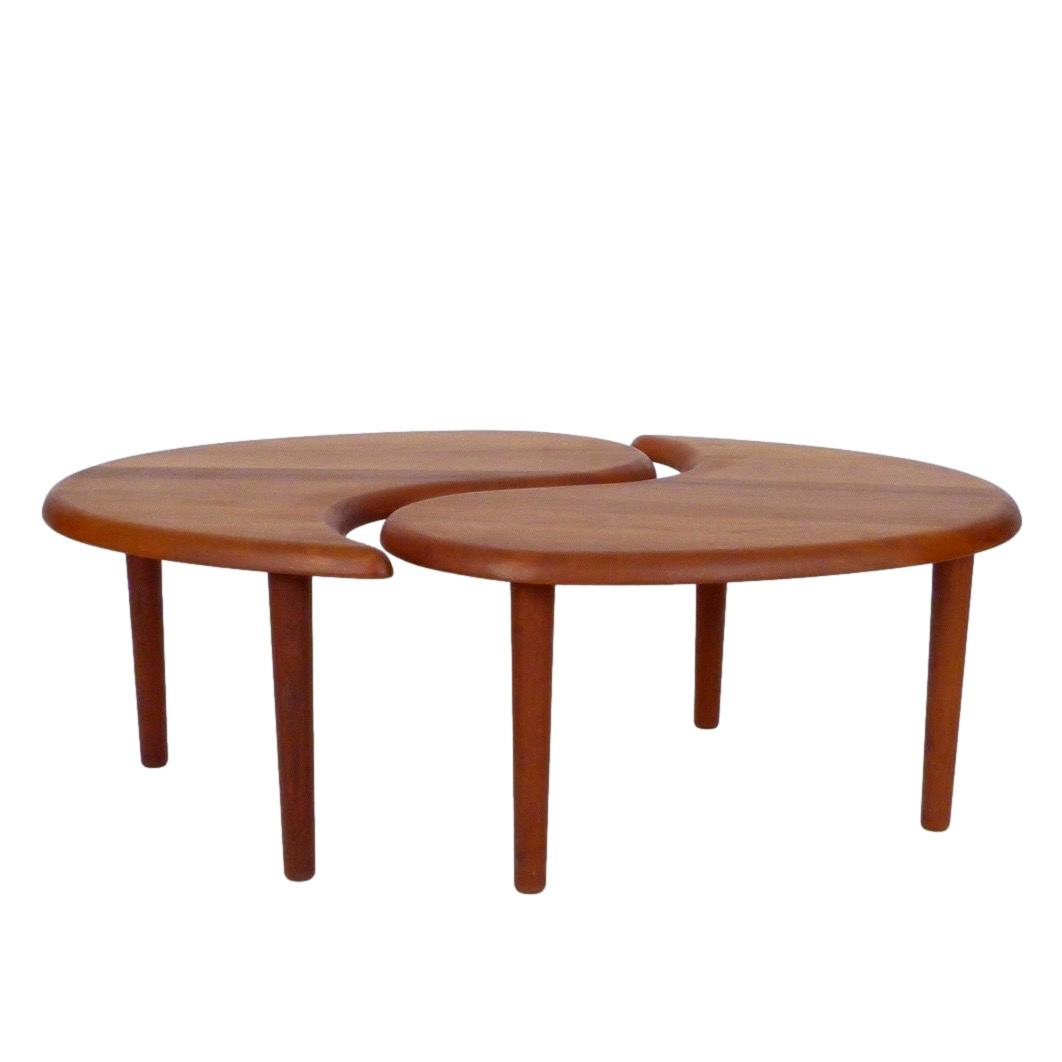 Vintage solid teak Scandinavian 2 piece oval coffee table or pair of occasional tables.